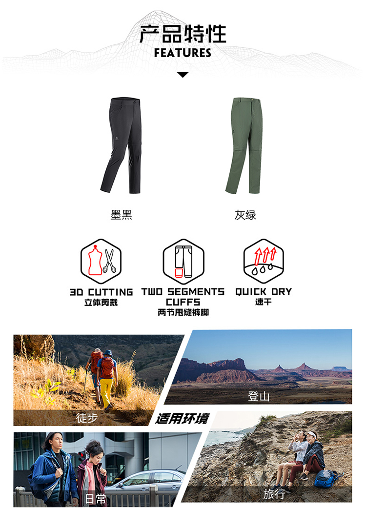 【清倉】凱樂石速乾褲戶外運動兩節褲旅行男女款速乾褲可拆成五分褲