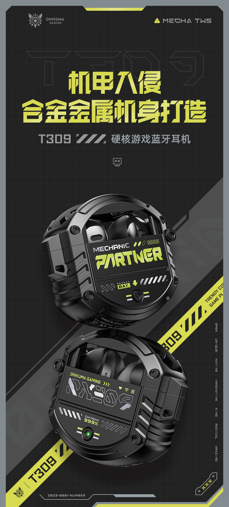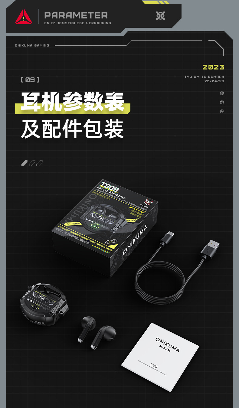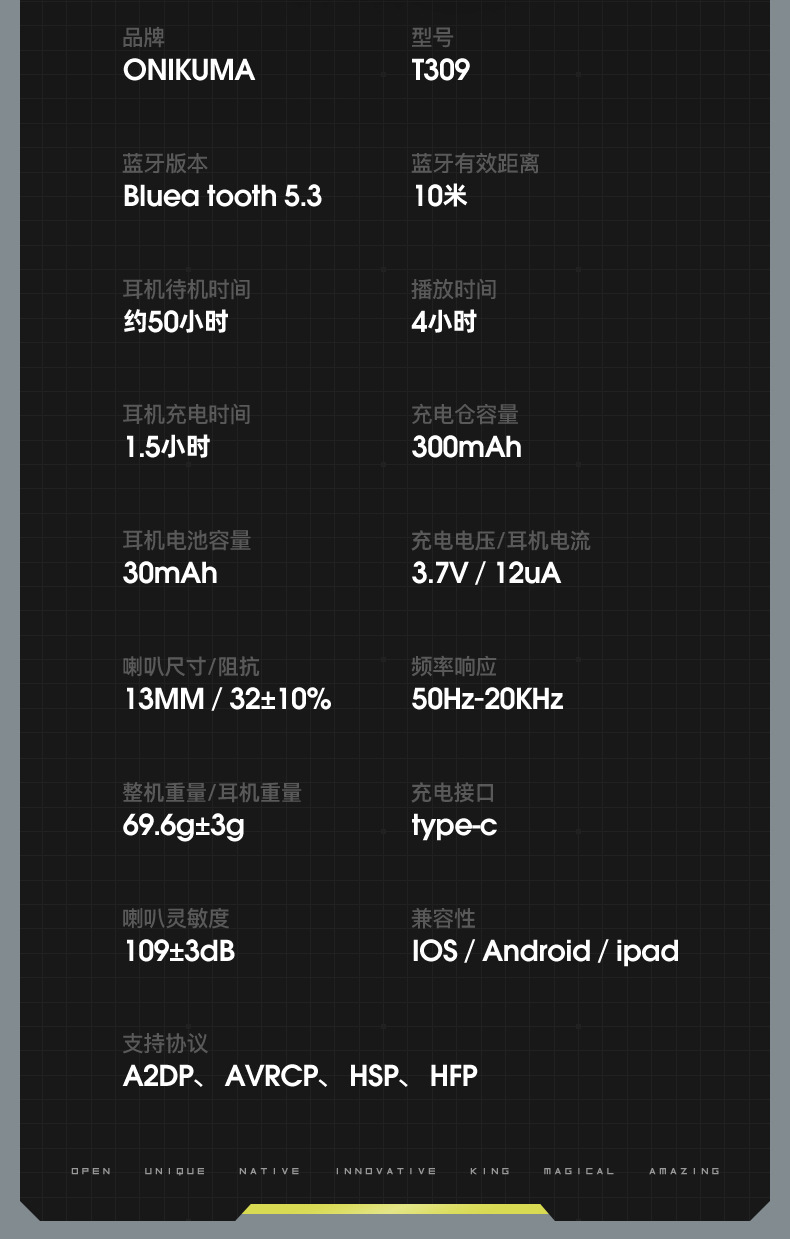 跨境新款ONIKUMA T309铝合金无线蓝牙电竞吃鸡降噪低延迟游戏耳机