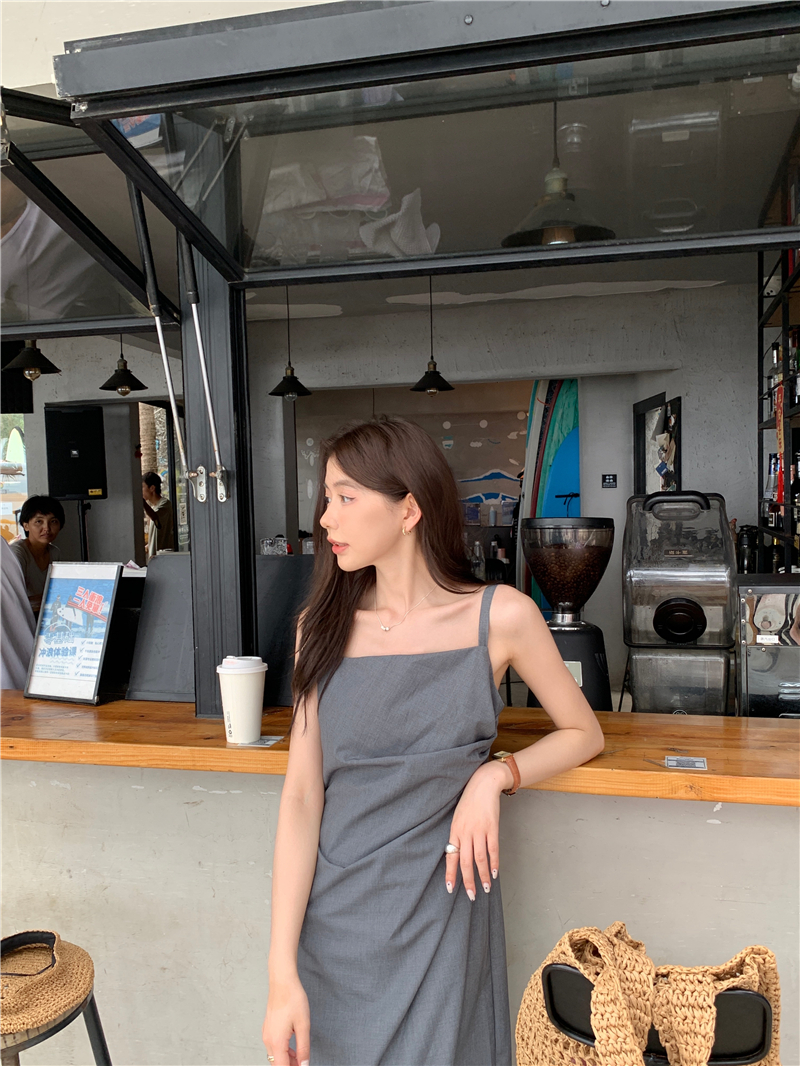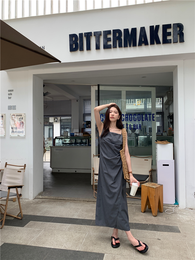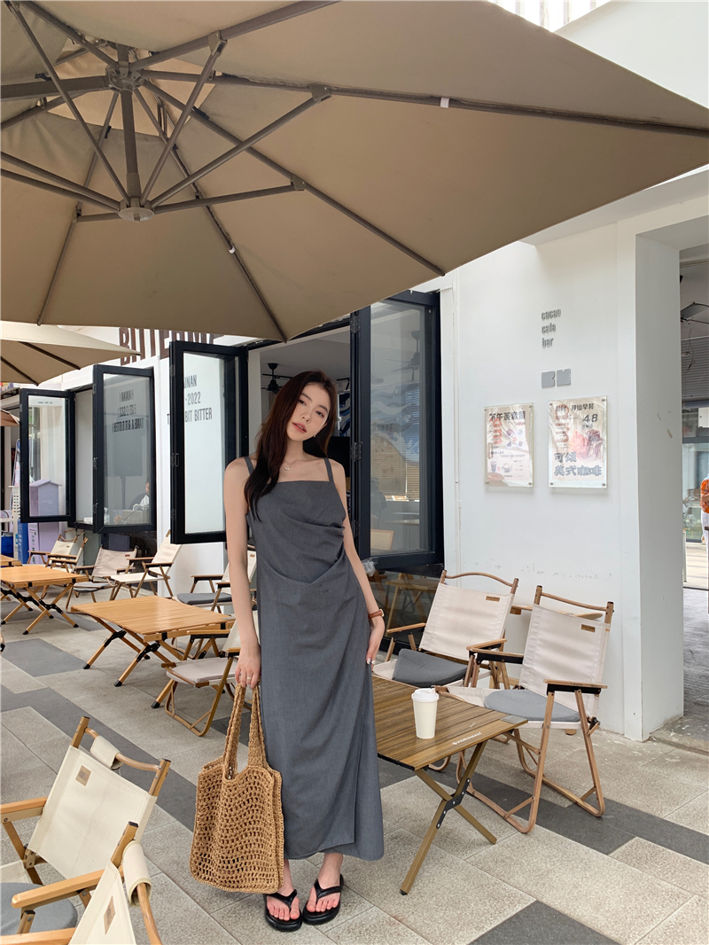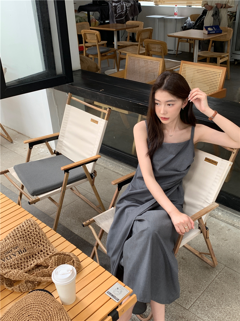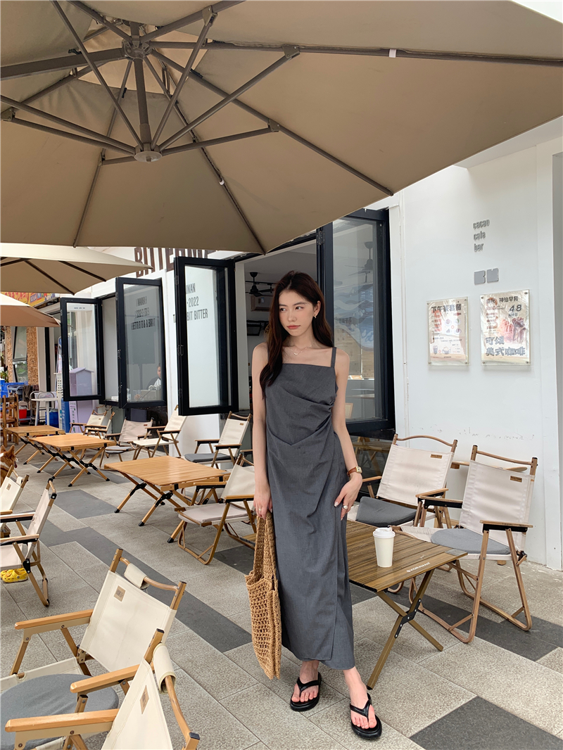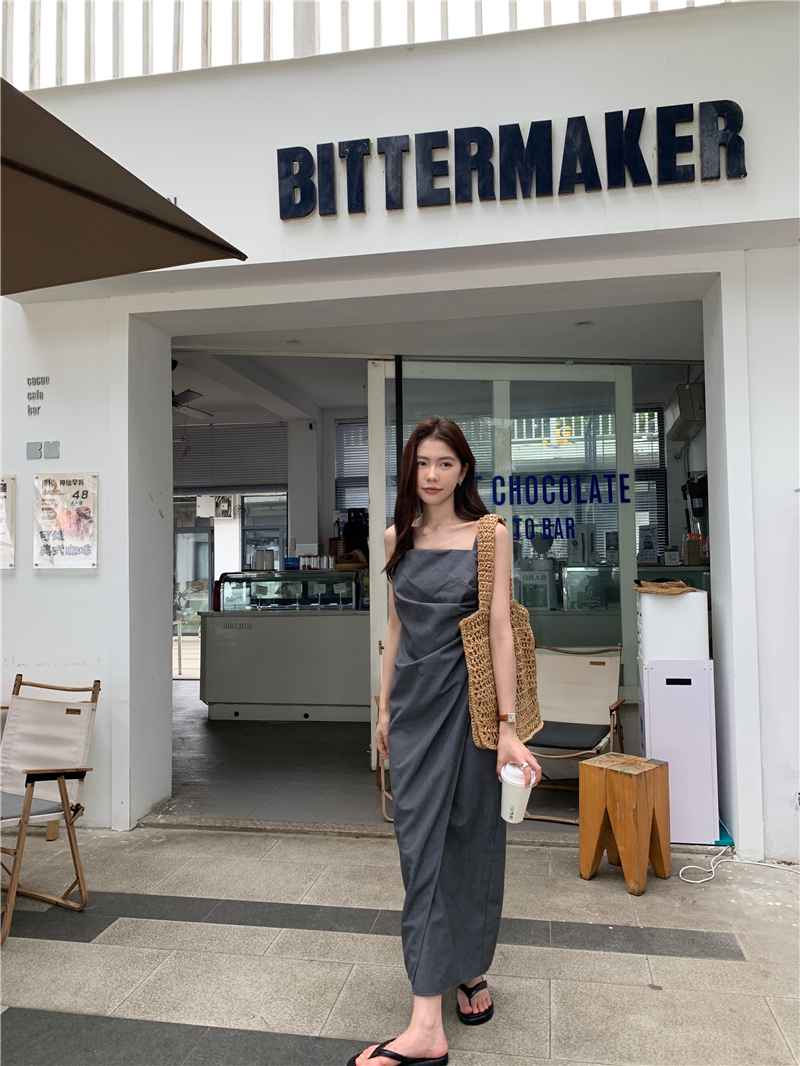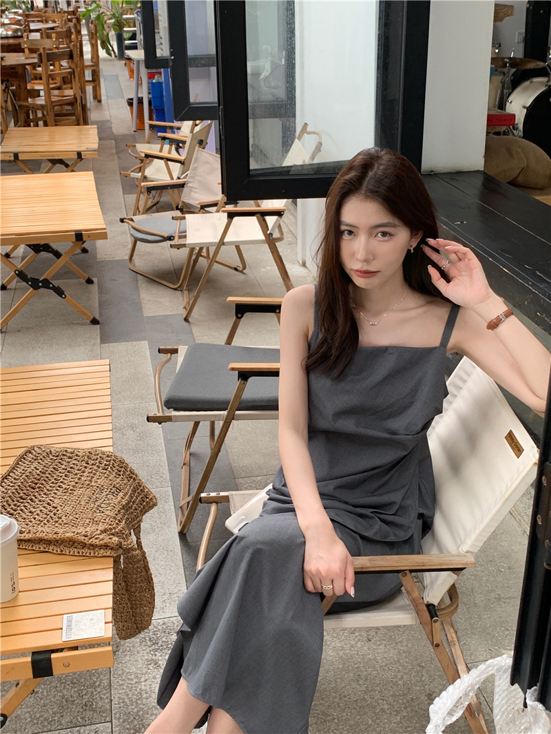 PPHOME甜心名媛~韓系氣質設計感褶皺不規則西裝吊帶裙