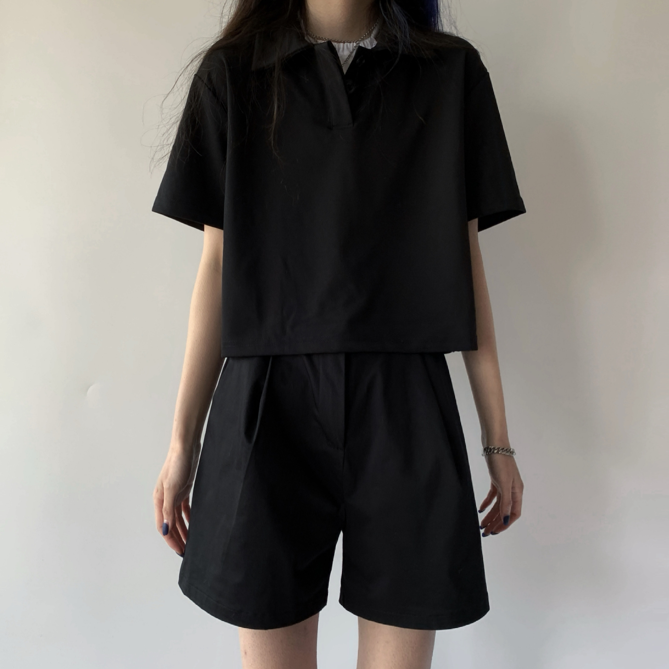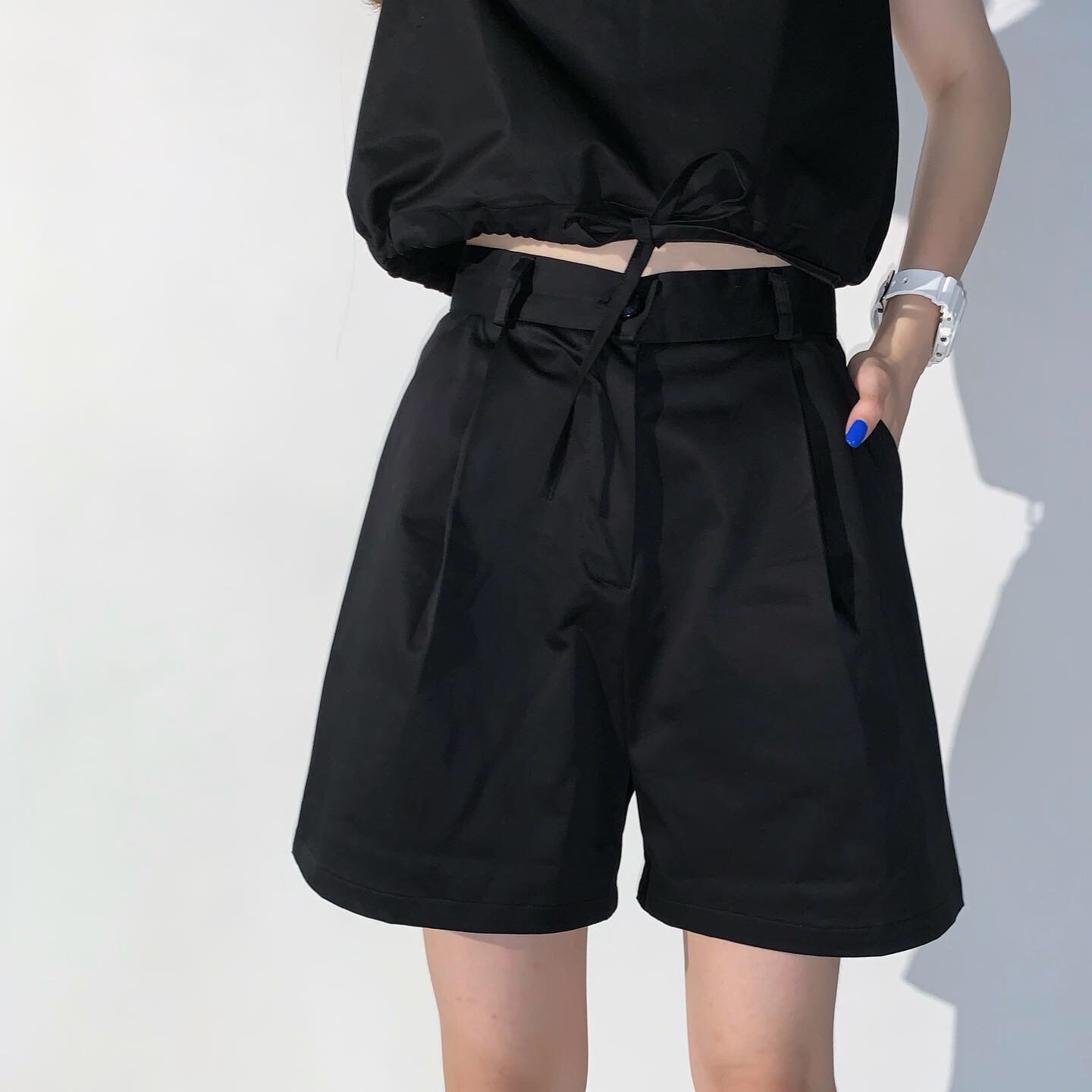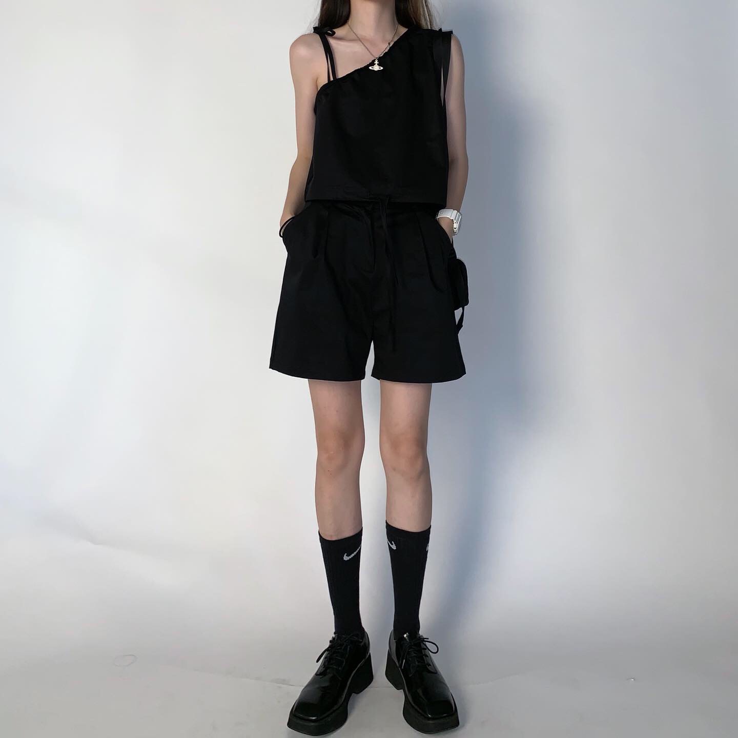三分裤遮大腿肉很显瘦 百搭的西装短裤 和吊带一起穿真的帅嗷!裤子日常利用率很高 比较实用