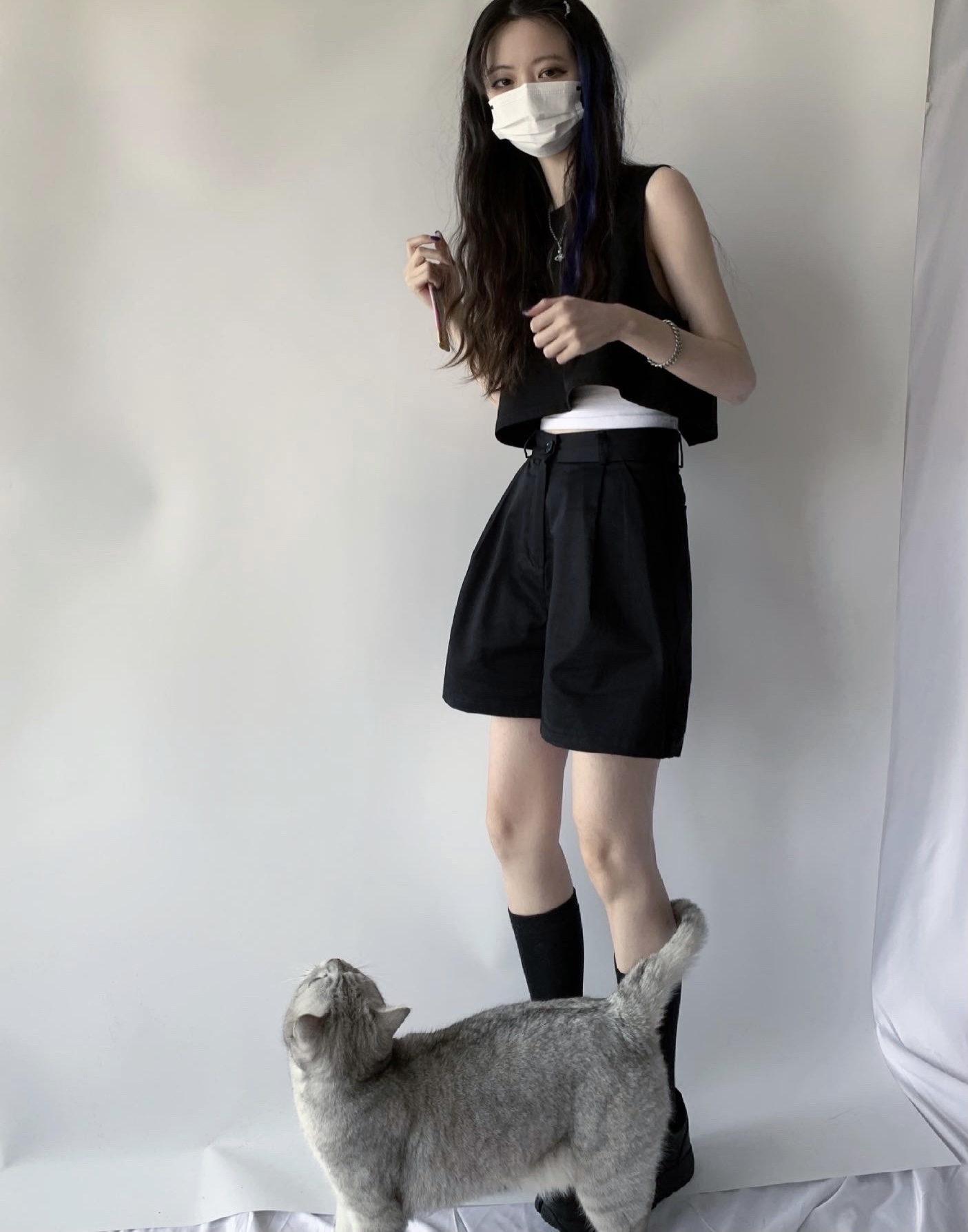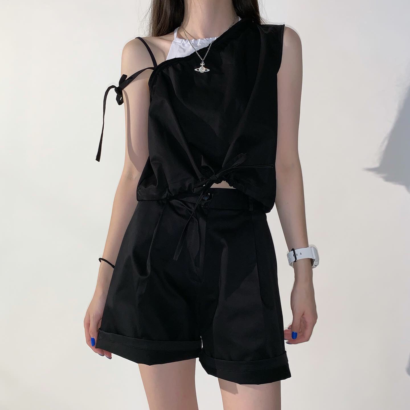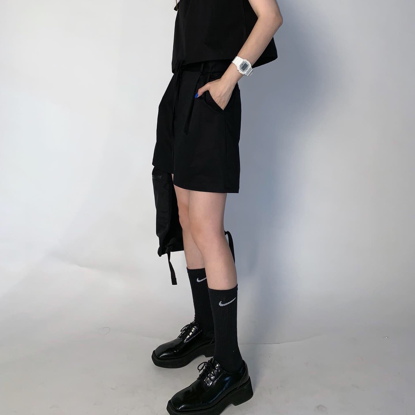 三分裤遮大腿肉很显瘦 百搭的西装短裤 和吊带一起穿真的帅嗷!裤子日常利用率很高 比较实用