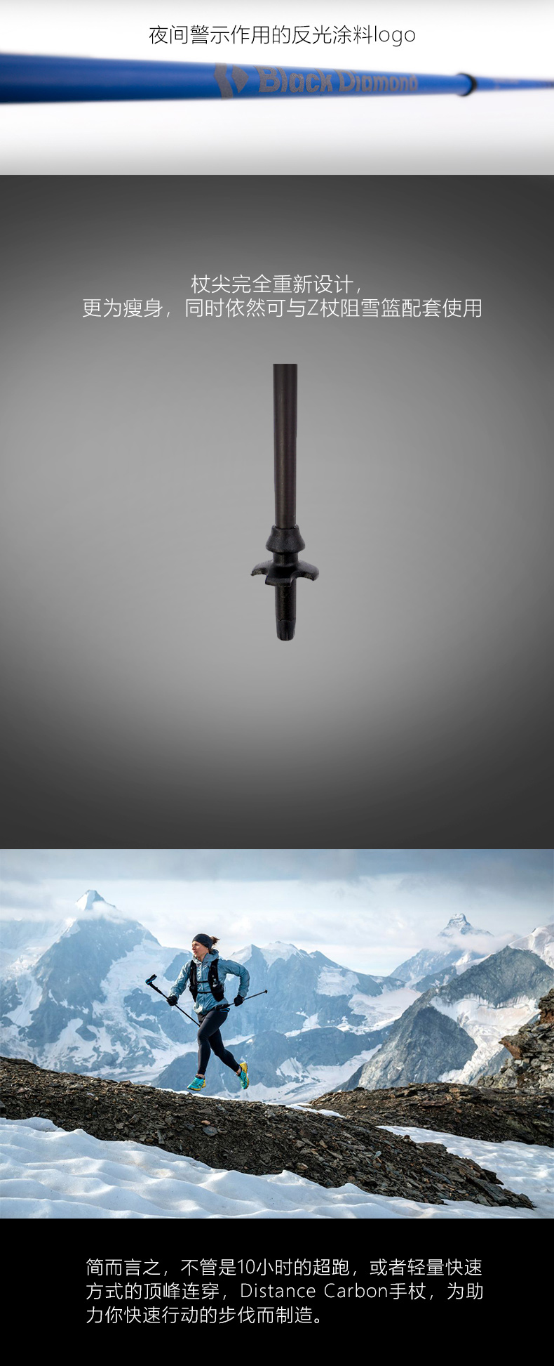 BlackDiamond黑鑽登山手杖碳素定長超輕戶外越野跑徒步柺杖112221
