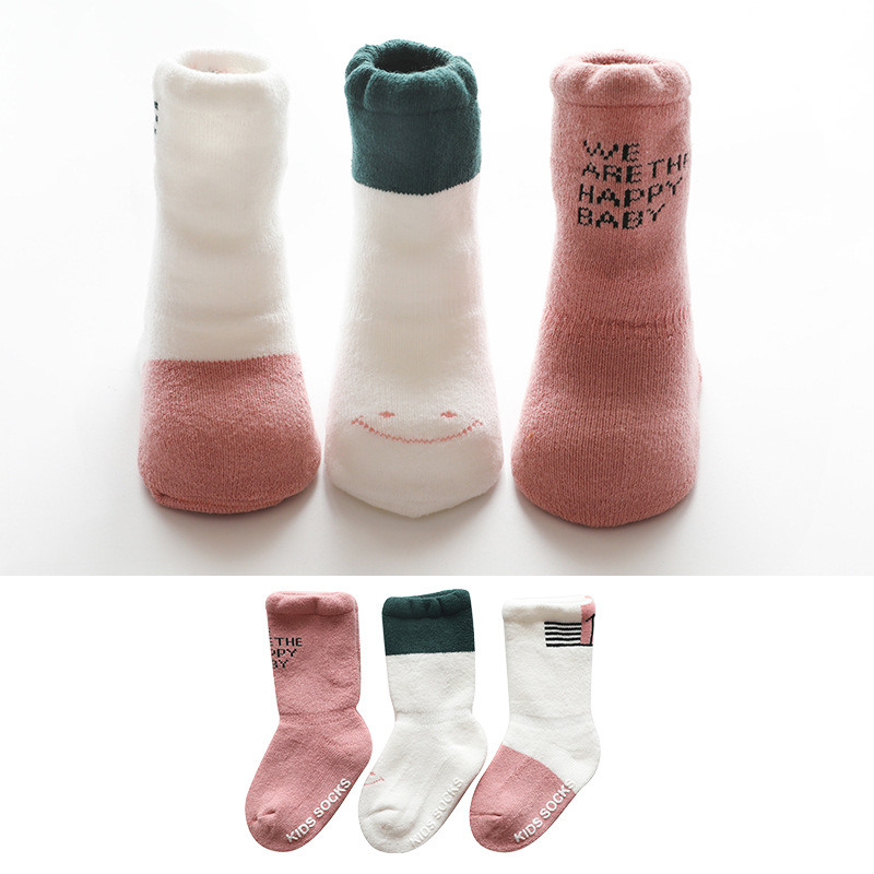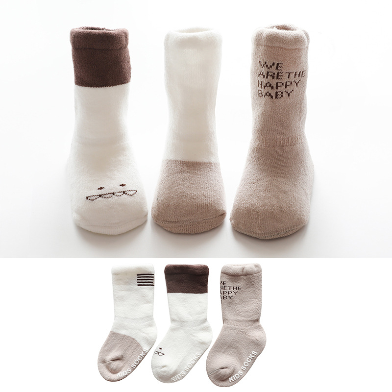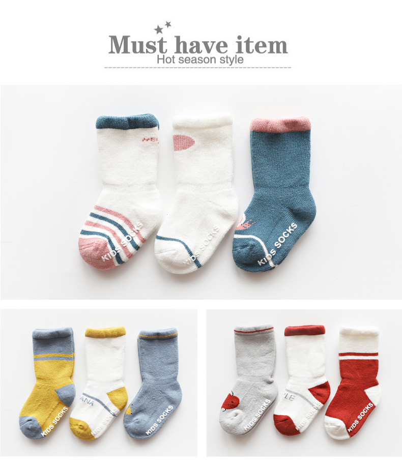 19年秋冬新款毛圈加厚婴儿袜子点胶防滑学步宝宝袜儿童中筒地板袜