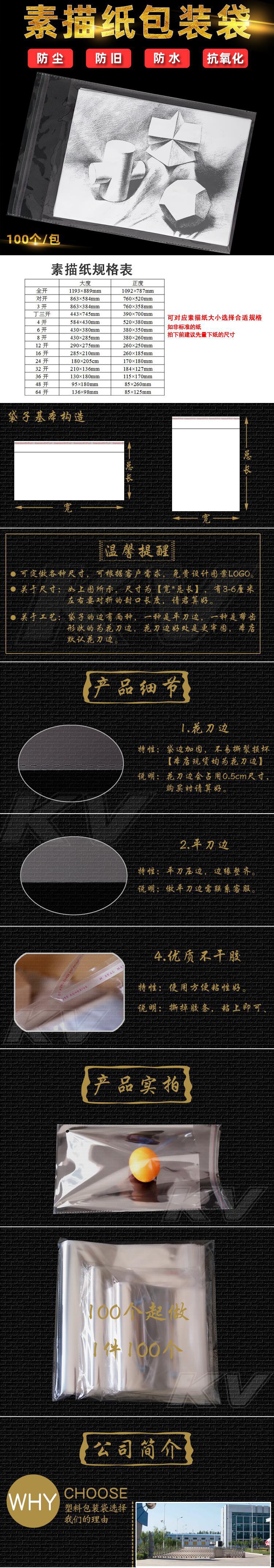 OPP自粘袋2K防尘素描纸袋子A4开8k透明16K塑料套A3绘画纸A2包装袋