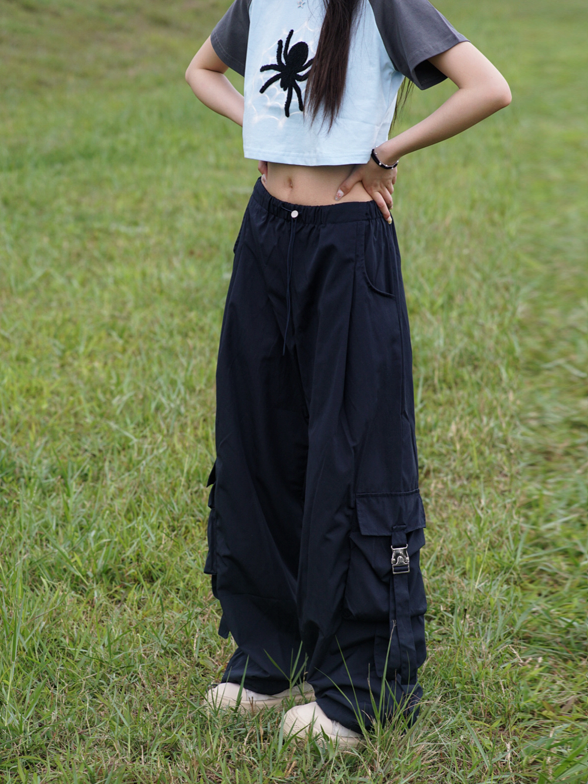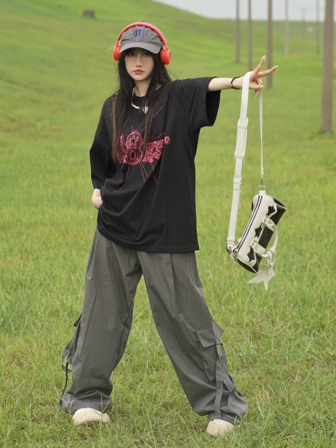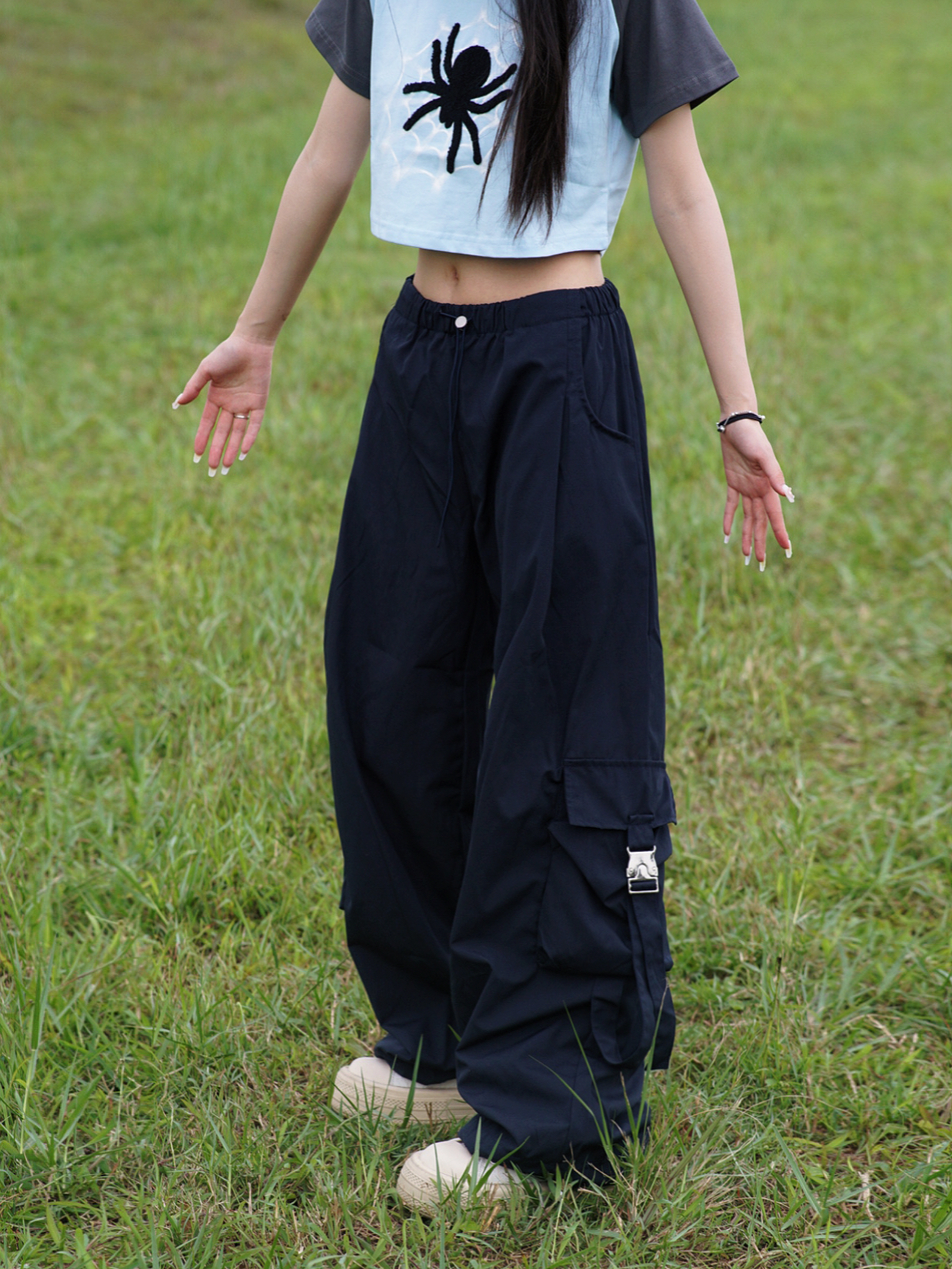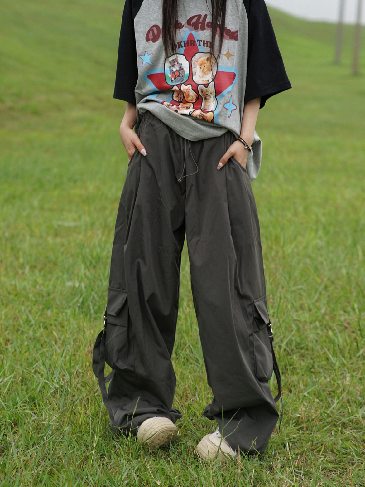 Amoeba小眾美式辣妹多口袋工裝褲寬鬆直筒闊腿休閒百搭日系長褲夏