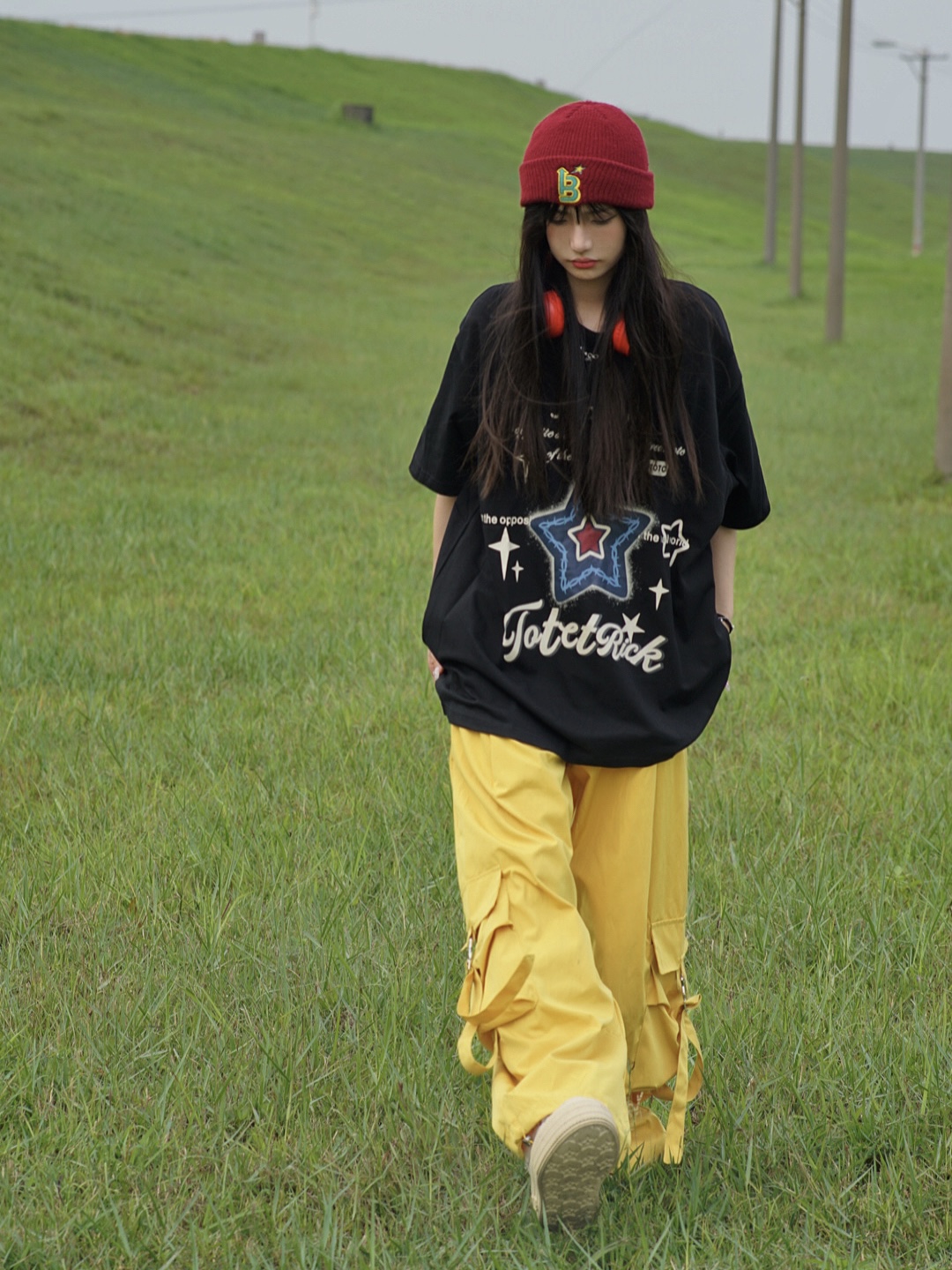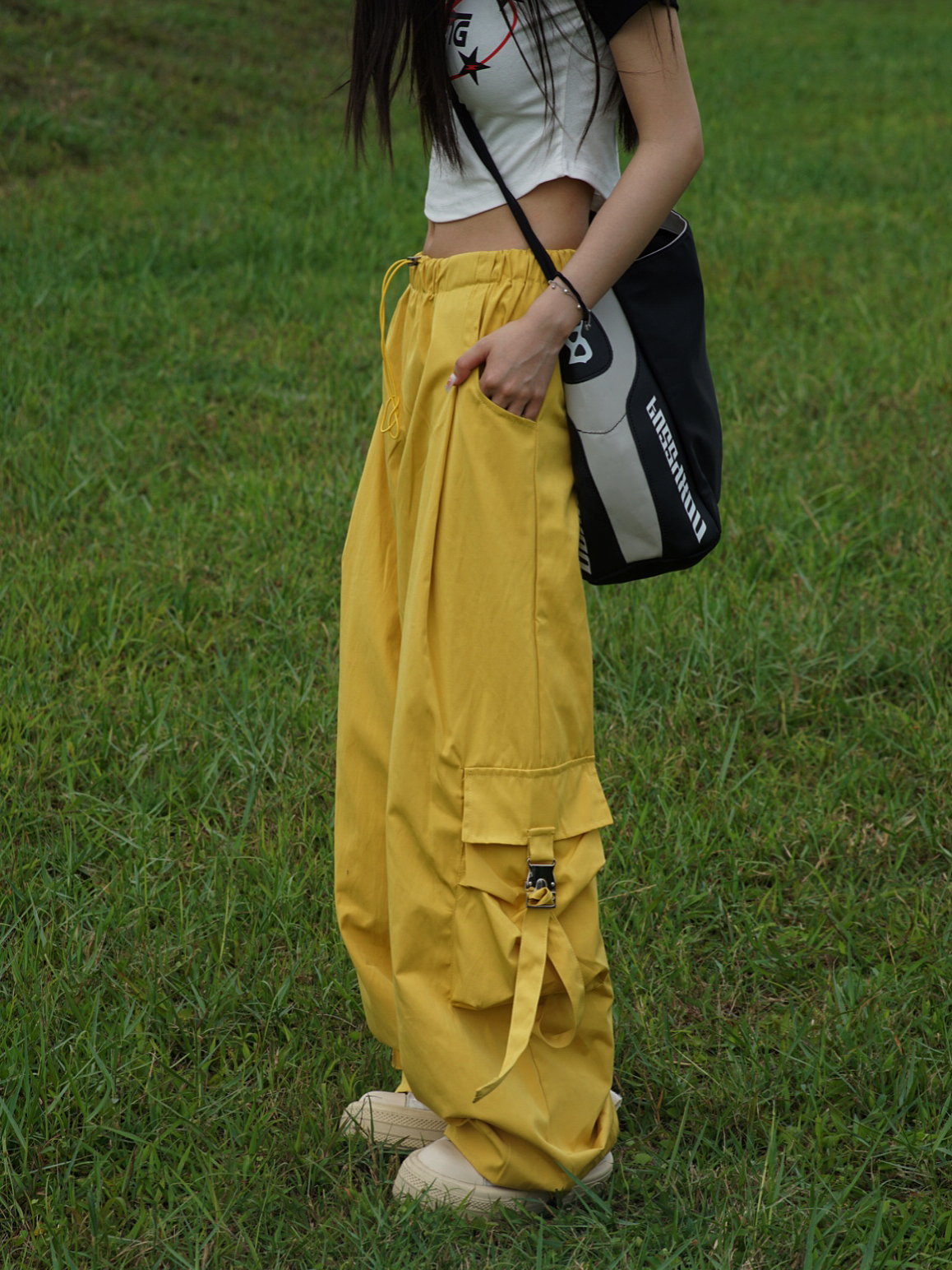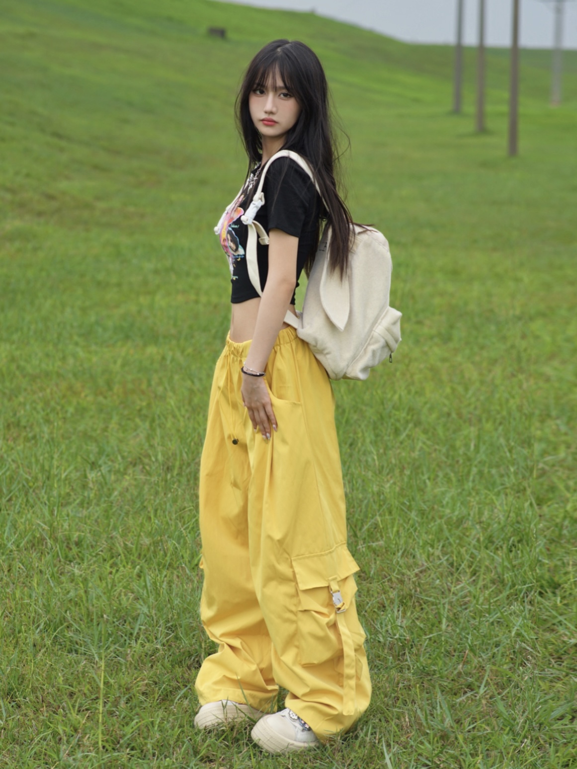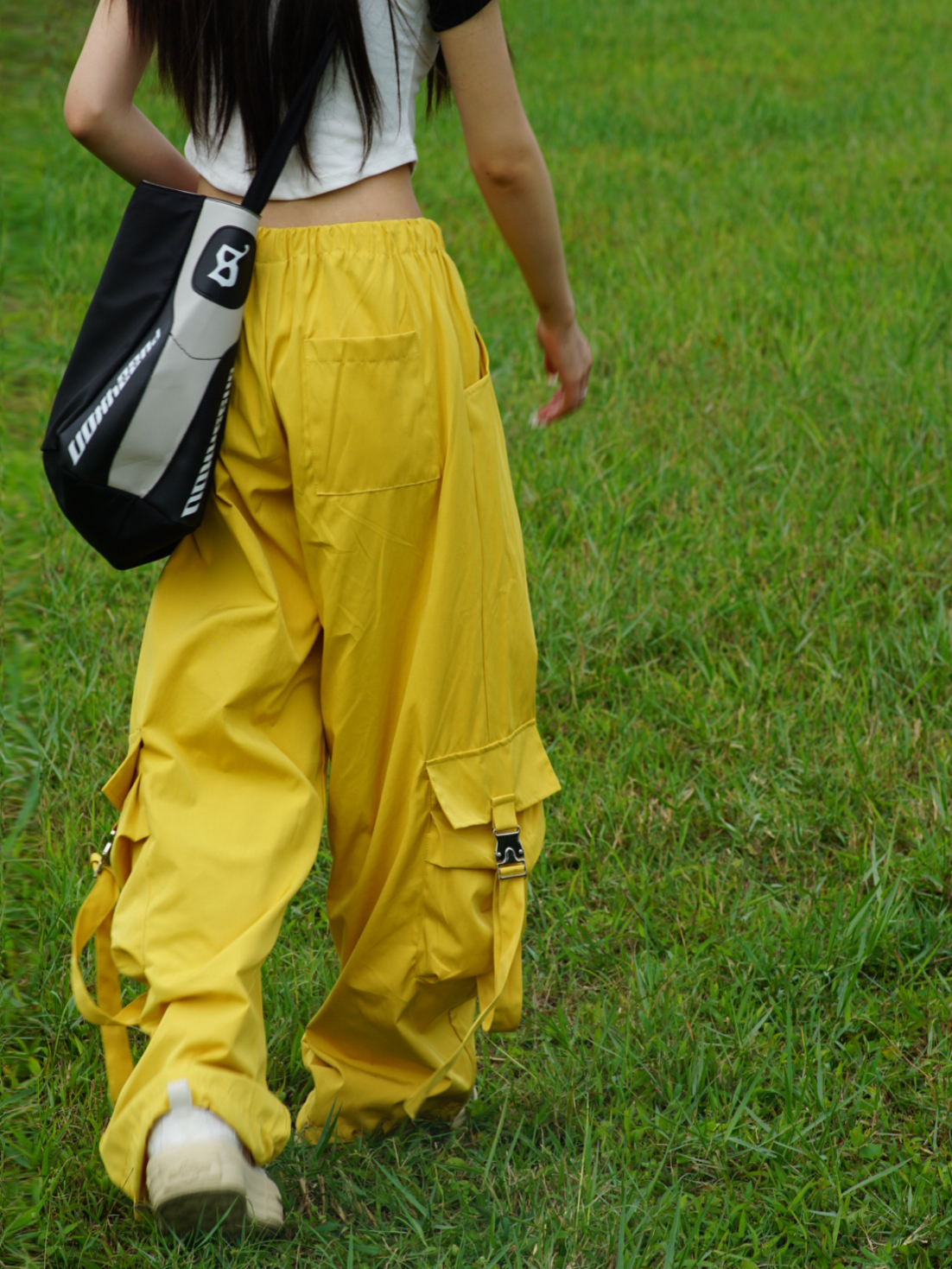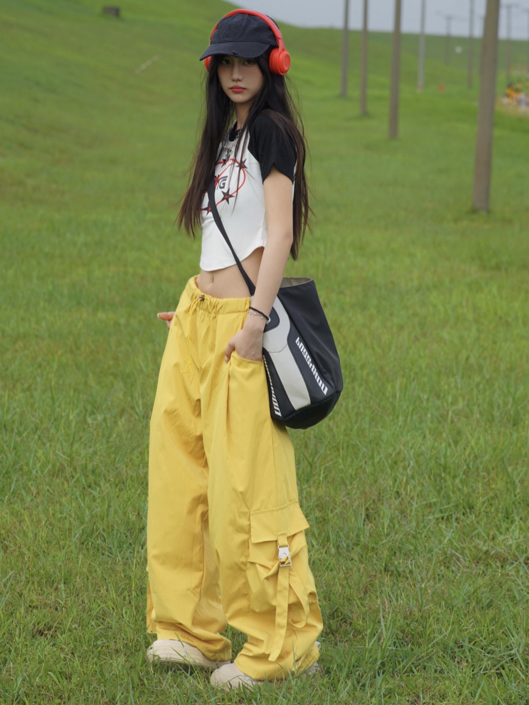 Amoeba小眾美式辣妹多口袋工裝褲寬鬆直筒闊腿休閒百搭日系長褲夏