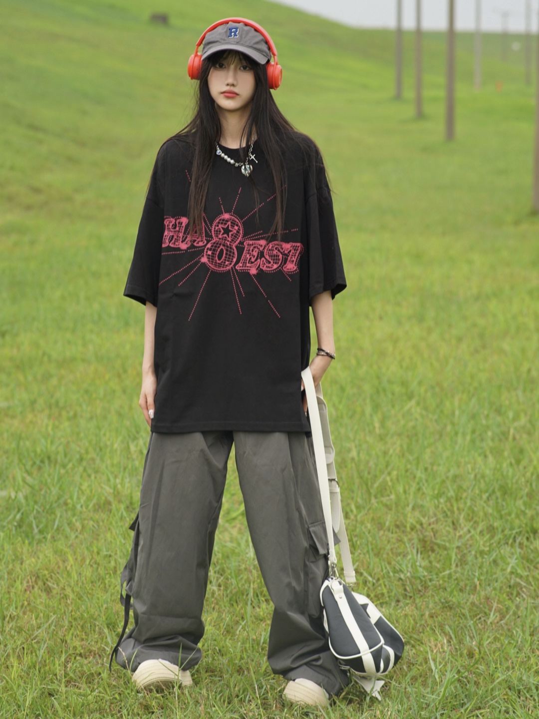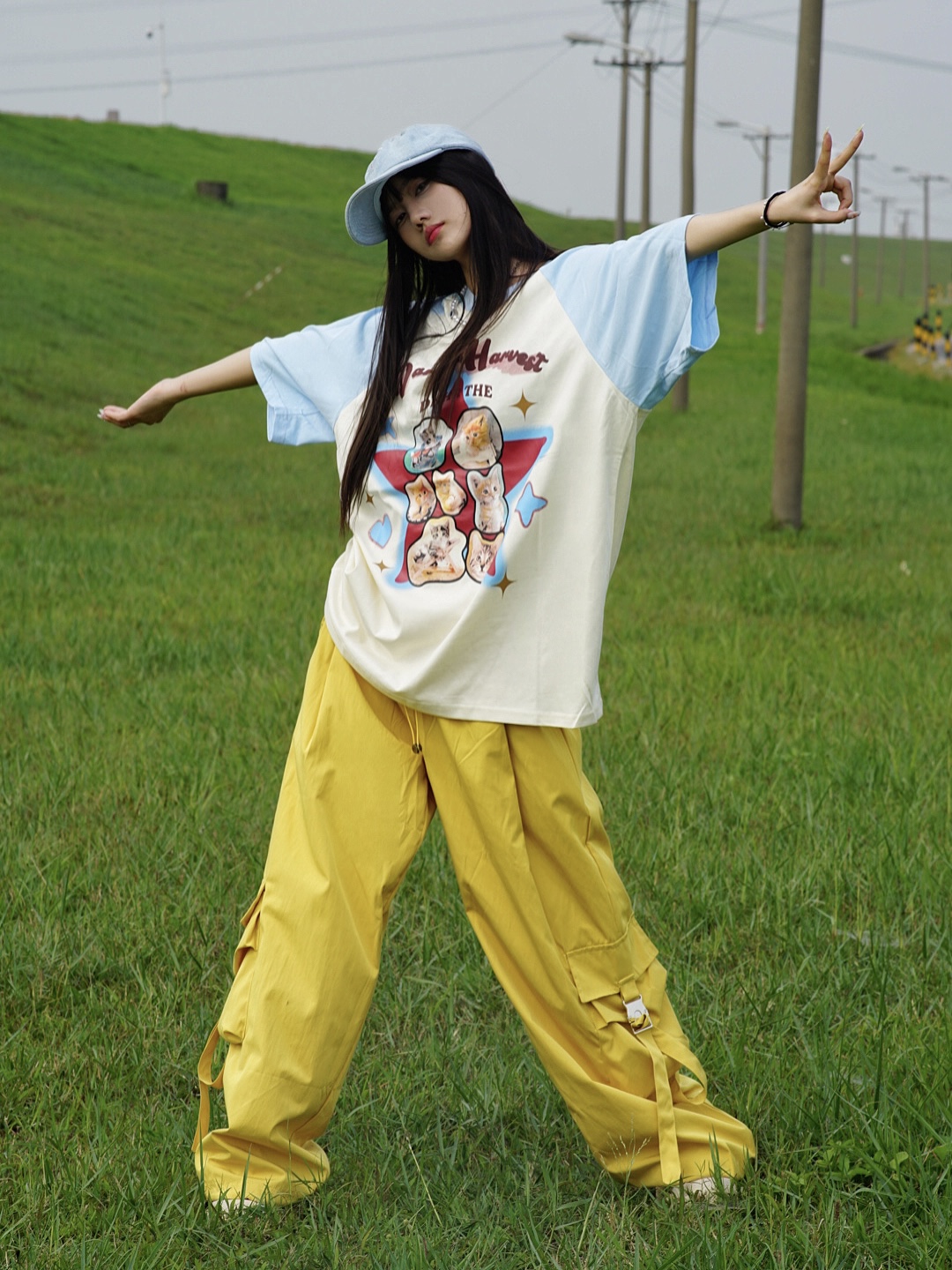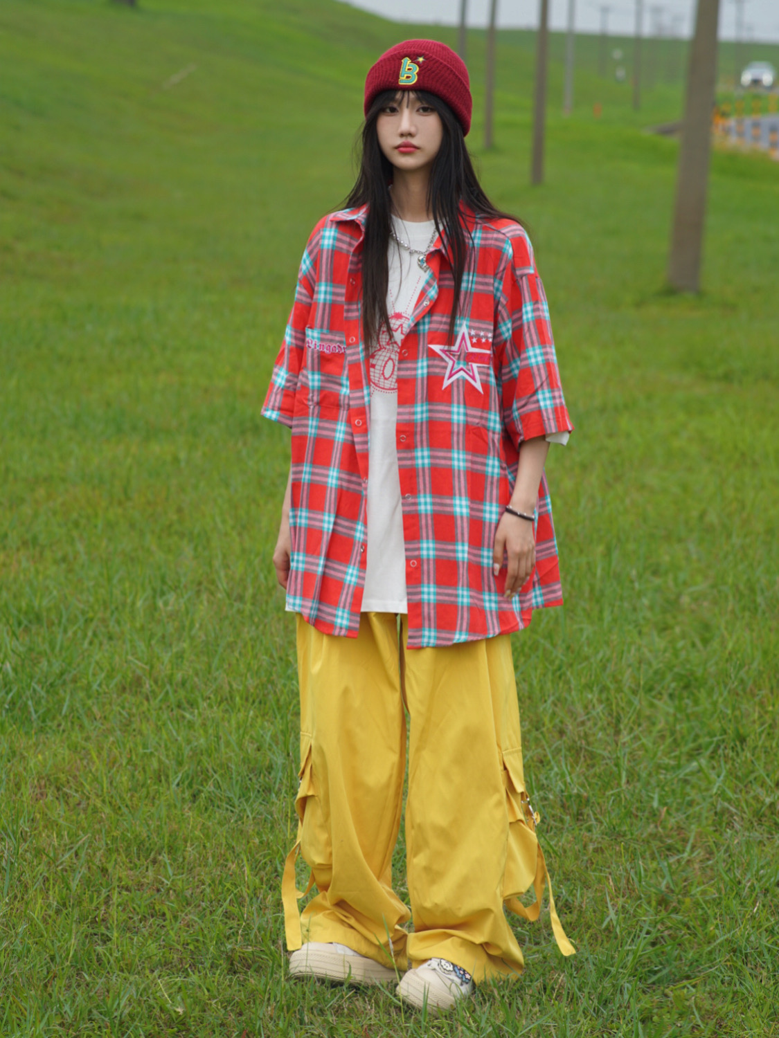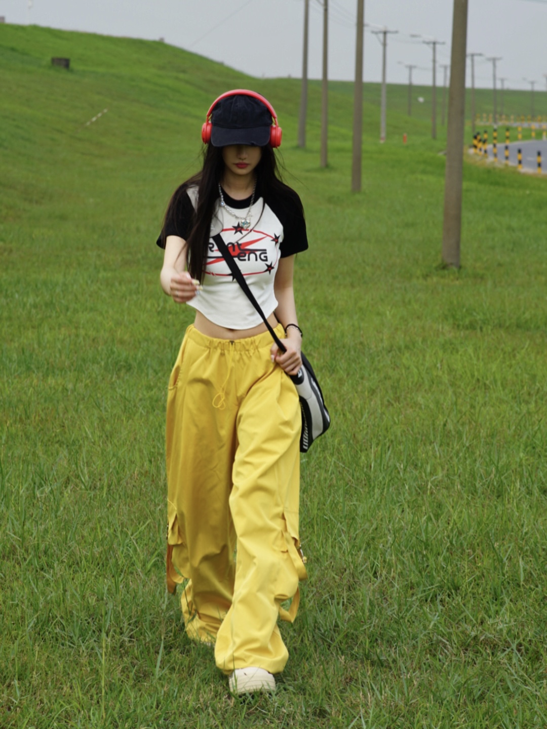 Amoeba小眾美式辣妹多口袋工裝褲寬鬆直筒闊腿休閒百搭日系長褲夏