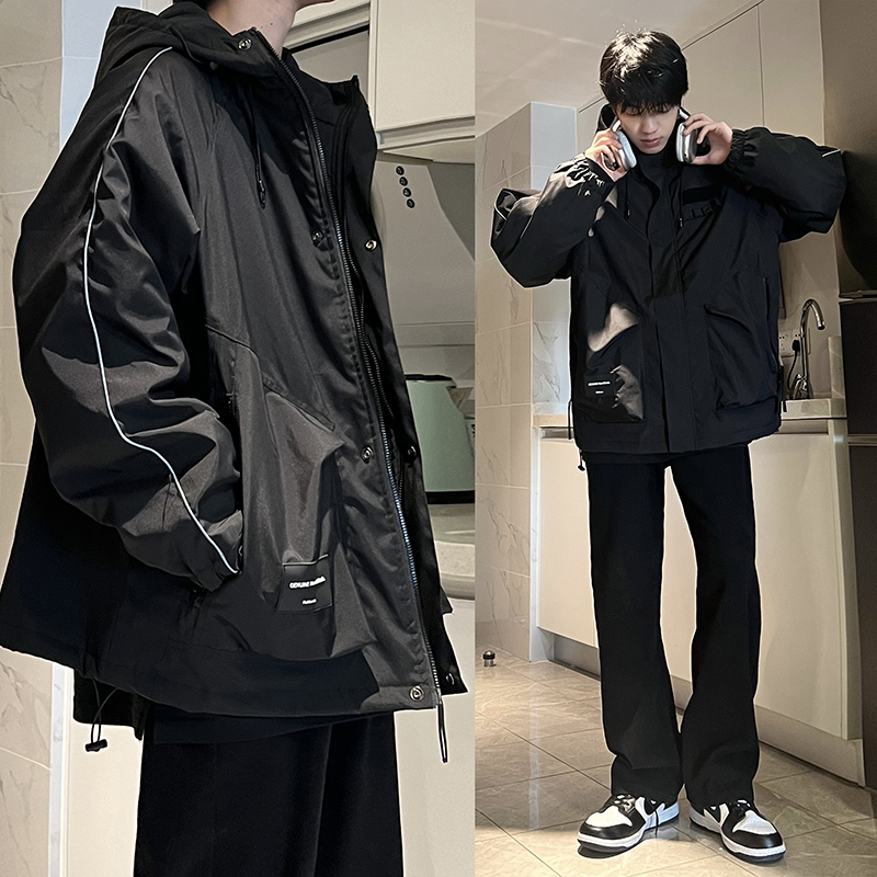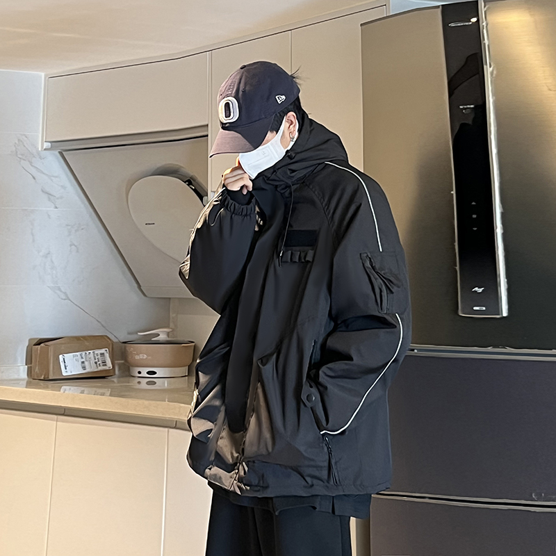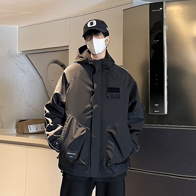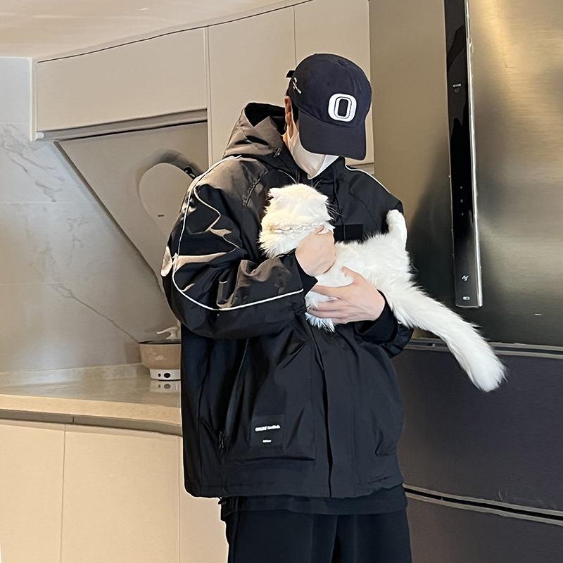 輕熟風加厚衝鋒衣連帽外套oldschool西海岸拉鍊輕奢小眾炸街上衣