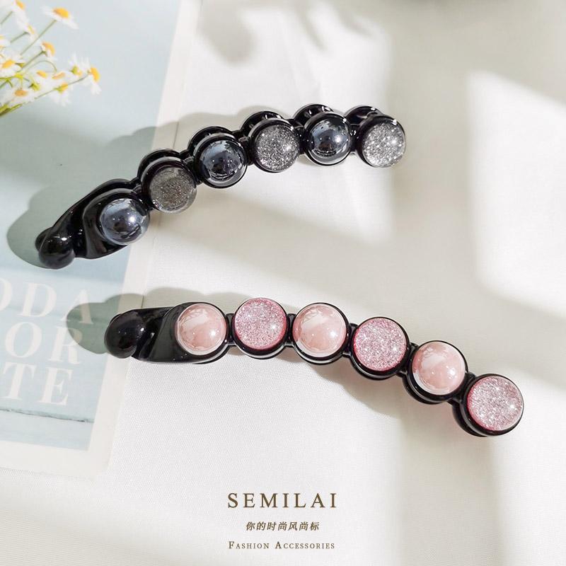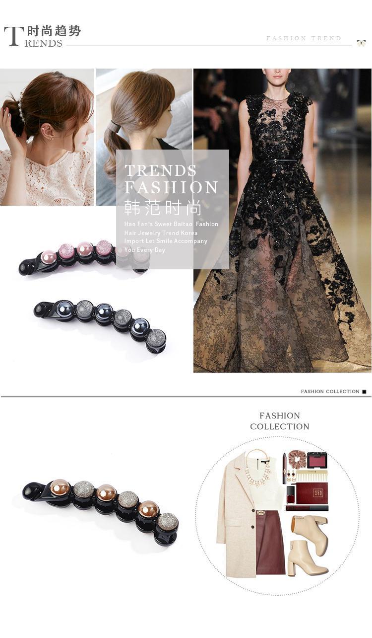 【48小时发货】气质韩国一字夹子头饰网红ins珍珠香蕉夹竖夹马尾