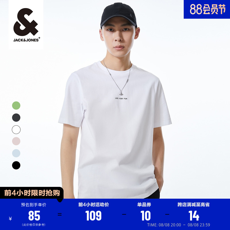 傑克瓊斯短袖T恤男士夏季新款休閒商務純色簡約休閒百搭上衣男裝