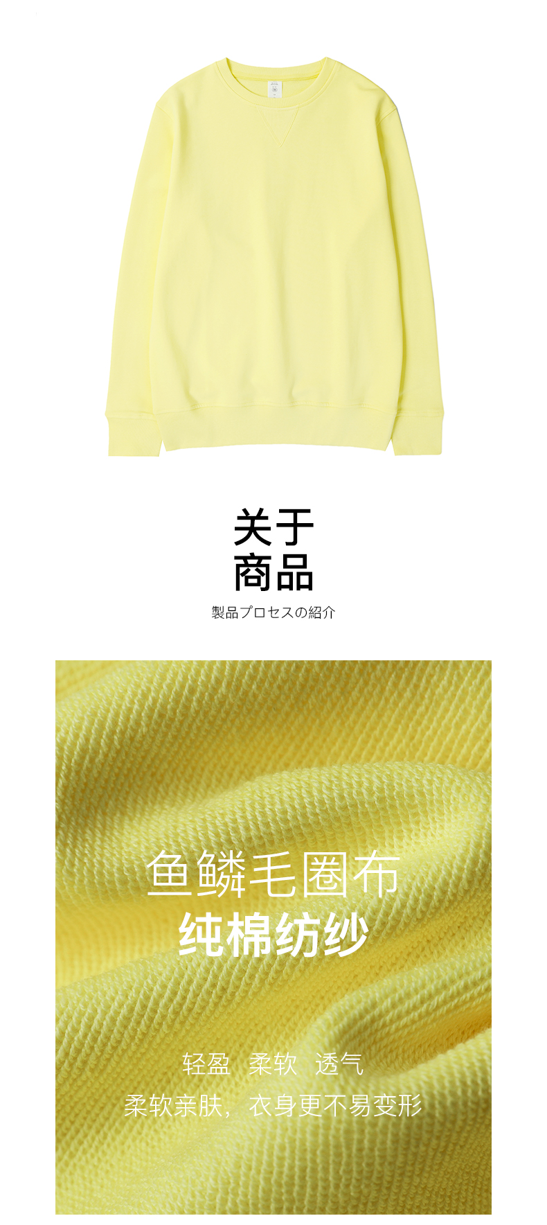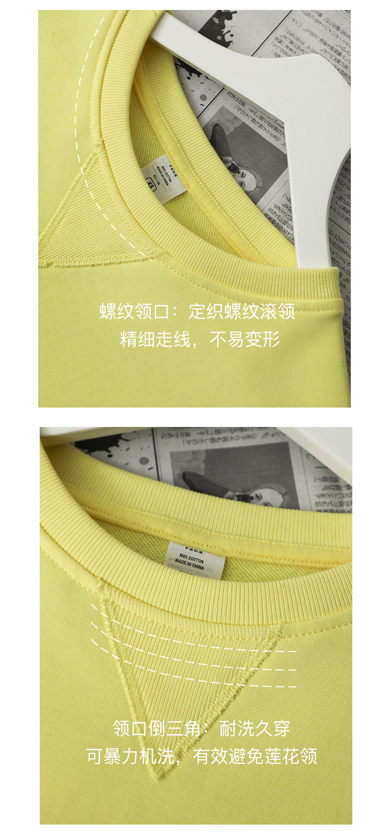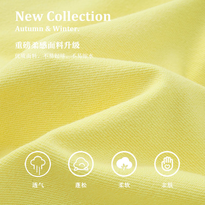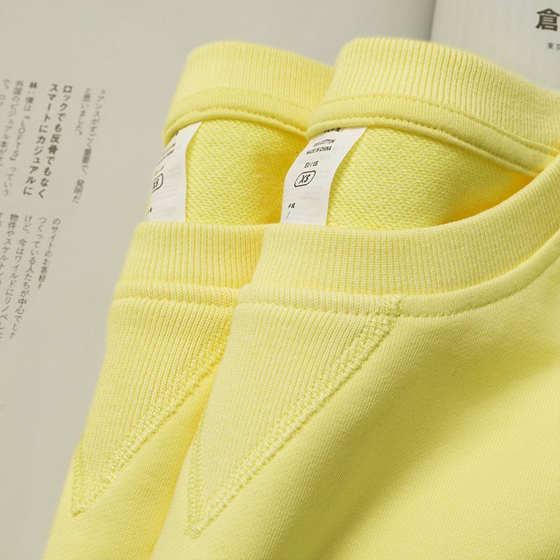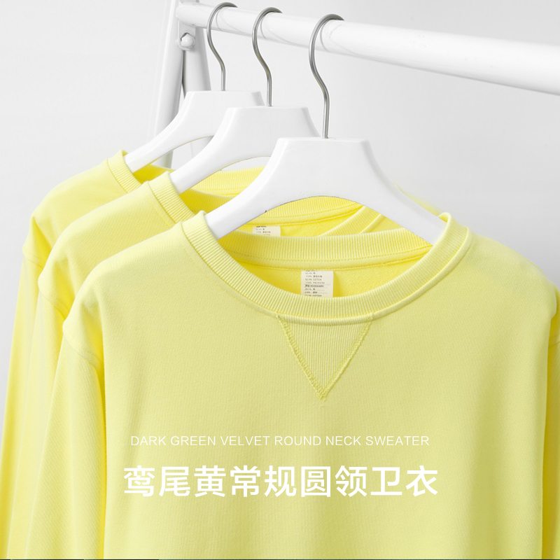 色彩治癒風 檸檬黃320g鵝黃色奶黃色衛衣女淡黃色毛圈布長袖男秋