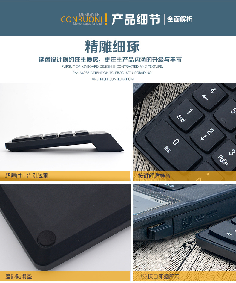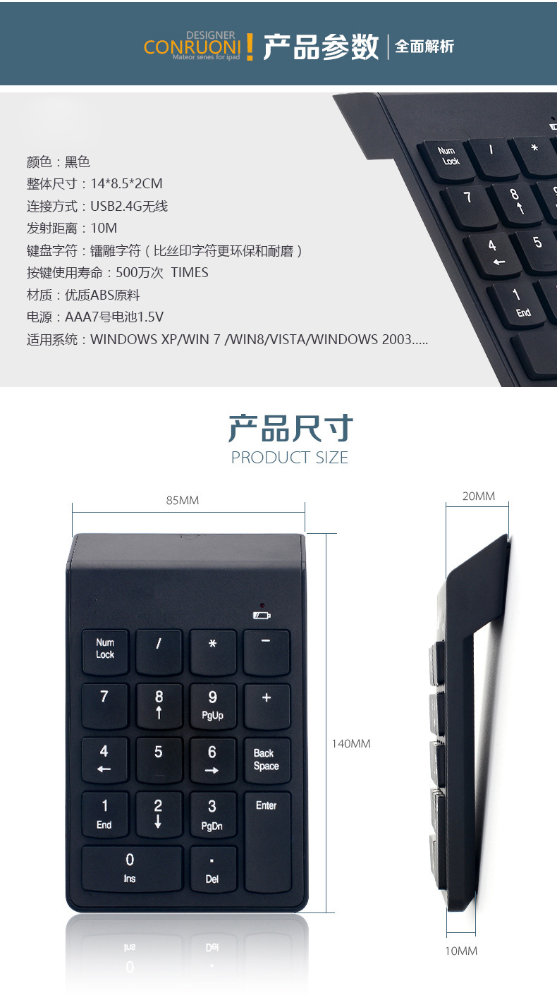 无线数字 键盘 可以做 有线, 2.4G 无线, 3.0蓝牙 无线