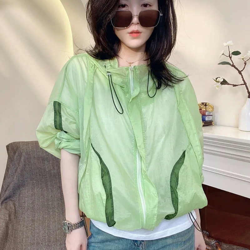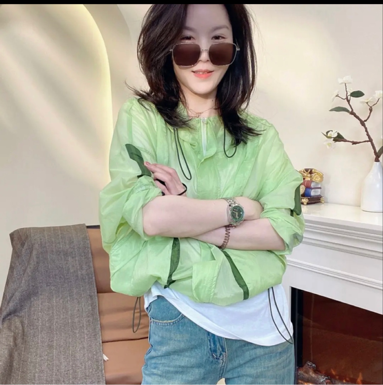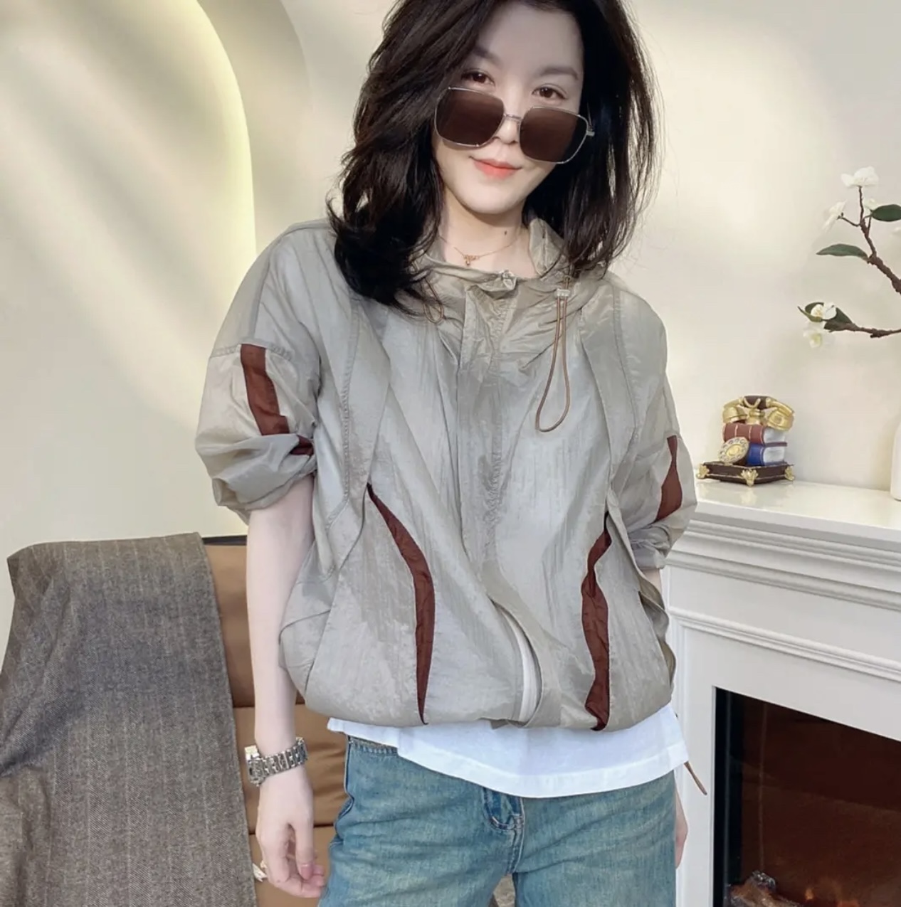 歐貨連帽拉鍊短款防曬衣女款2023夏季防曬服抗UV防曬開衫外套