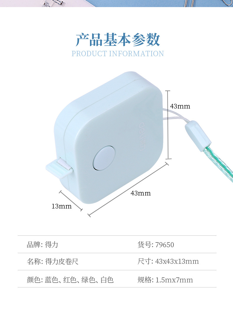 得力皮尺卷尺79650家用软尺随身量尺迷你皮卷尺测量衣服腰围尺子