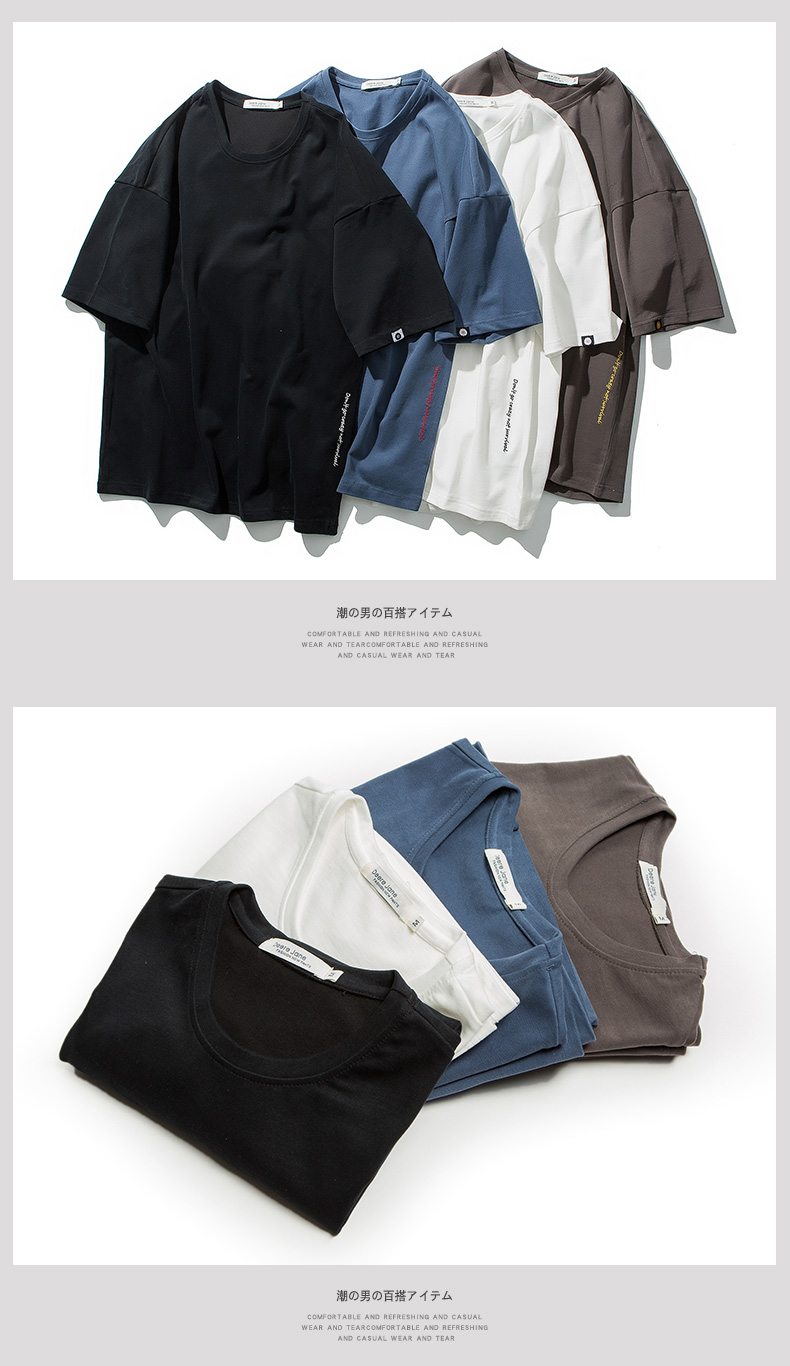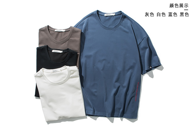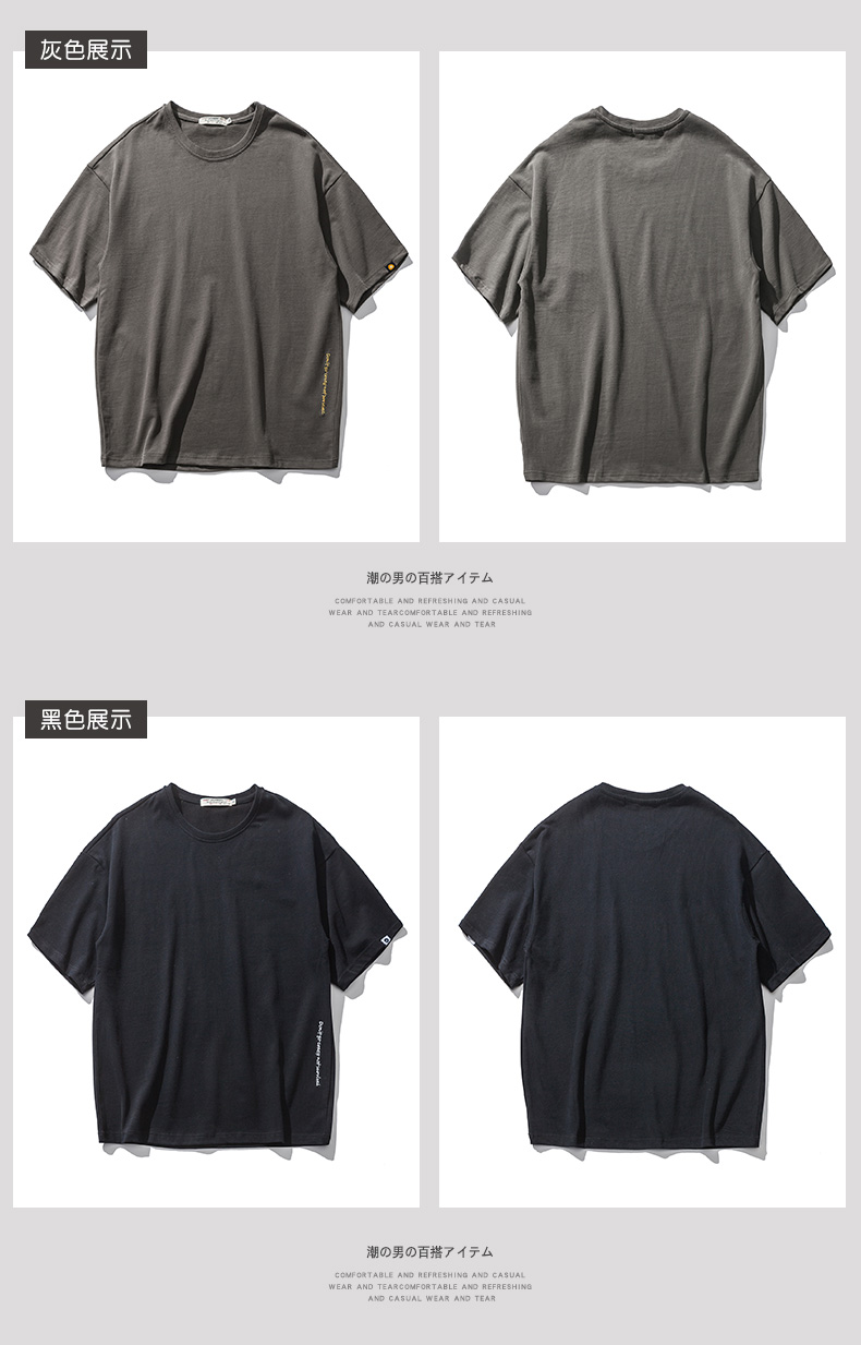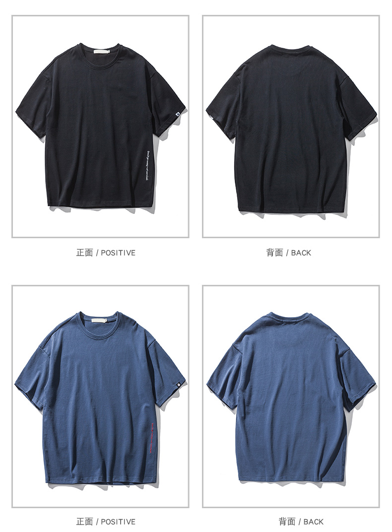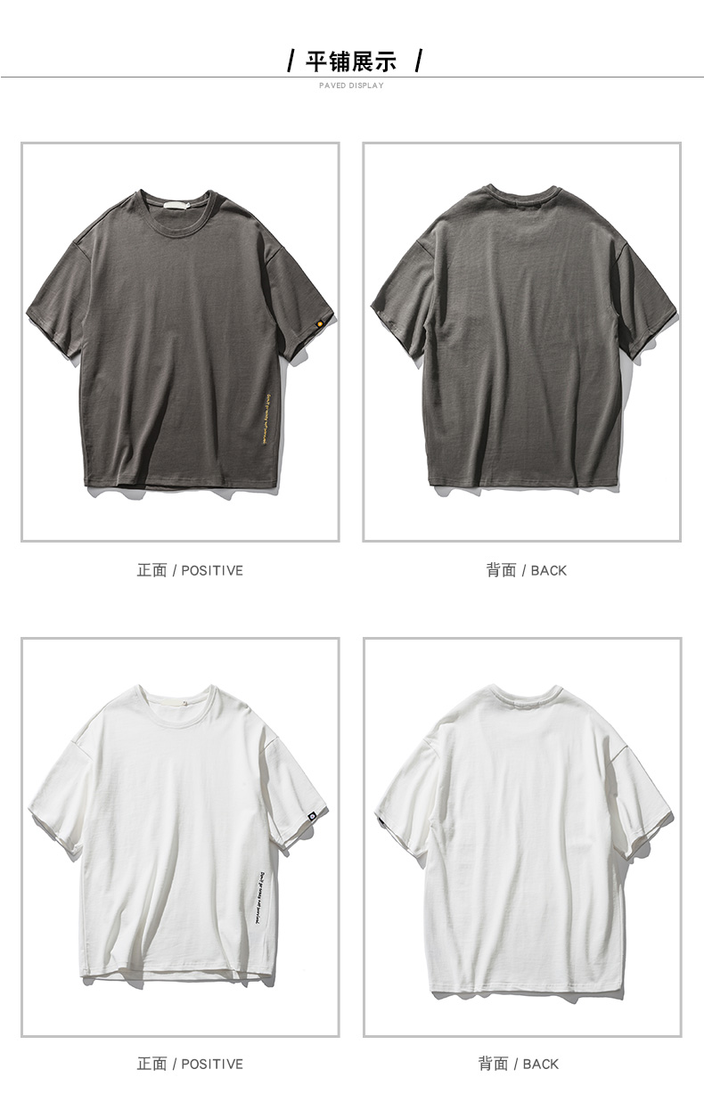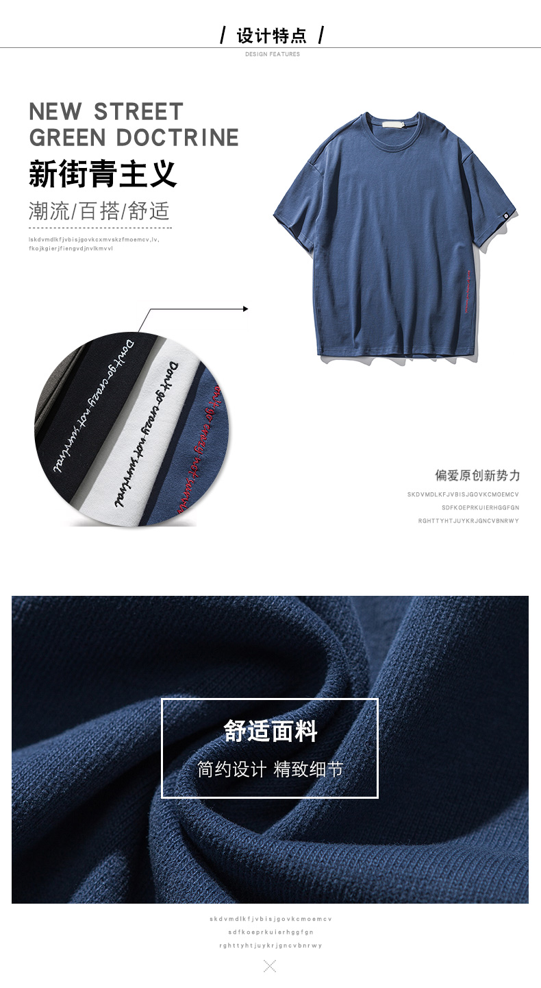夏季美式刺繡純色純棉短袖t恤男寬鬆百搭T恤上衣情侶半袖打底衫