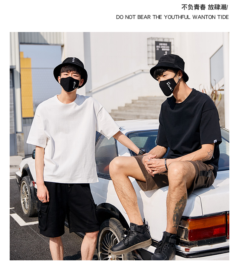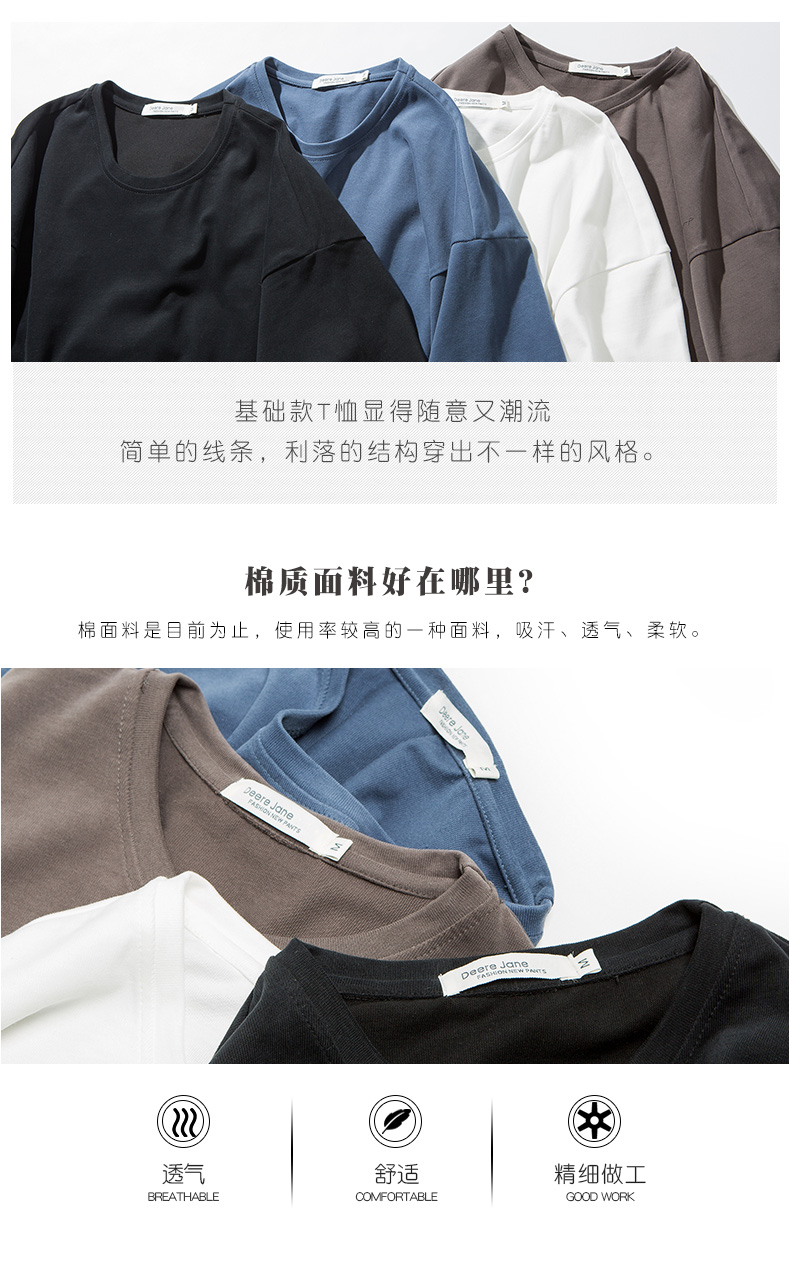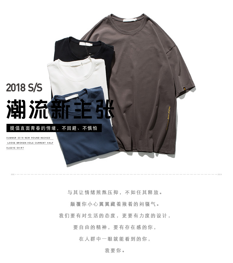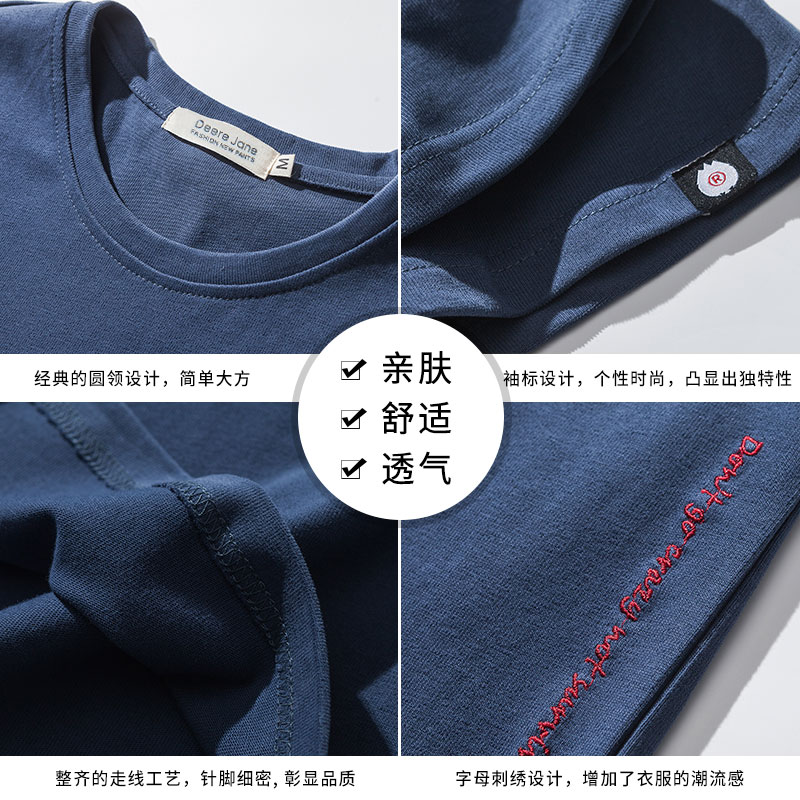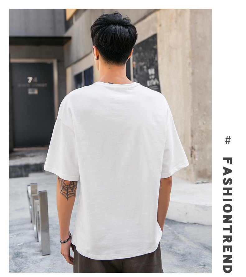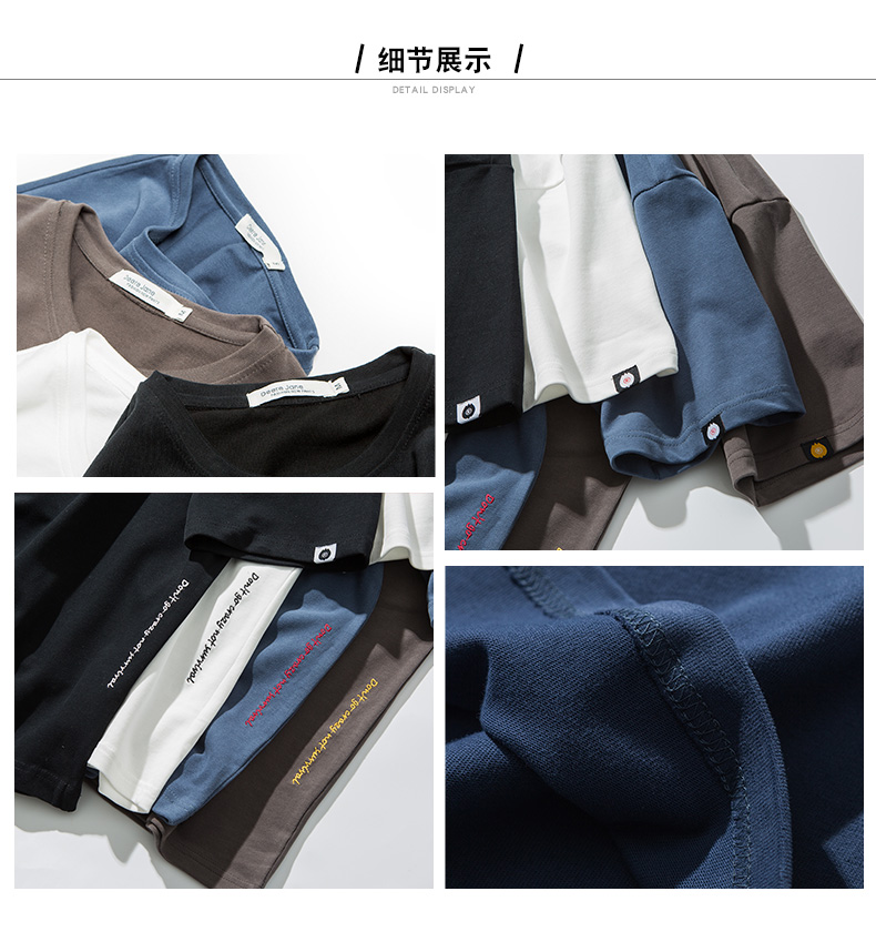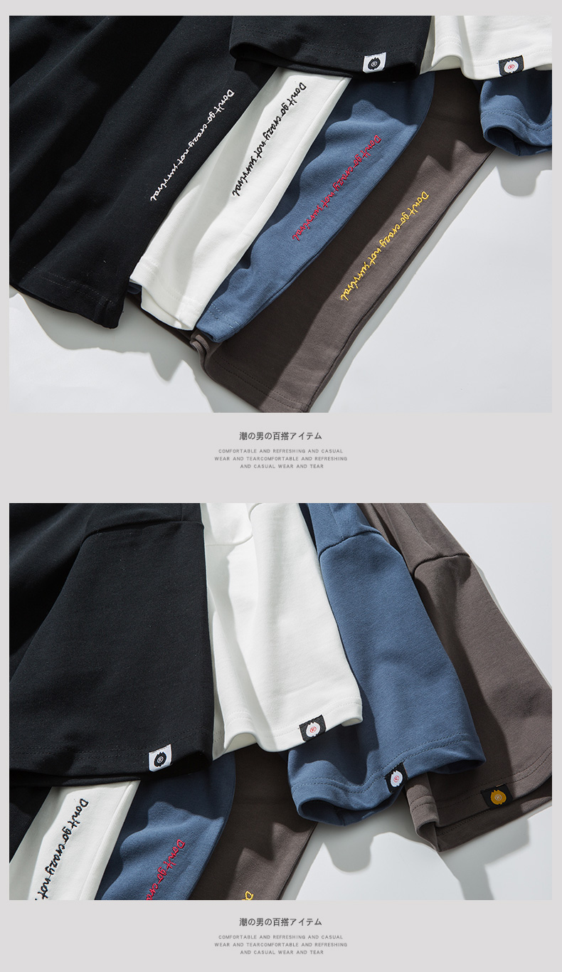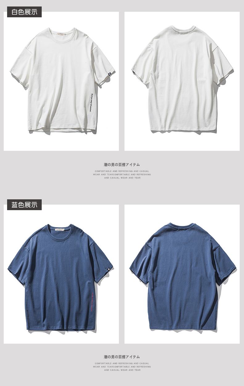 夏季美式刺繡純色純棉短袖t恤男寬鬆百搭T恤上衣情侶半袖打底衫