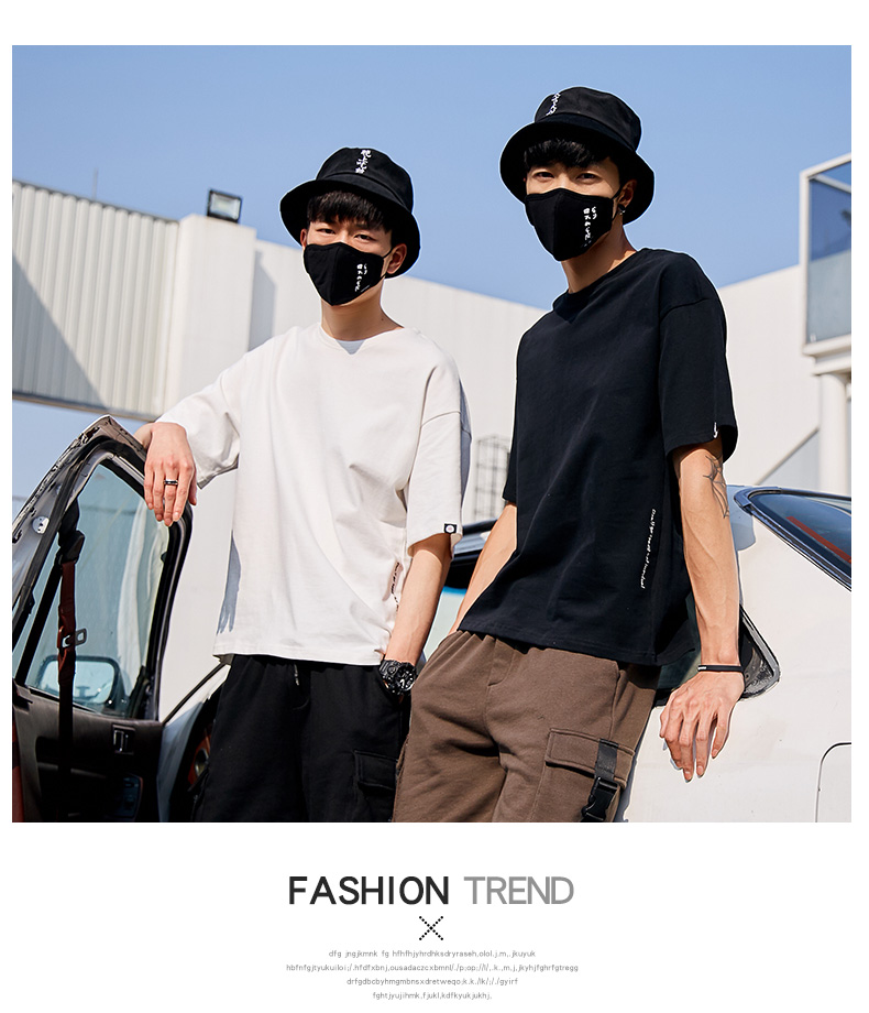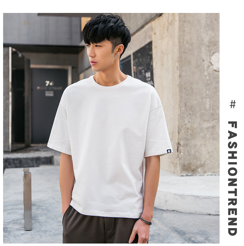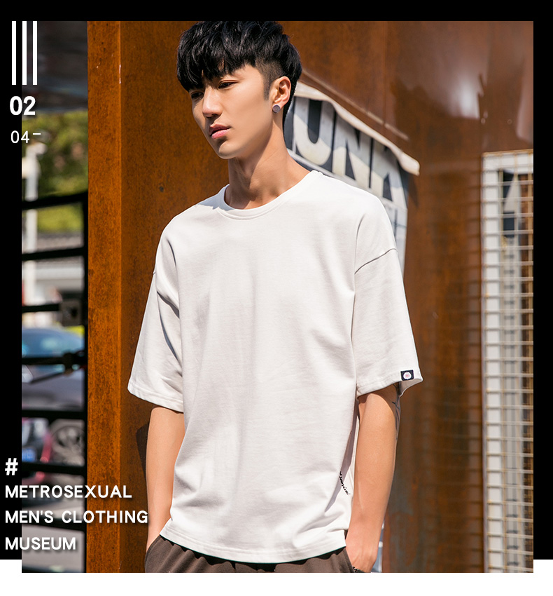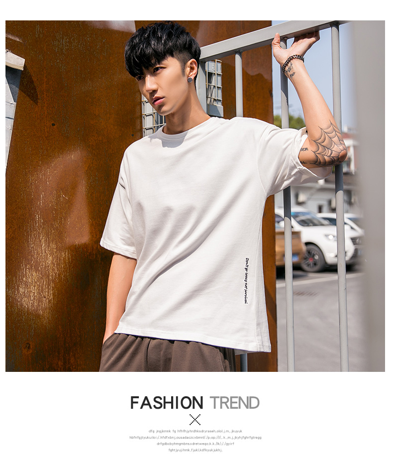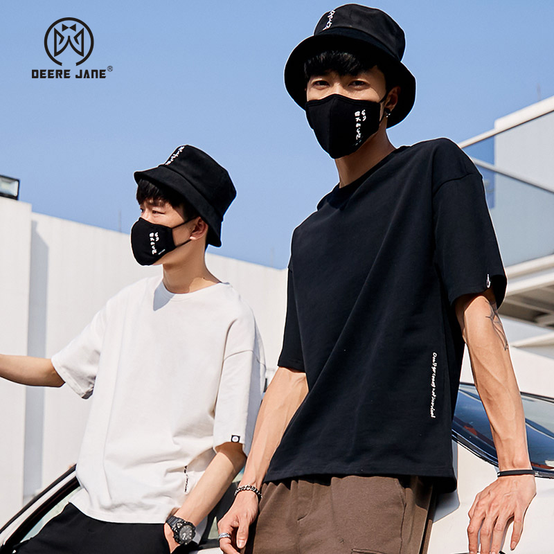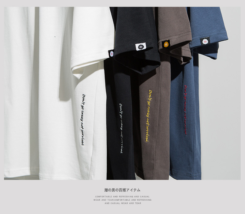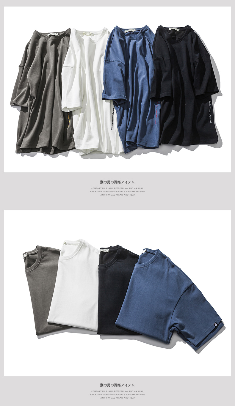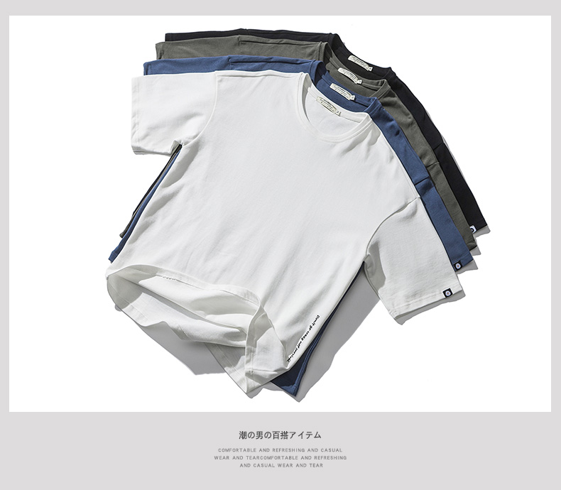 夏季美式刺繡純色純棉短袖t恤男寬鬆百搭T恤上衣情侶半袖打底衫