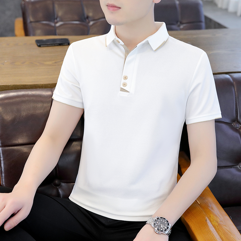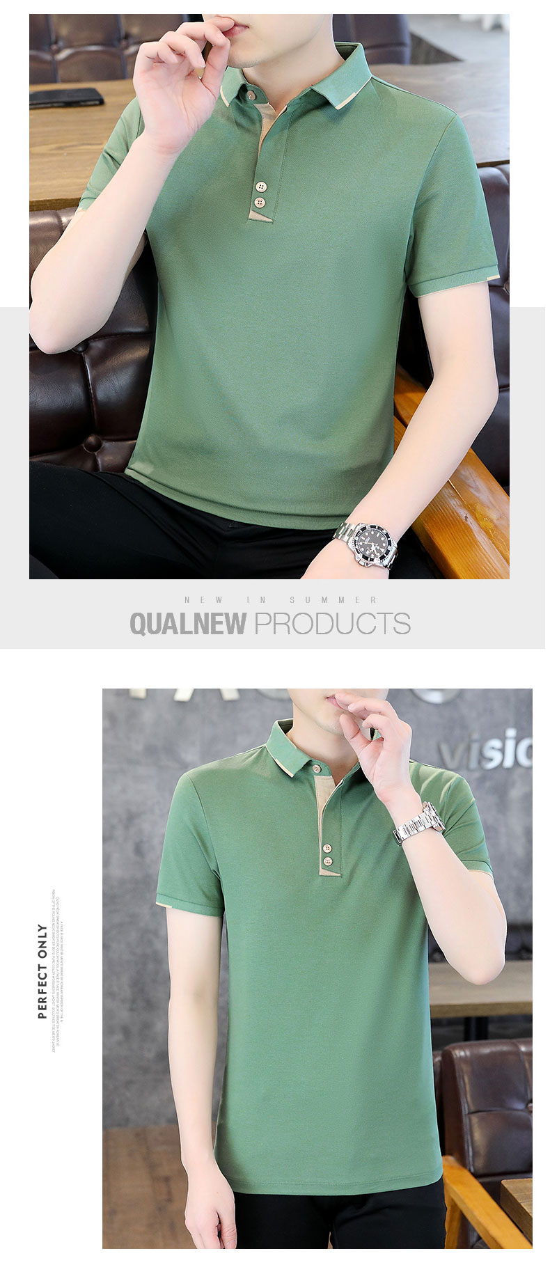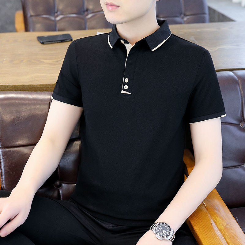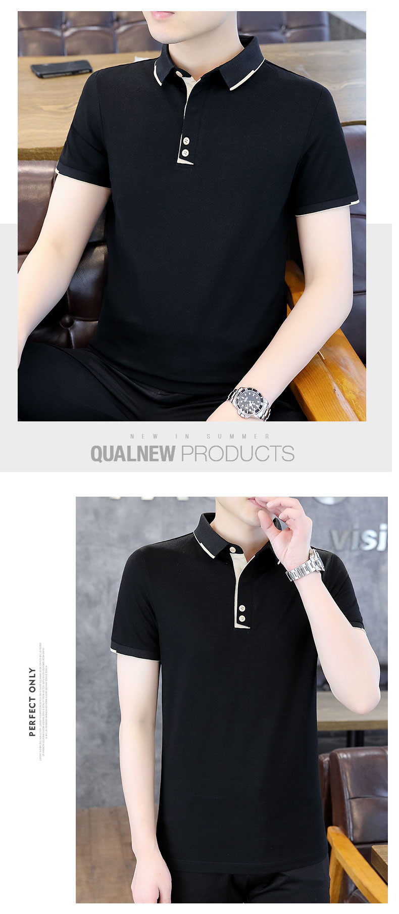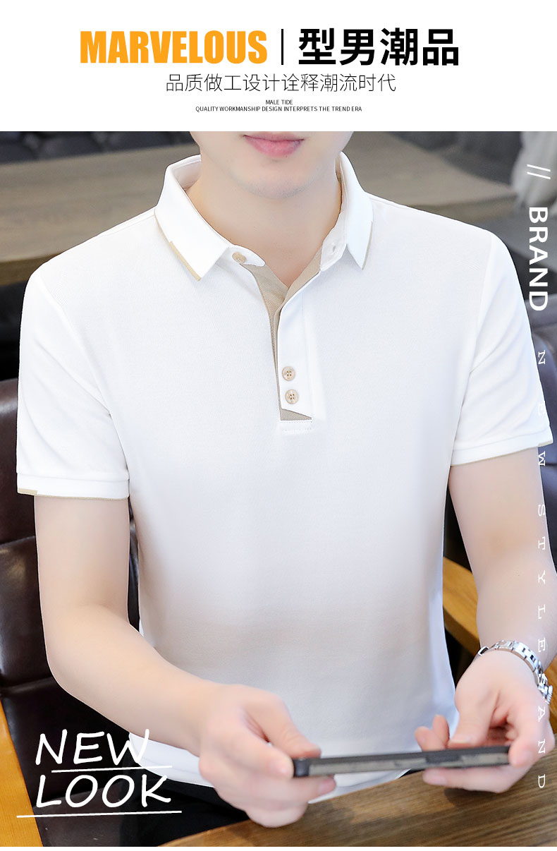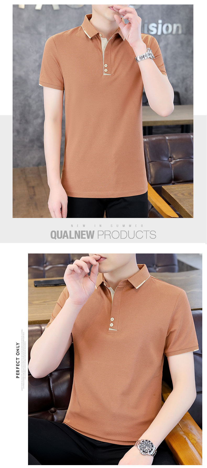 翻領純棉半袖polo衫男士休閒上衣簡約風短袖有領帶領T恤男裝夏季T