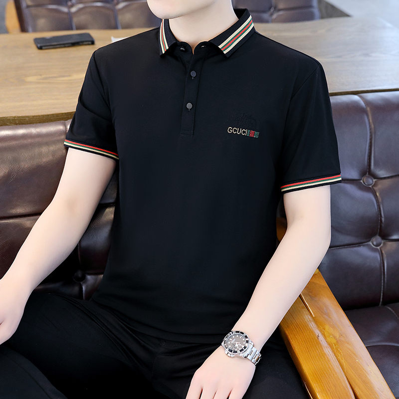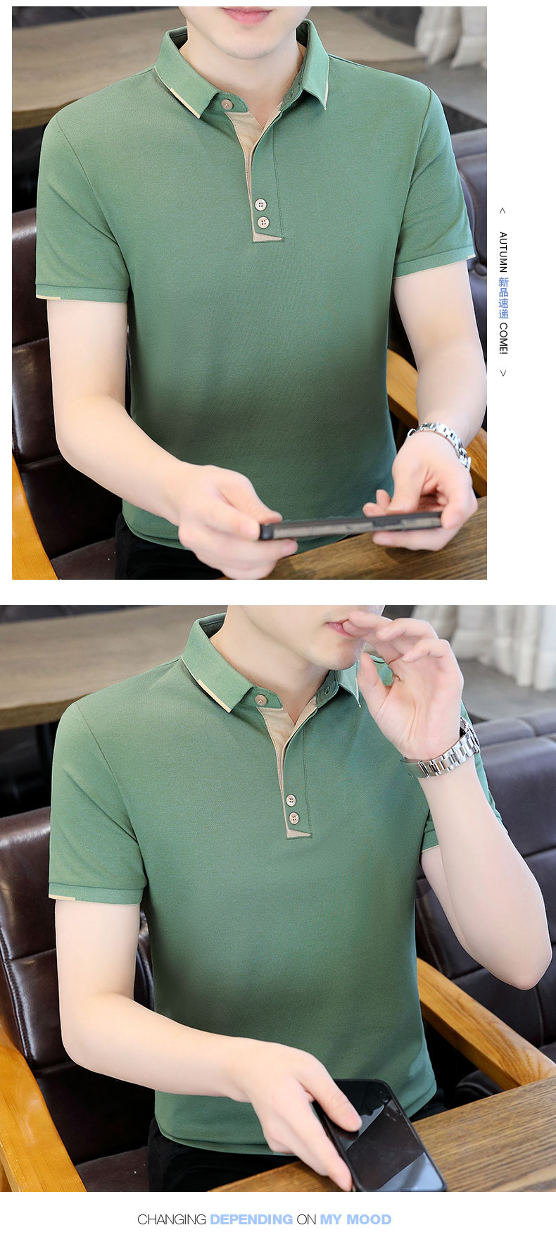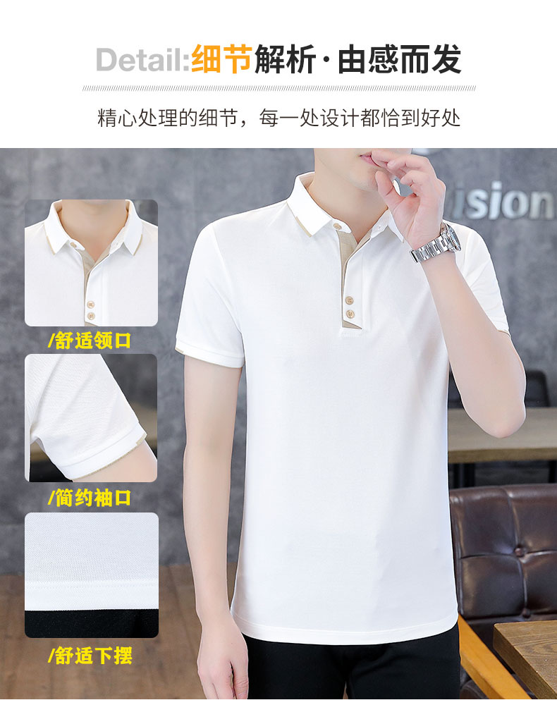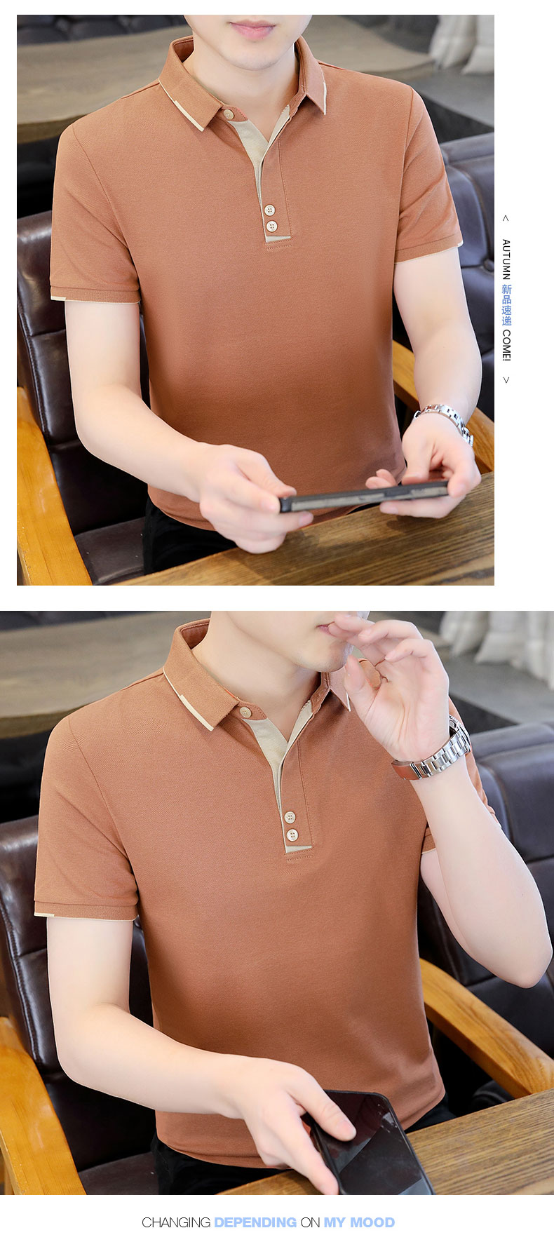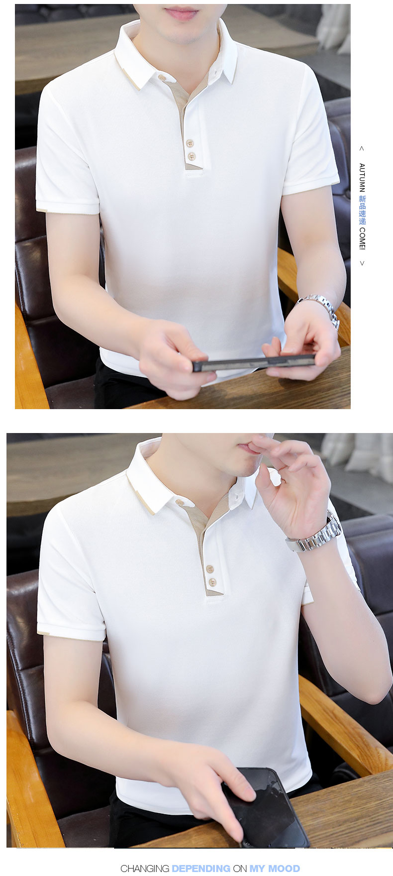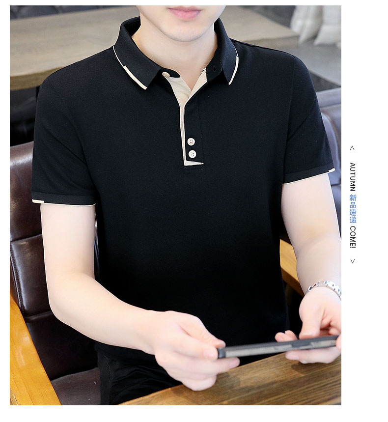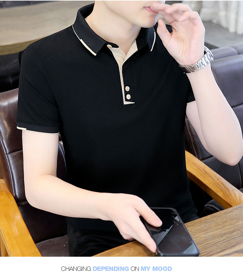 翻領純棉半袖polo衫男士休閒上衣簡約風短袖有領帶領T恤男裝夏季T