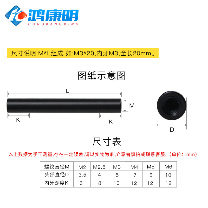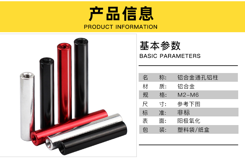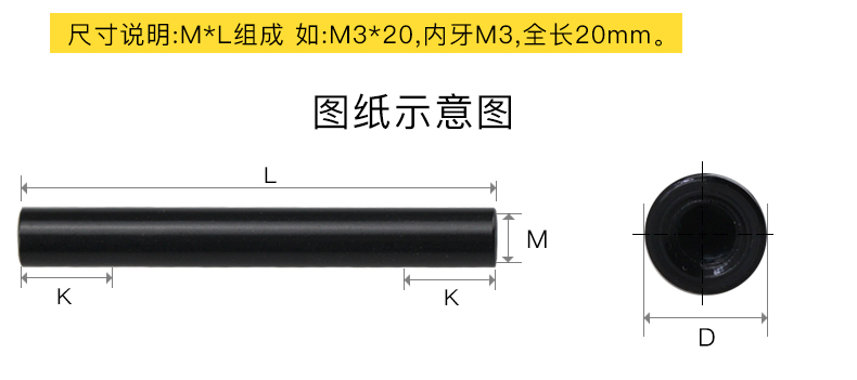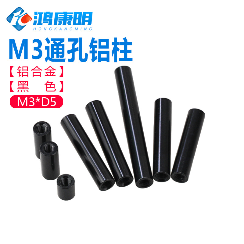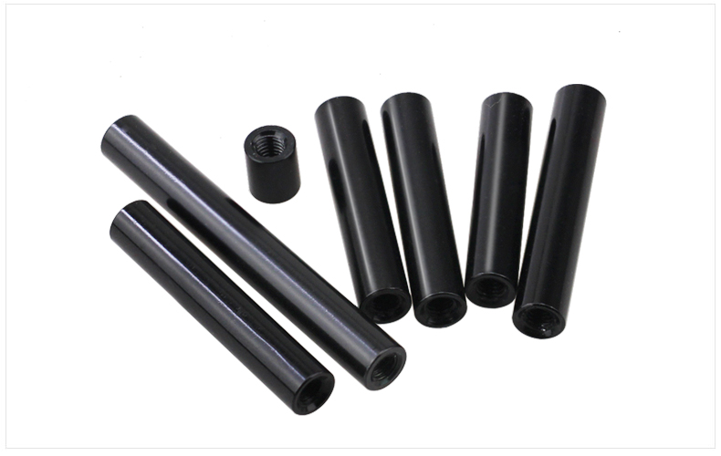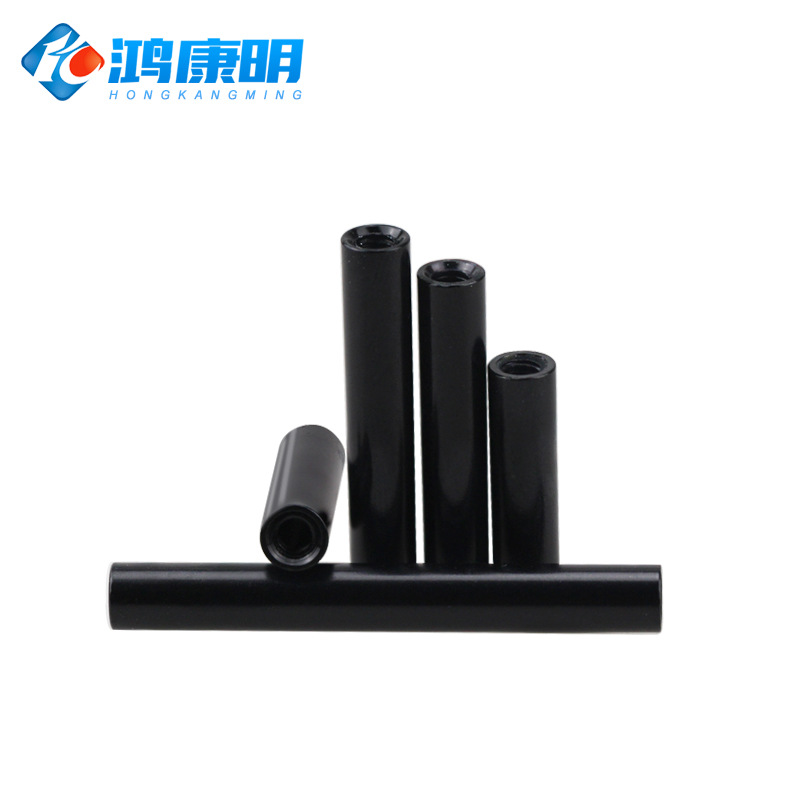 WBZ7M3D5黑色铝柱铝合金圆形空心阳极氧化通孔长螺母双内牙连接柱