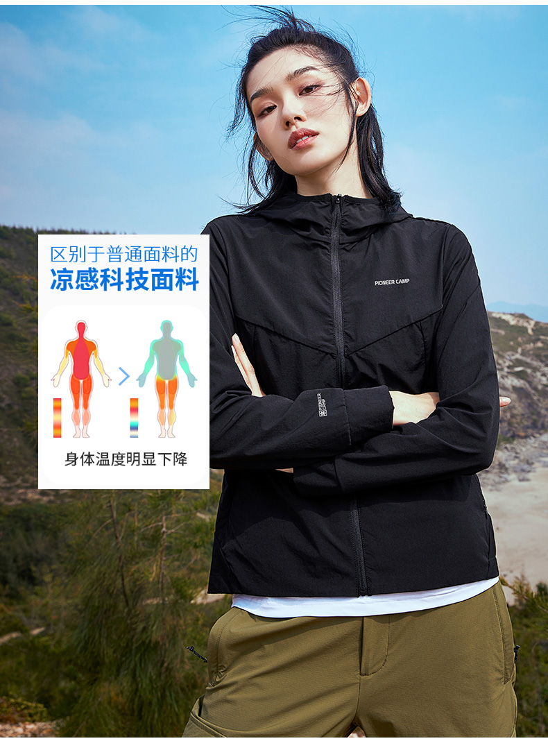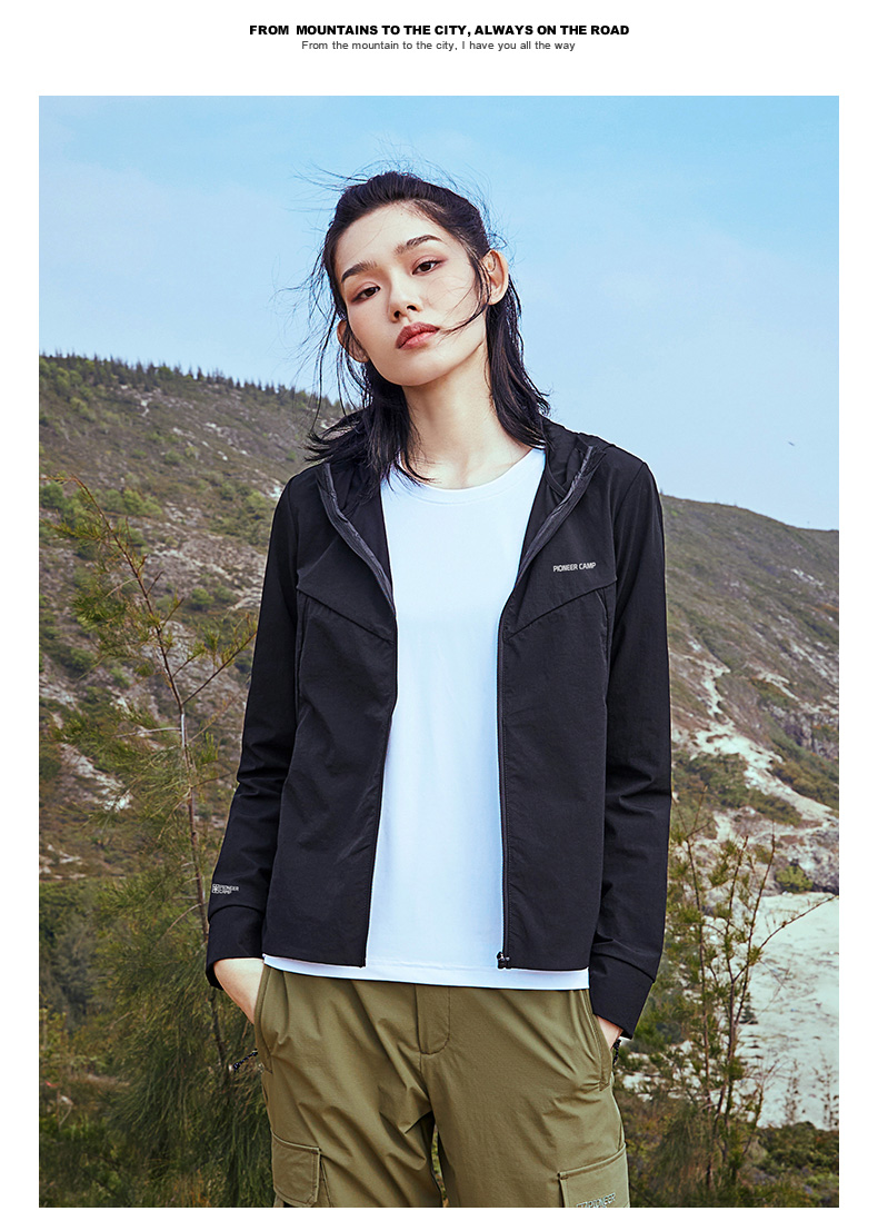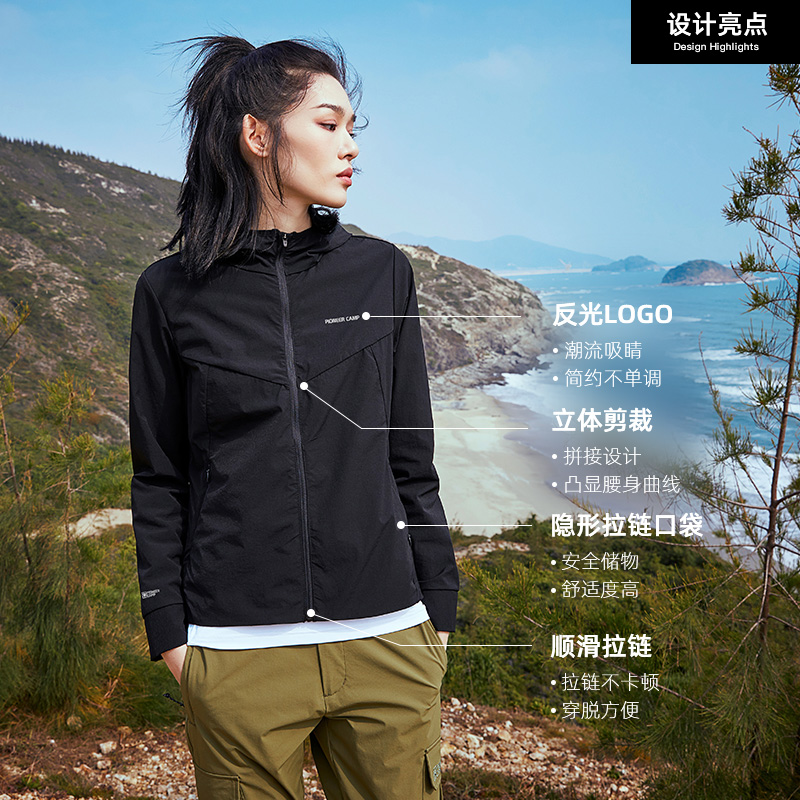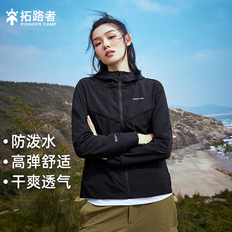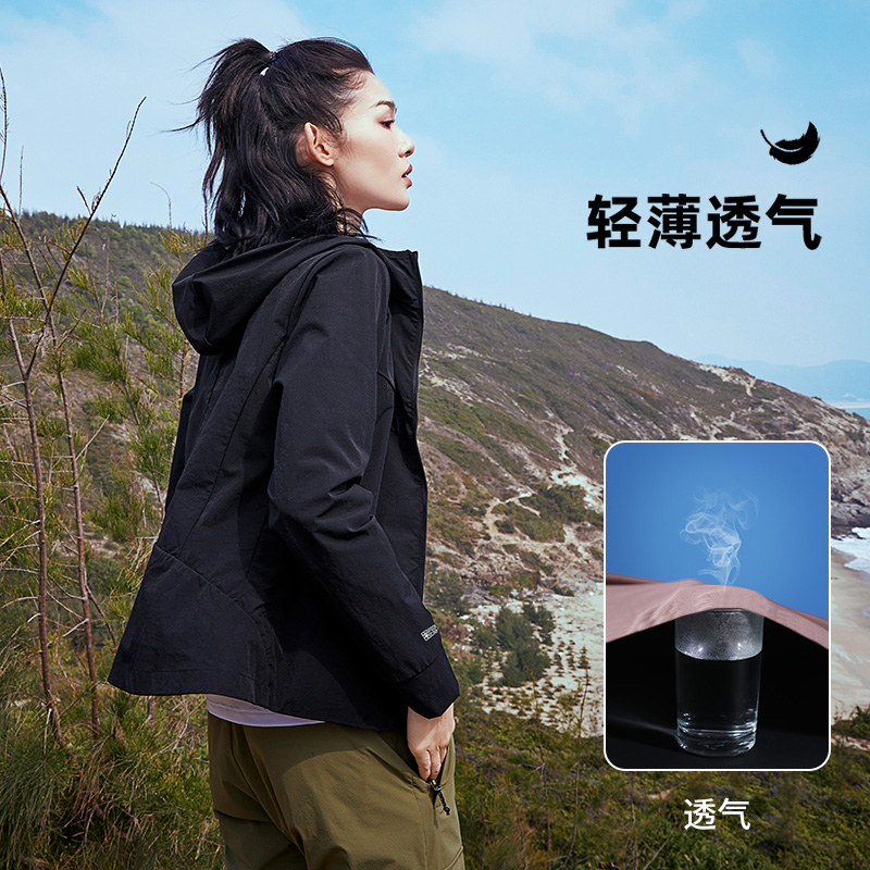 拓路者戶外2023新款秋季運動外套女黑色彈力薄款春秋款快乾登山服