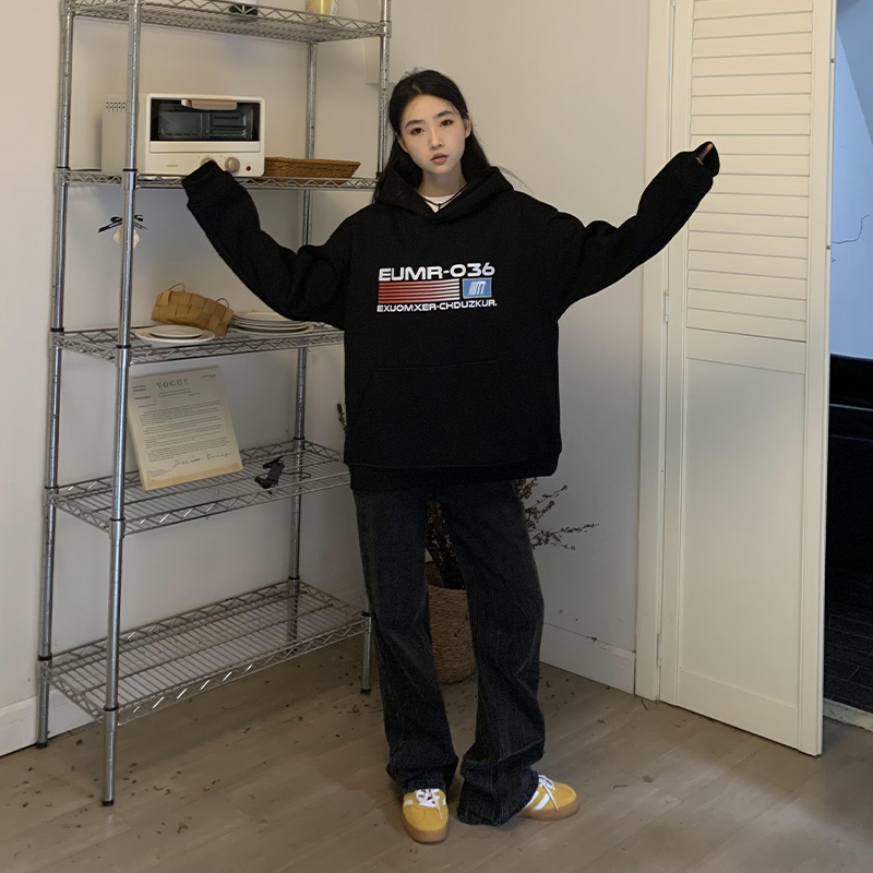 橘子樹在哪兒重磅美式復古連帽運動衫女秋季寬鬆休閒百搭機車風外套