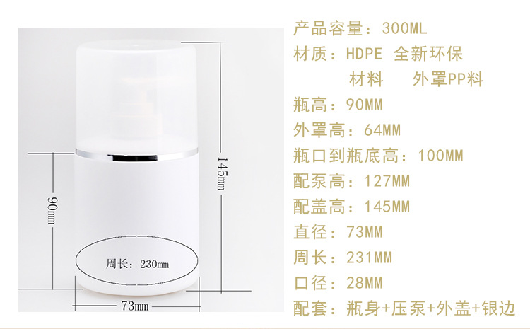 厂家现货销售300ML院装PE塑料乳液瓶化妆品包装空瓶鸭嘴按压瓶