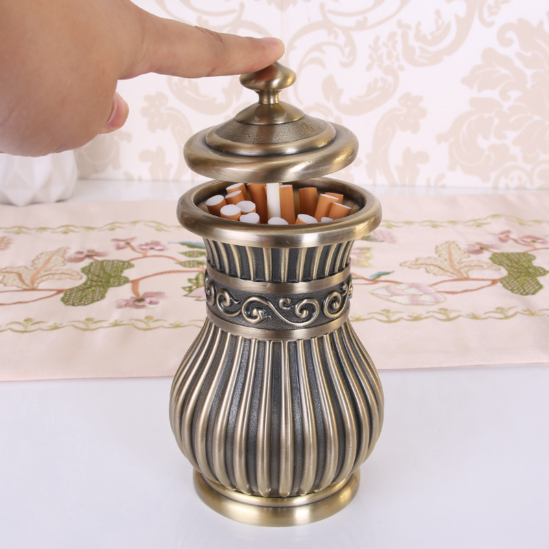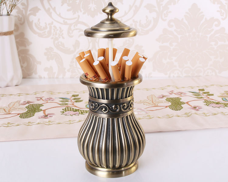 金属创意欧式复古烟盒台面自动高档卷烟筒豪华男士个性礼品花瓶