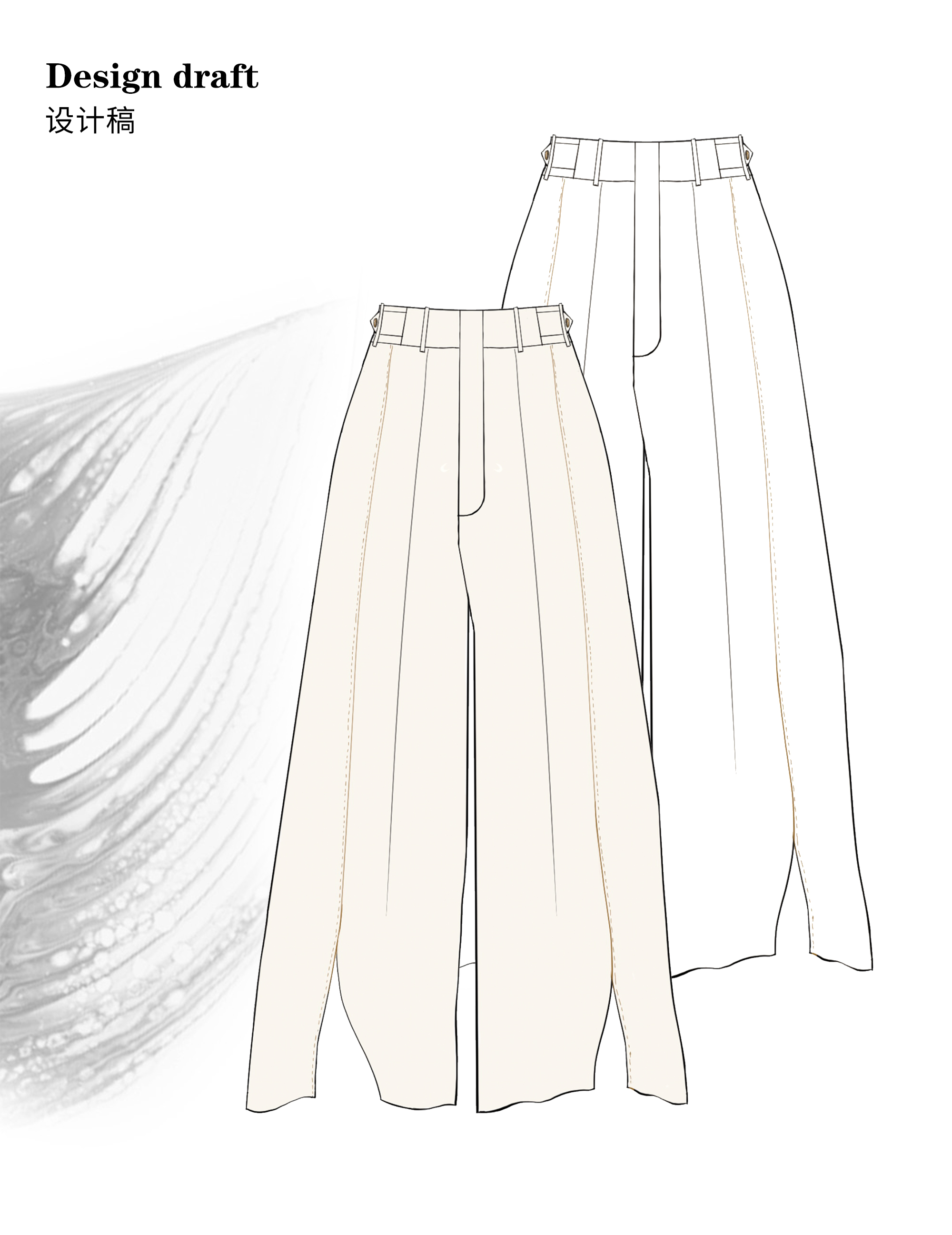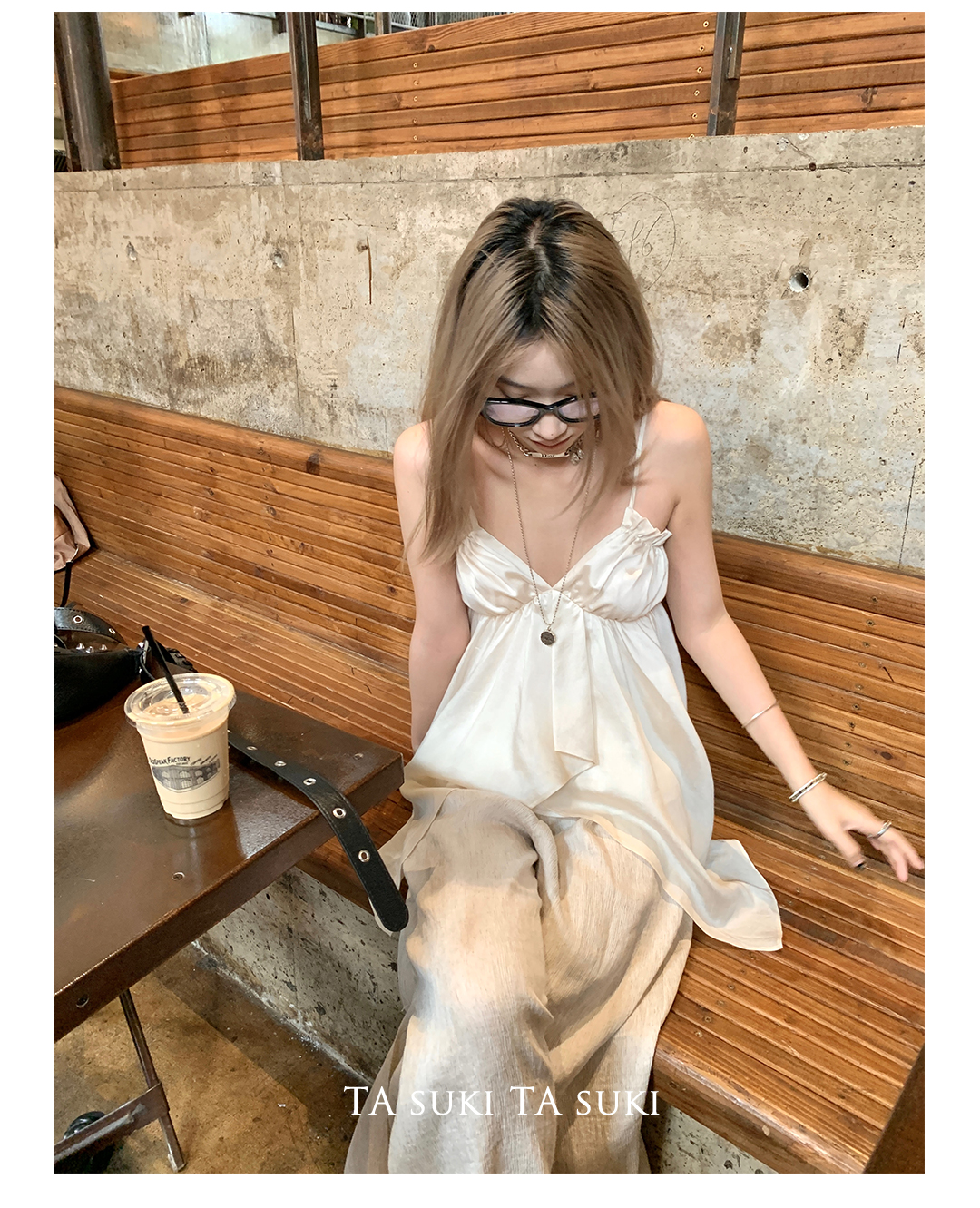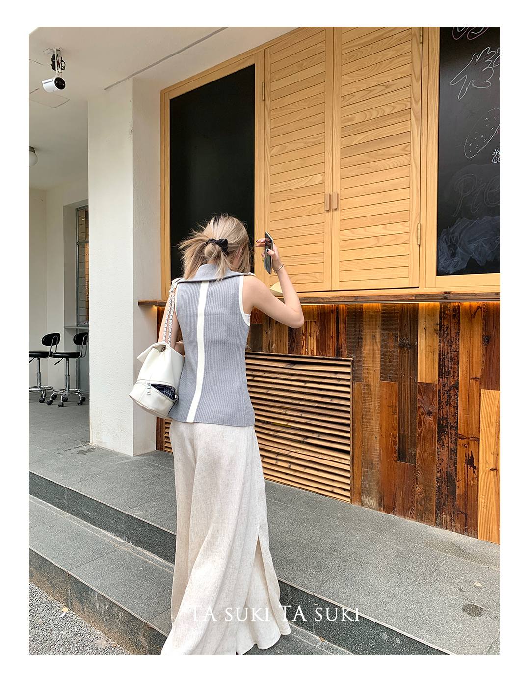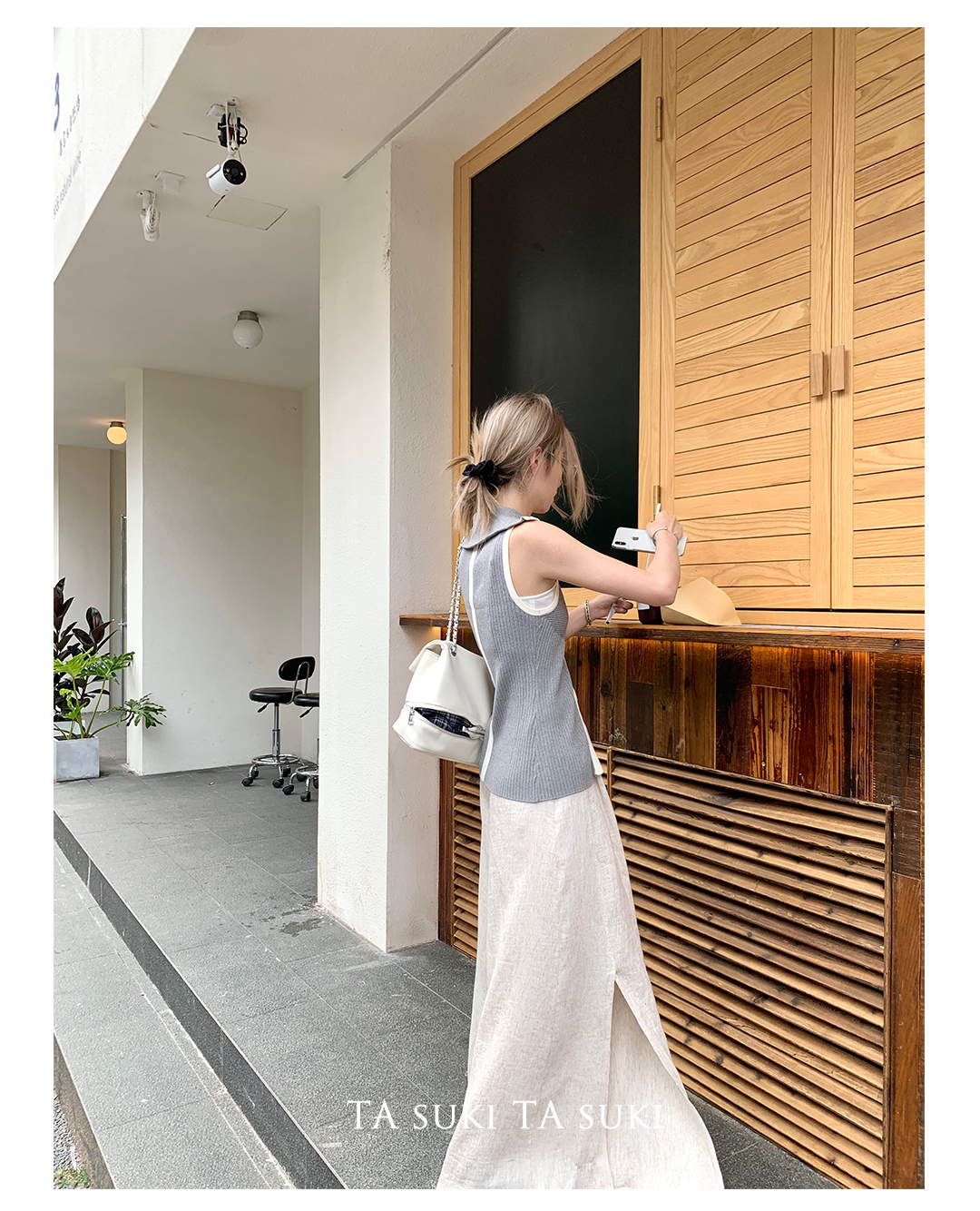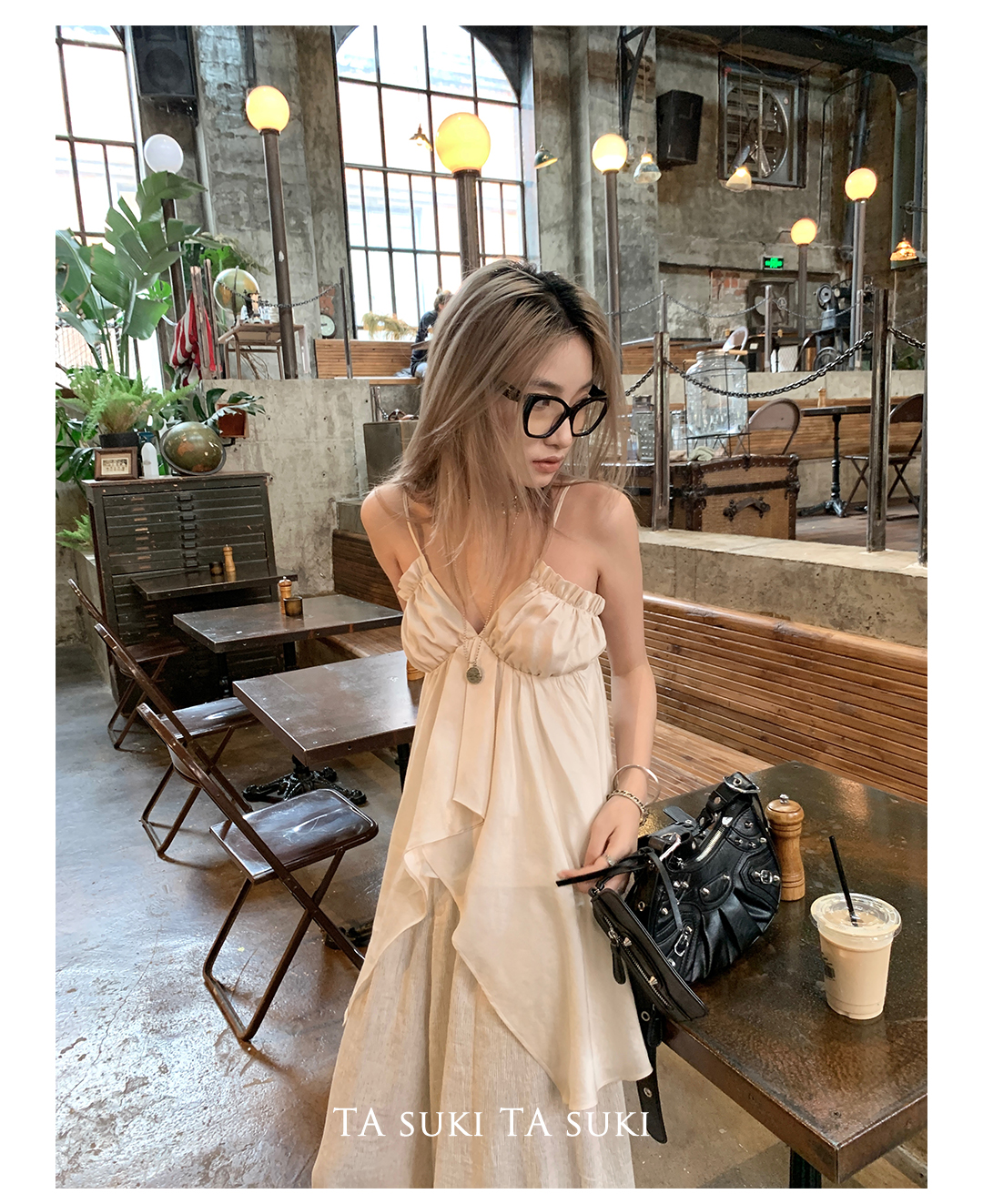 TA suki 夏季杏色 亞麻感闊腿褲高腰顯瘦休閒慵懶風設計感拖地褲