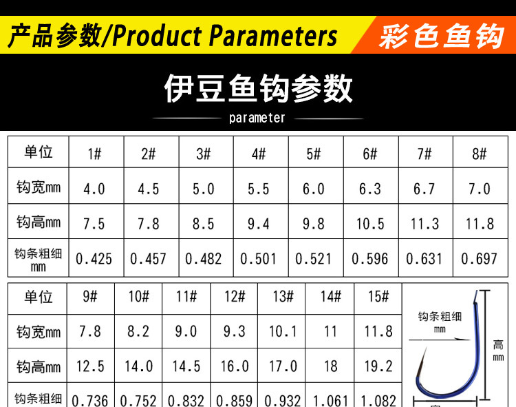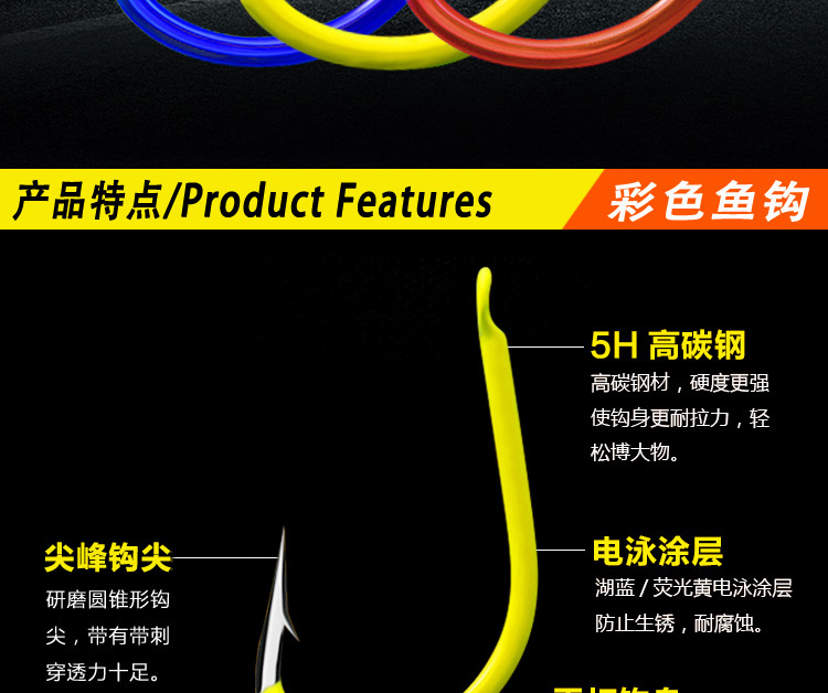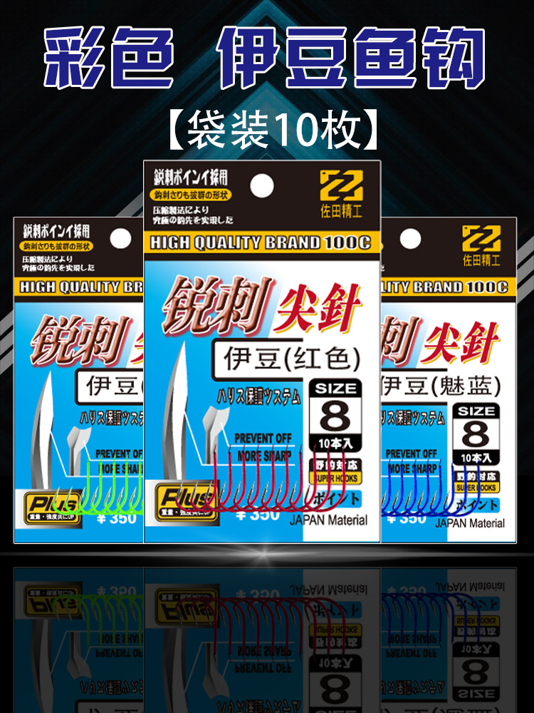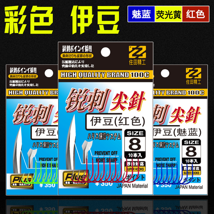 袋装彩色伊豆 荧光黄魅蓝红色日本有倒刺垂钓鱼钩渔具批发