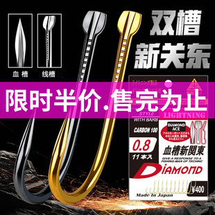 霸刀新关东线槽血槽双槽三角牙无倒刺竞技黑坑散装垂钓鱼钩批发