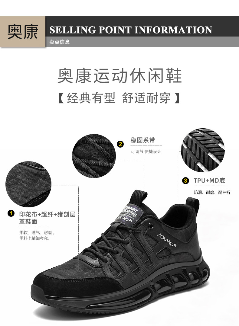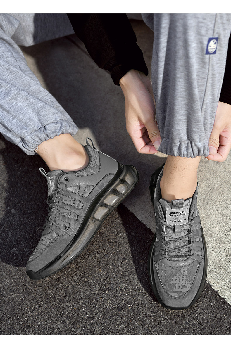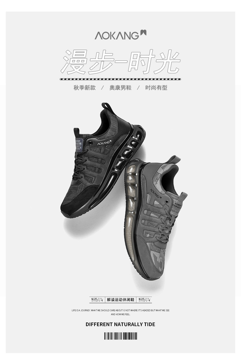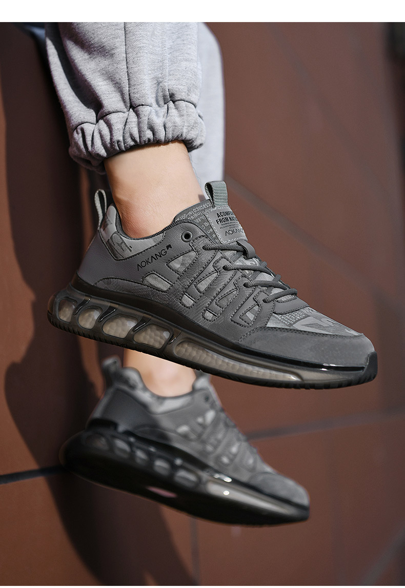 奧康2023年秋季新款潮男士休閒舒適跑步鞋男厚底減震國潮運動男鞋