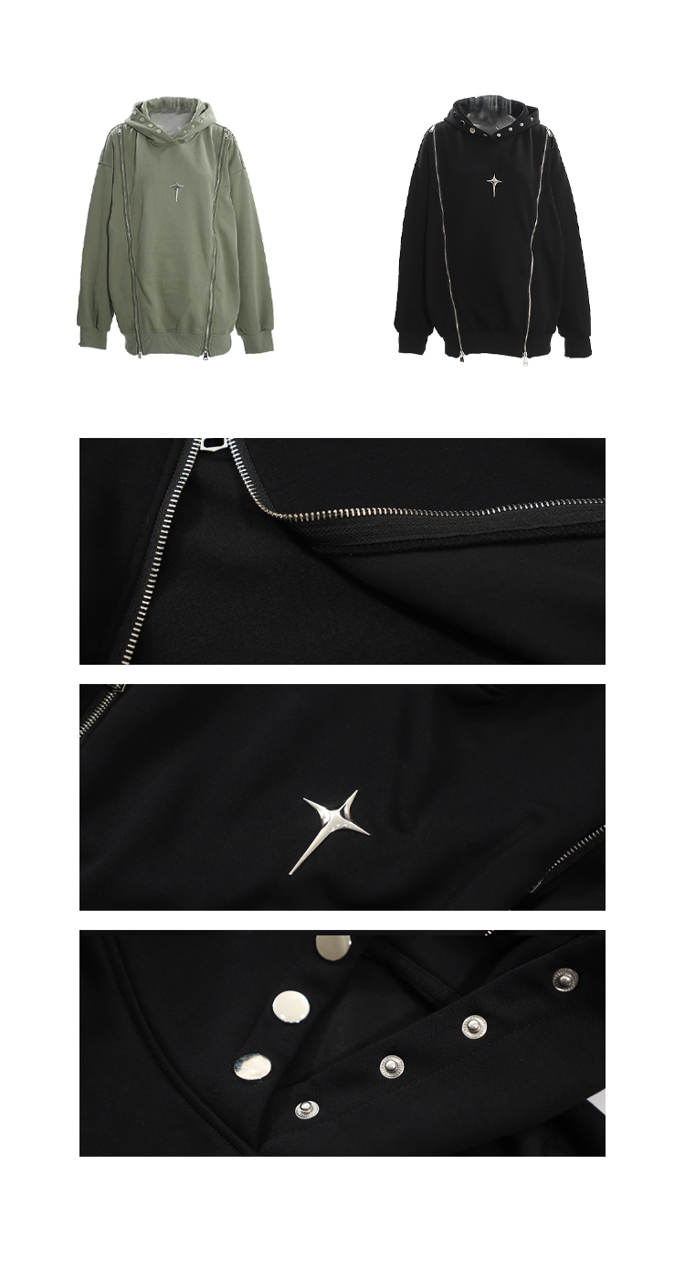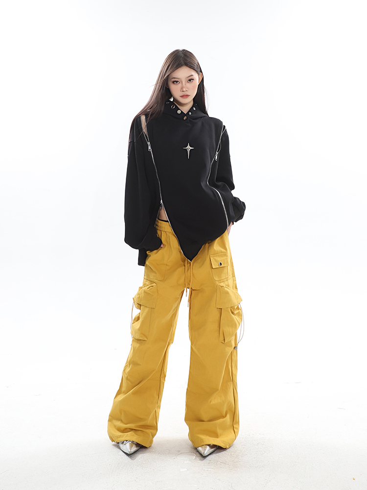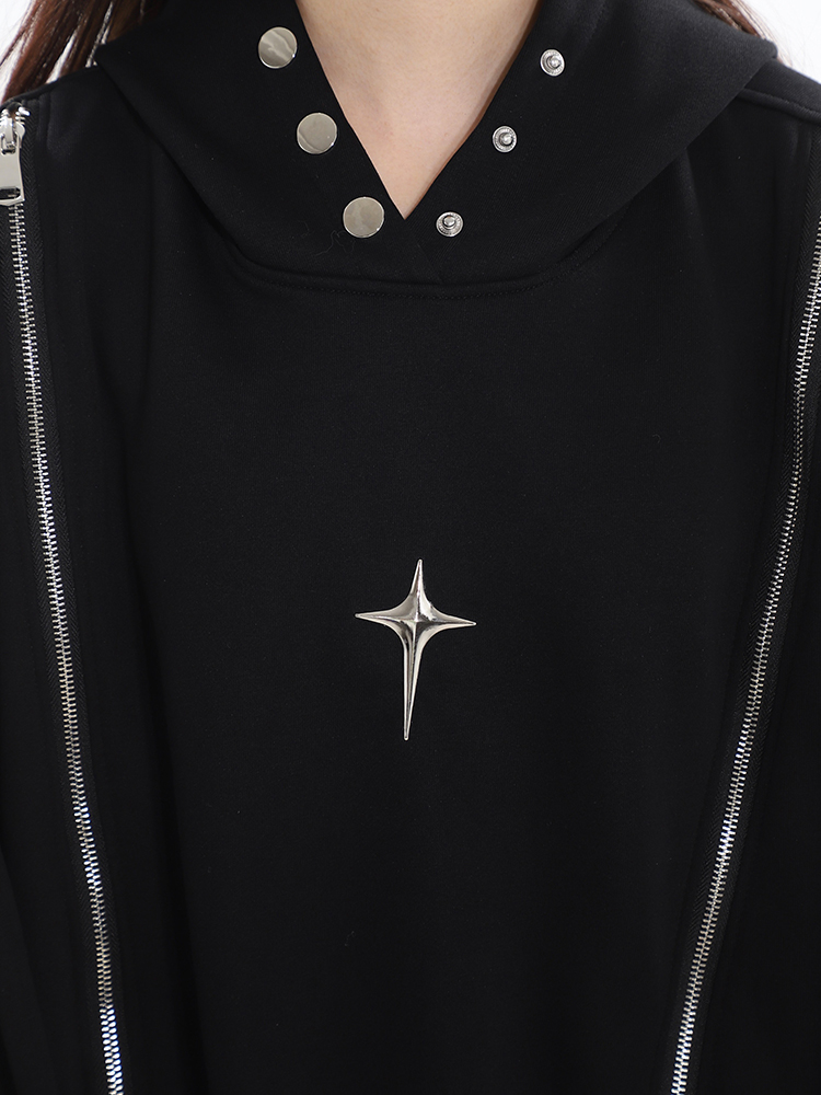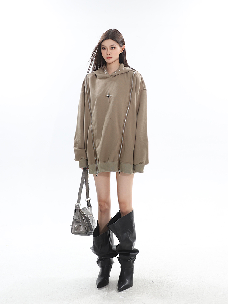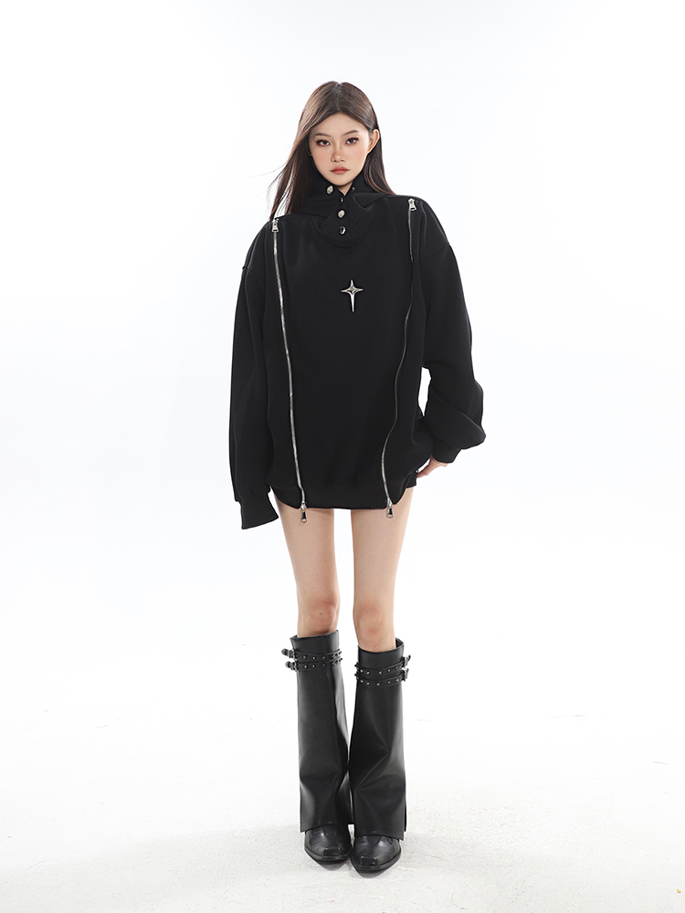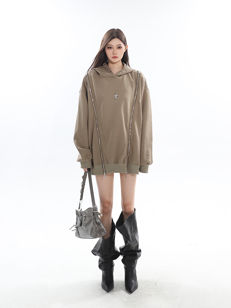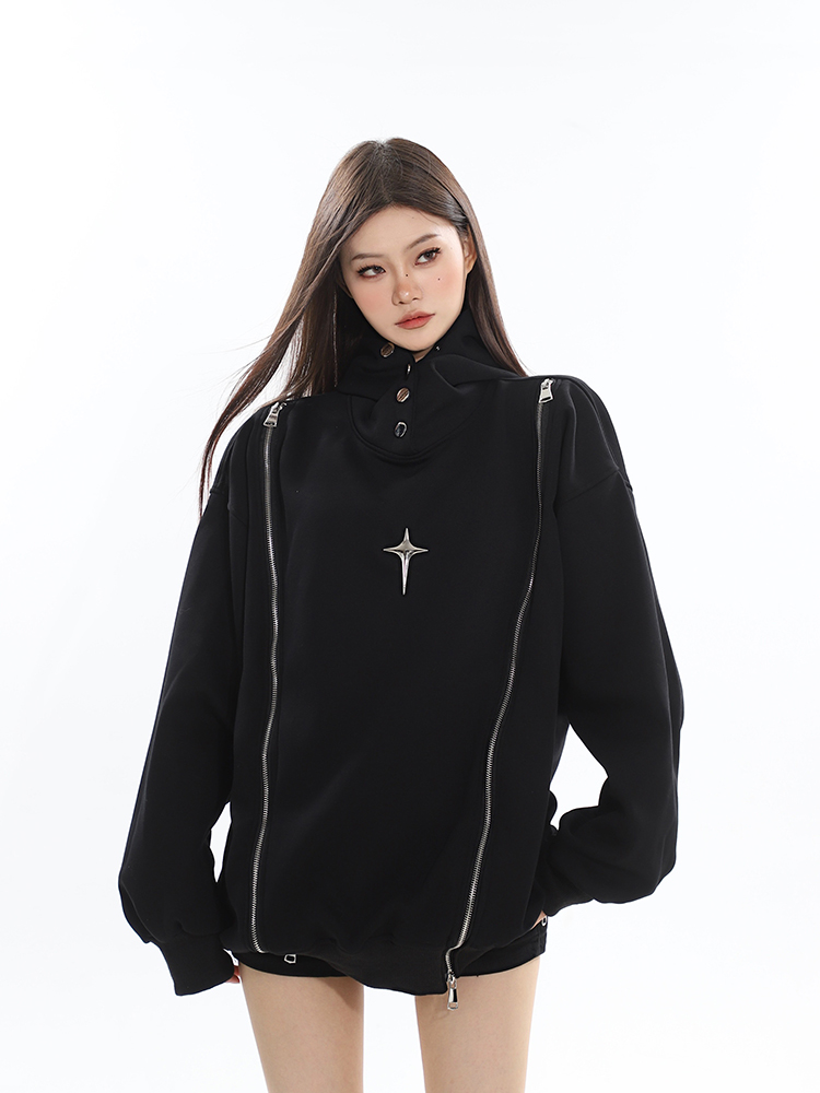 CCUP SAPCE 早秋新款小眾外套雙拉鍊鏤空帽衫設計感露肩連帽運動衫