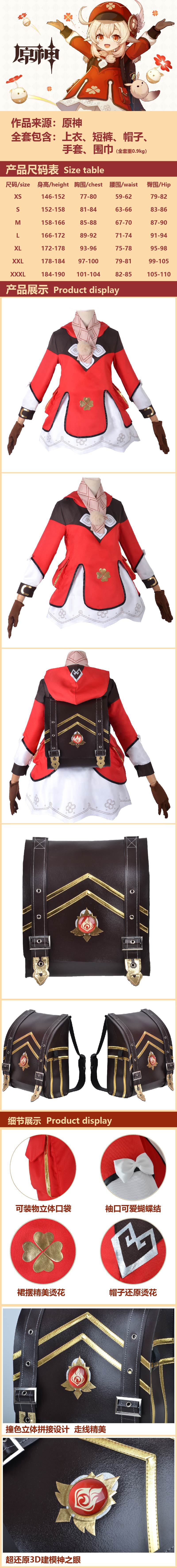 颜色 可莉全套服装,背包,可莉假发,嘟嘟可,可莉鞋子35-43码