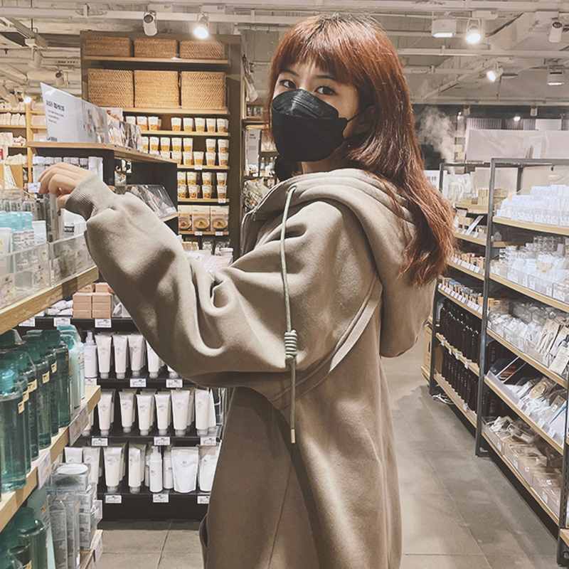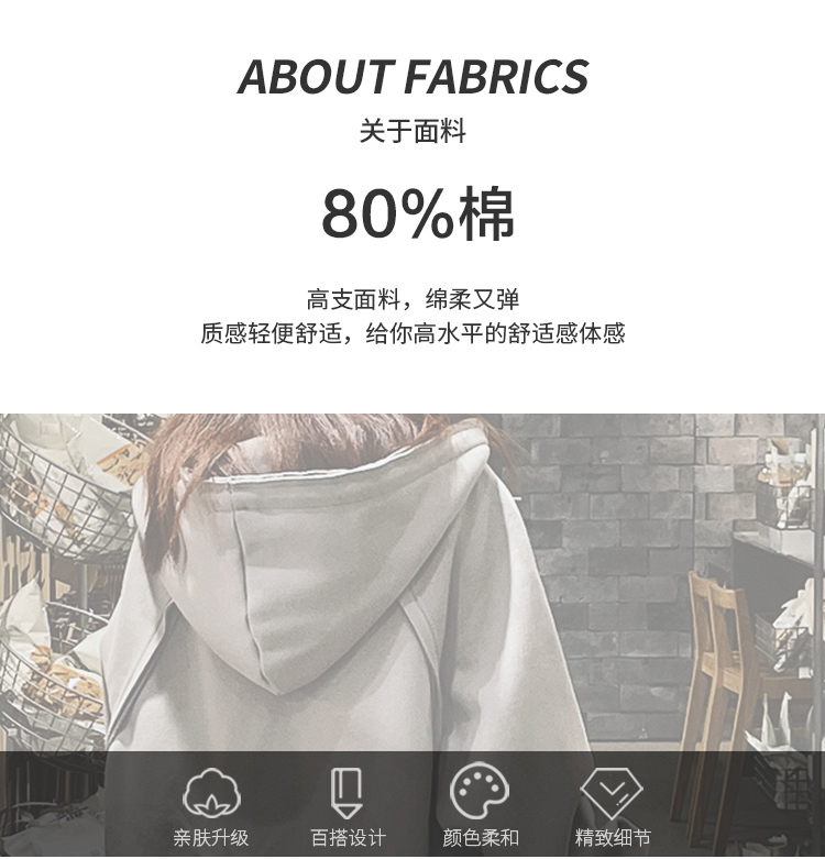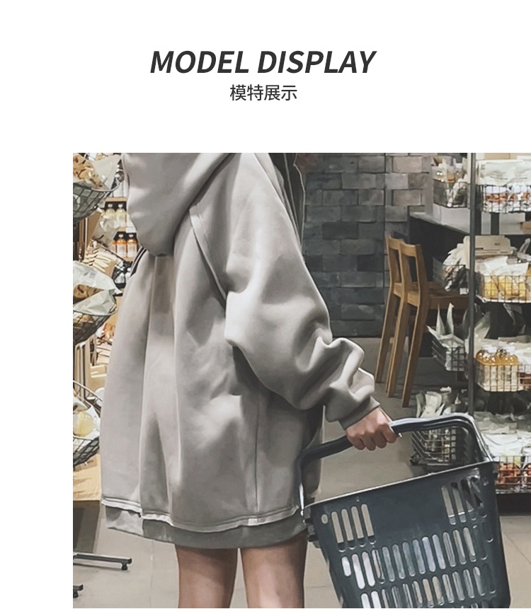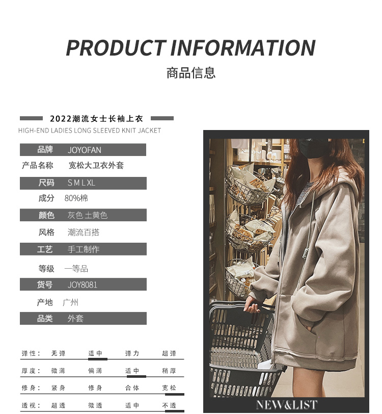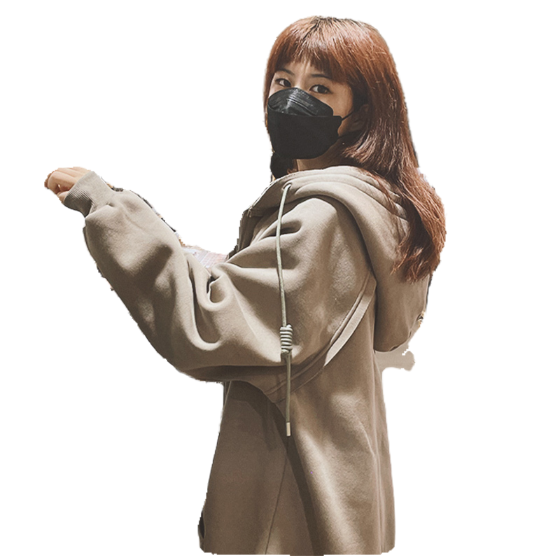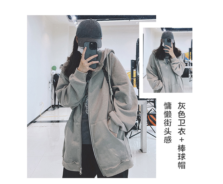 JOYOFAN連帽開衫拉鍊外套衛衣女2023秋季新加絨加厚寬鬆泥土灰色