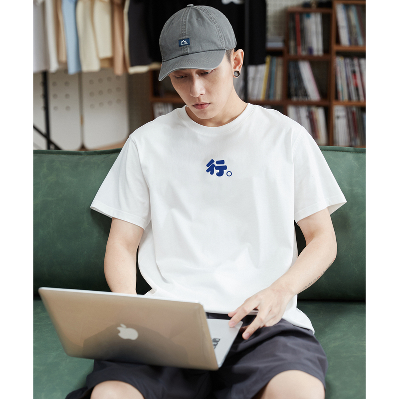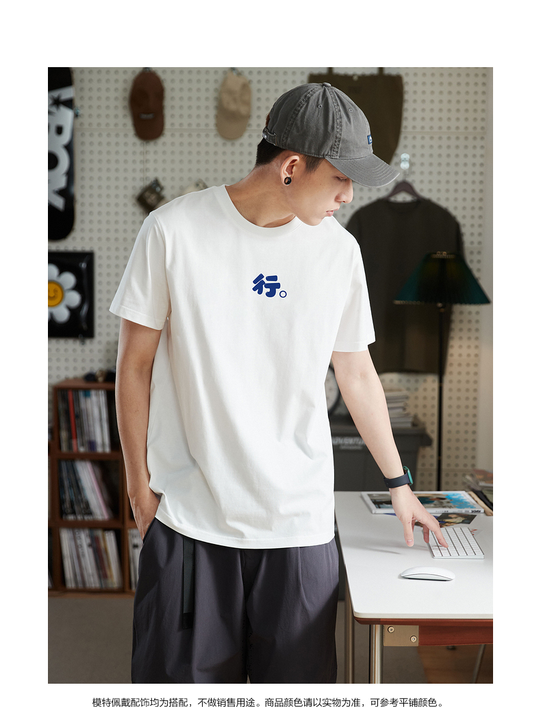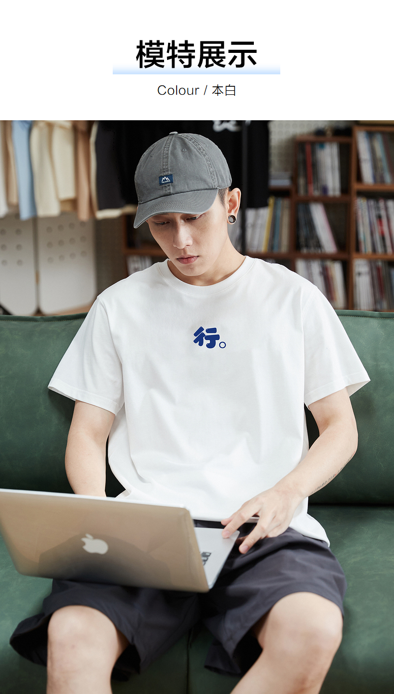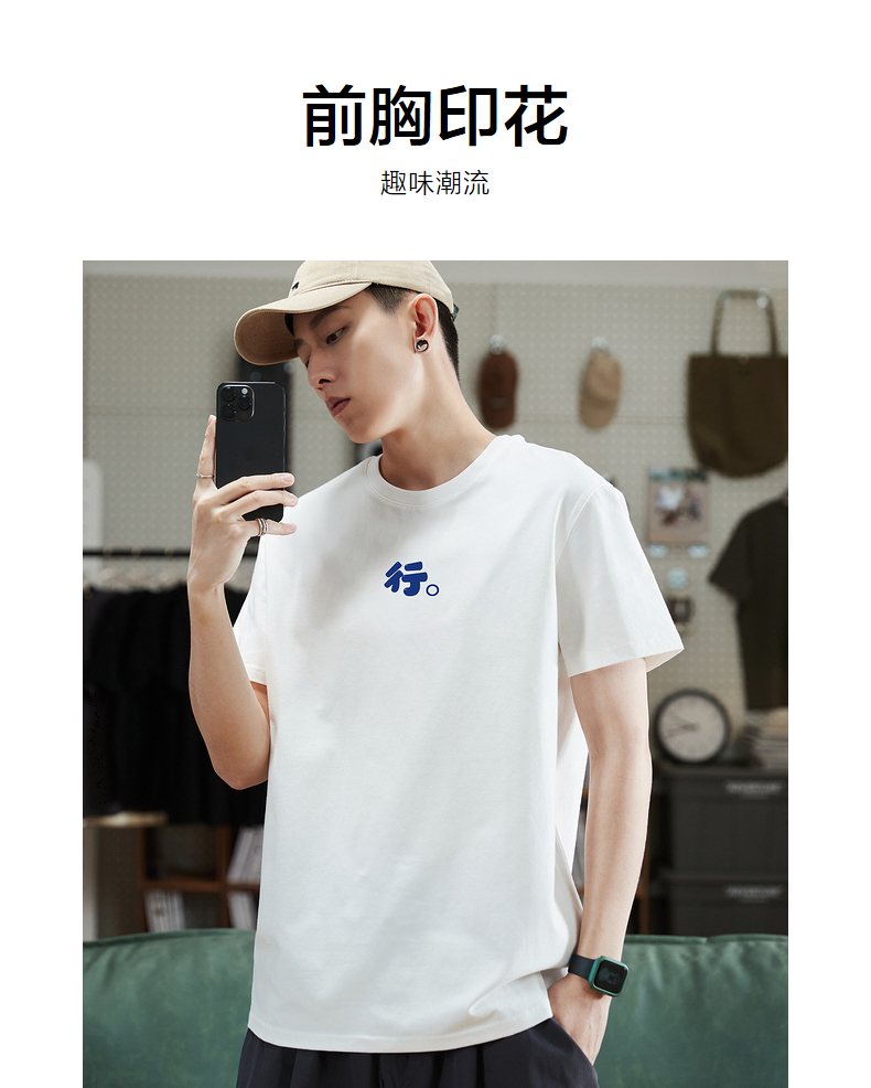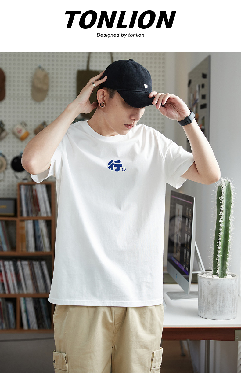 唐獅2023年夏季新款純棉短袖t恤男潮印花白色半袖休閒寬鬆T恤