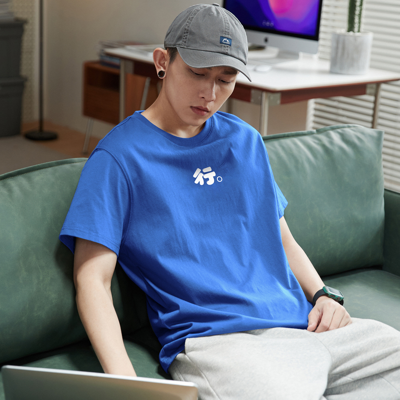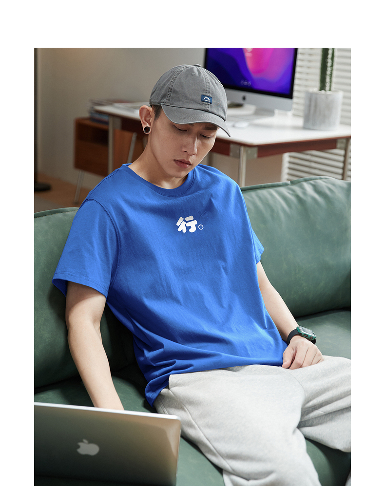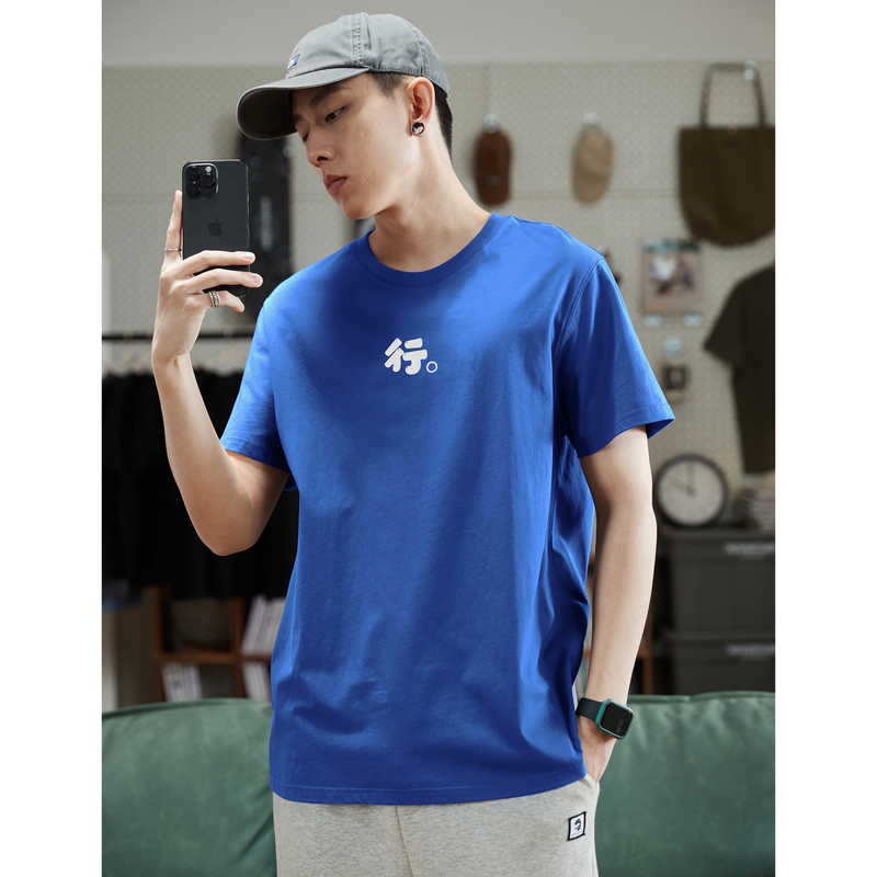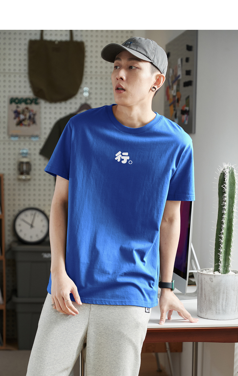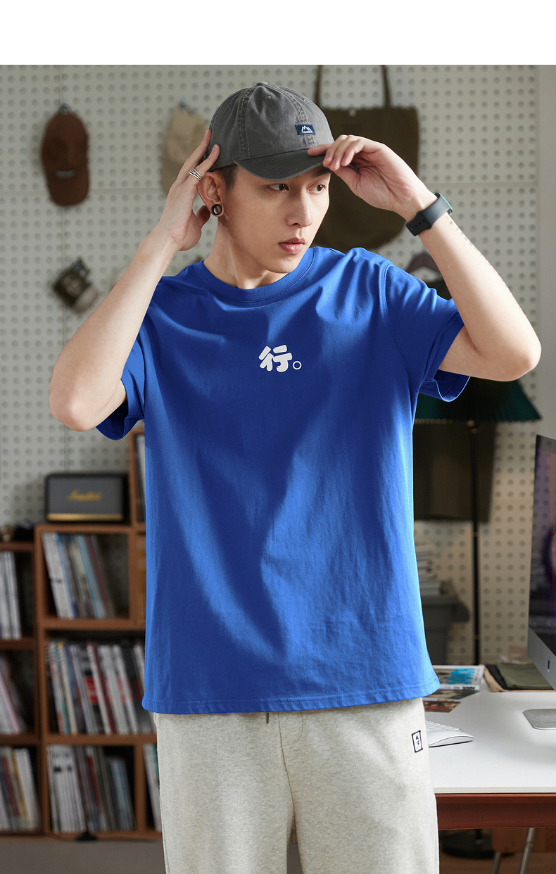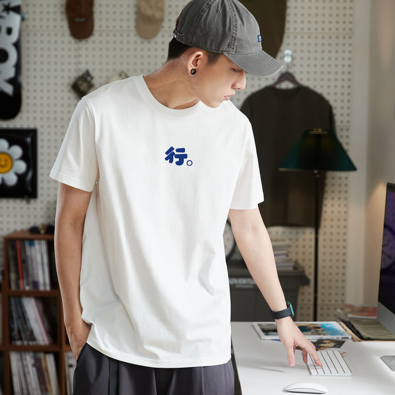 唐獅2023年夏季新款純棉短袖t恤男潮印花白色半袖休閒寬鬆T恤