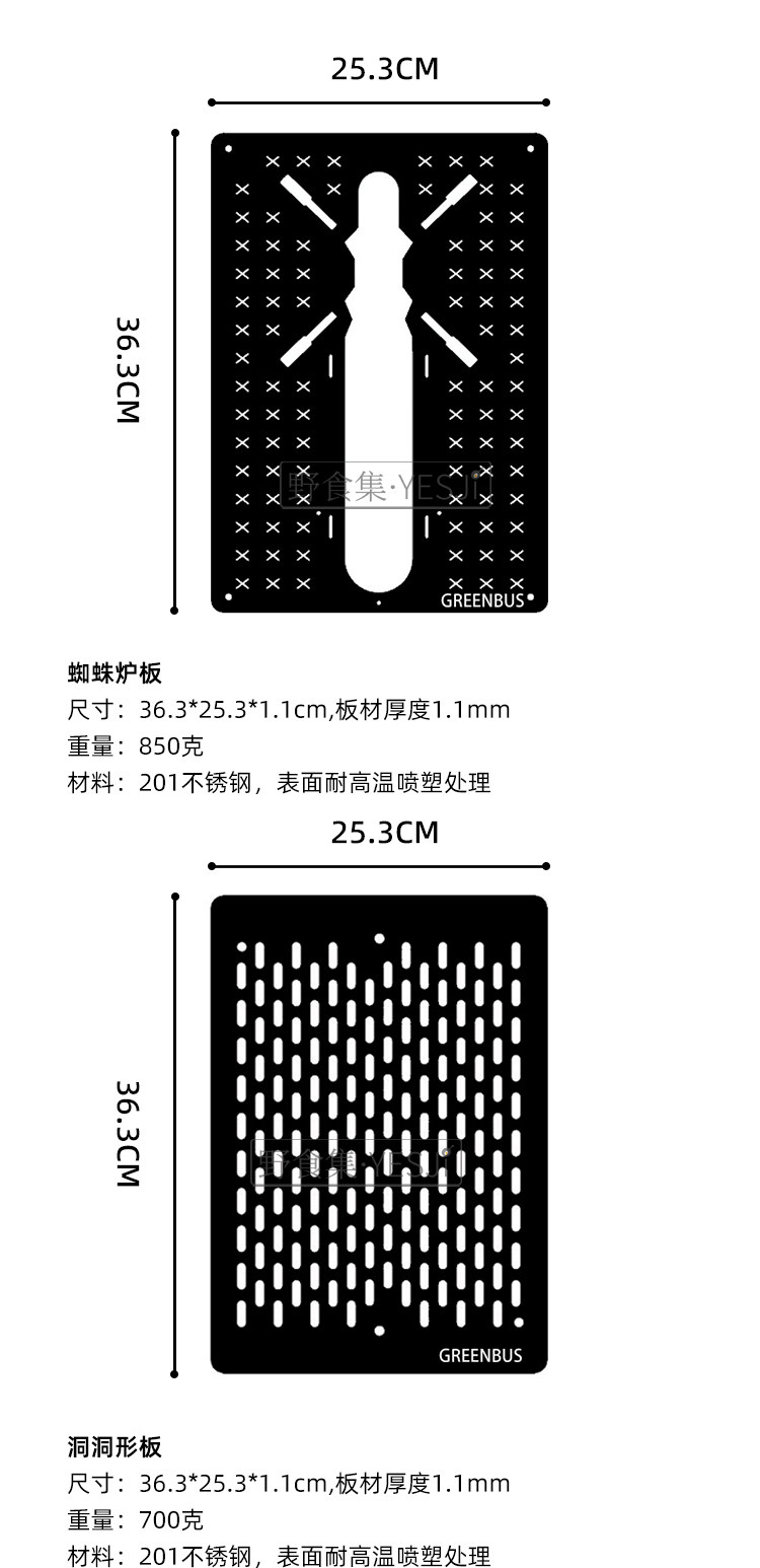 GREENBUS綠巴士不鏽鋼黑化IGT桌板柯曼鐵網桌連接板蜘蛛爐一單元