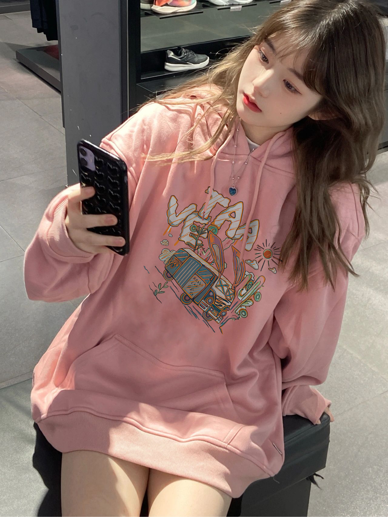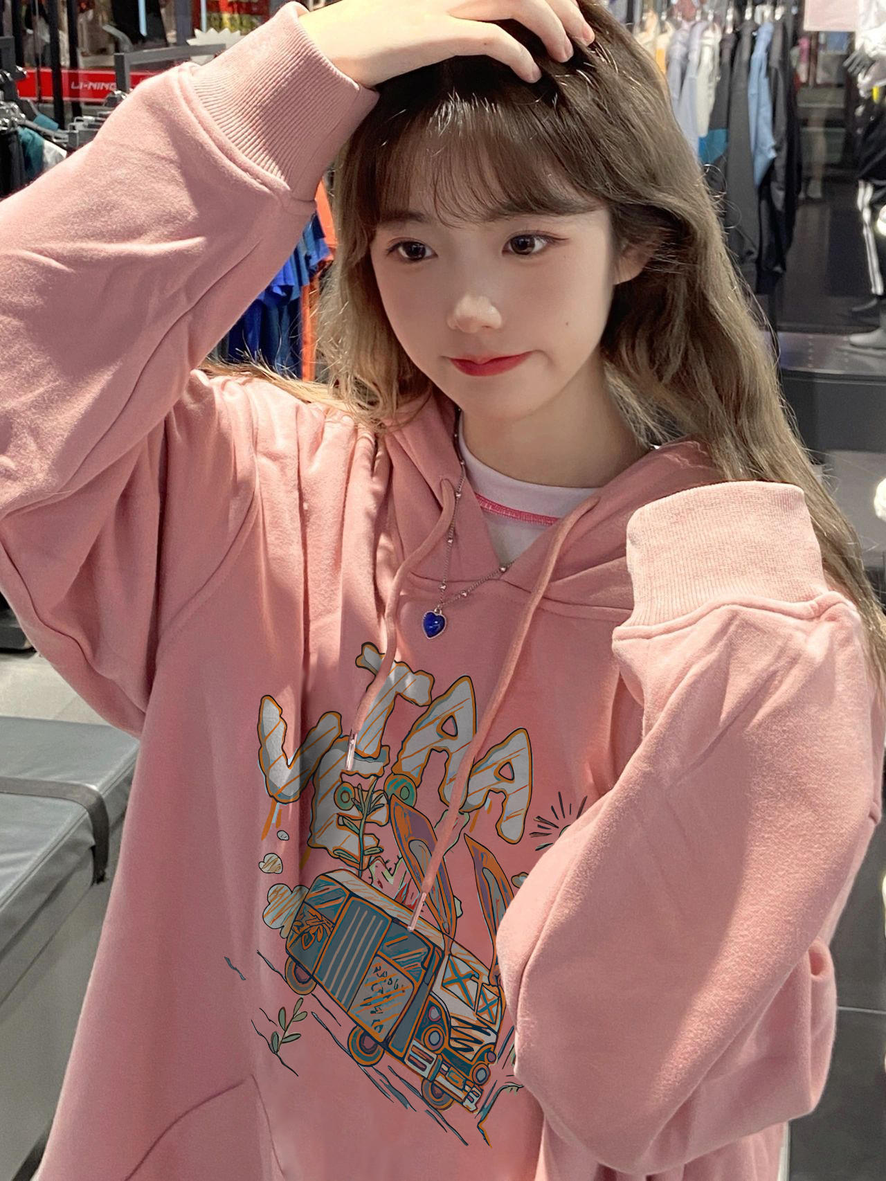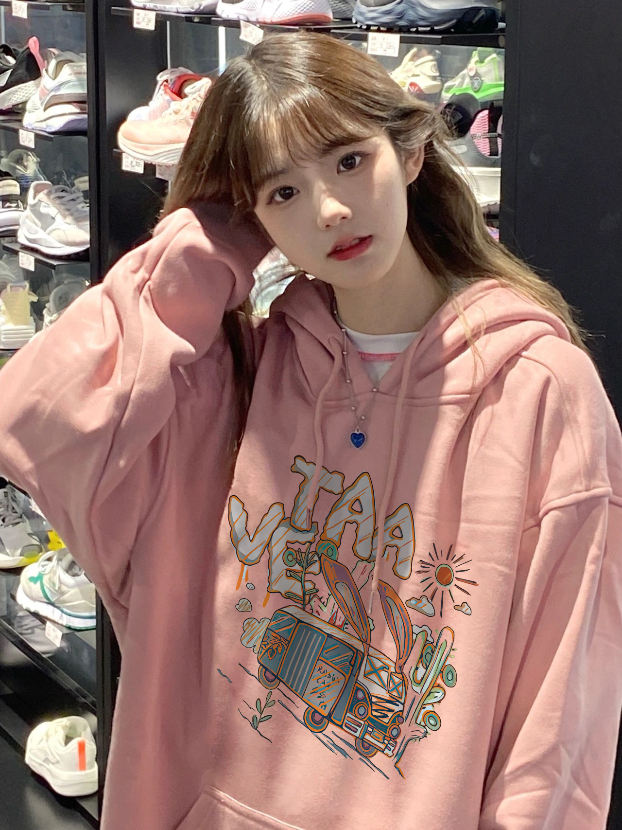 回头率超高!艺术生风格卫衣女韩系宽松百搭简约印花连帽上衣外套