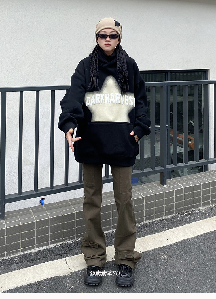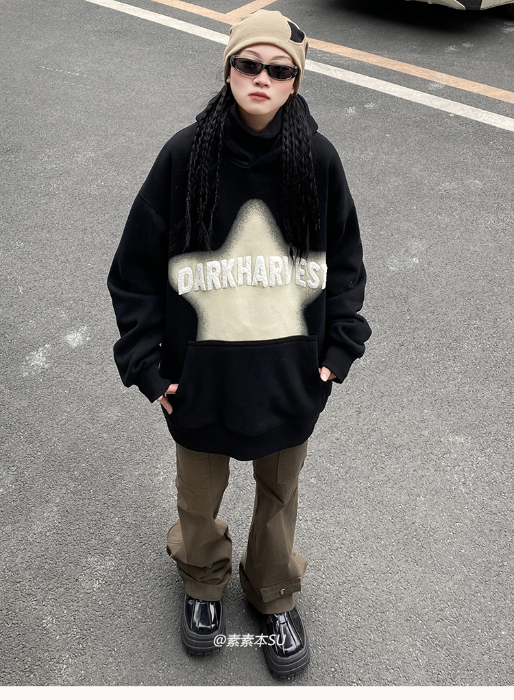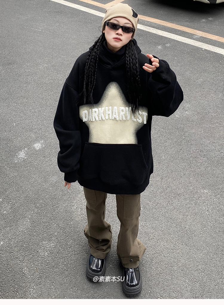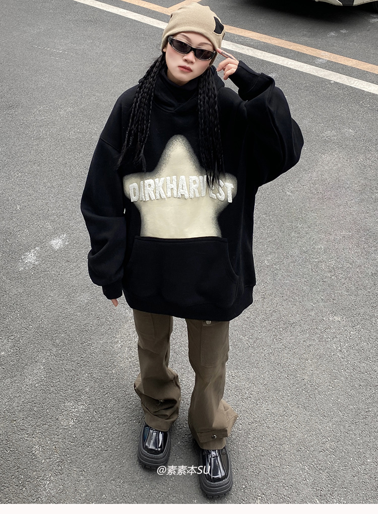 顏色分類 黑色,紅色,杏色,黑色加絨 oversize男女同款,紅色加絨 oversize男女同款,杏色加絨 oversize男女同款
