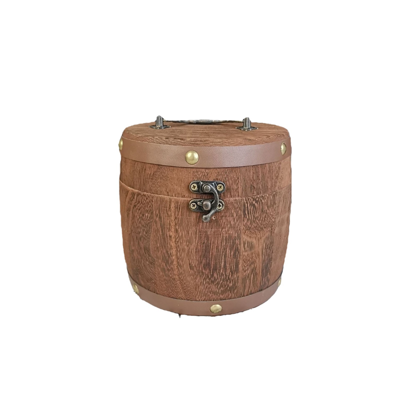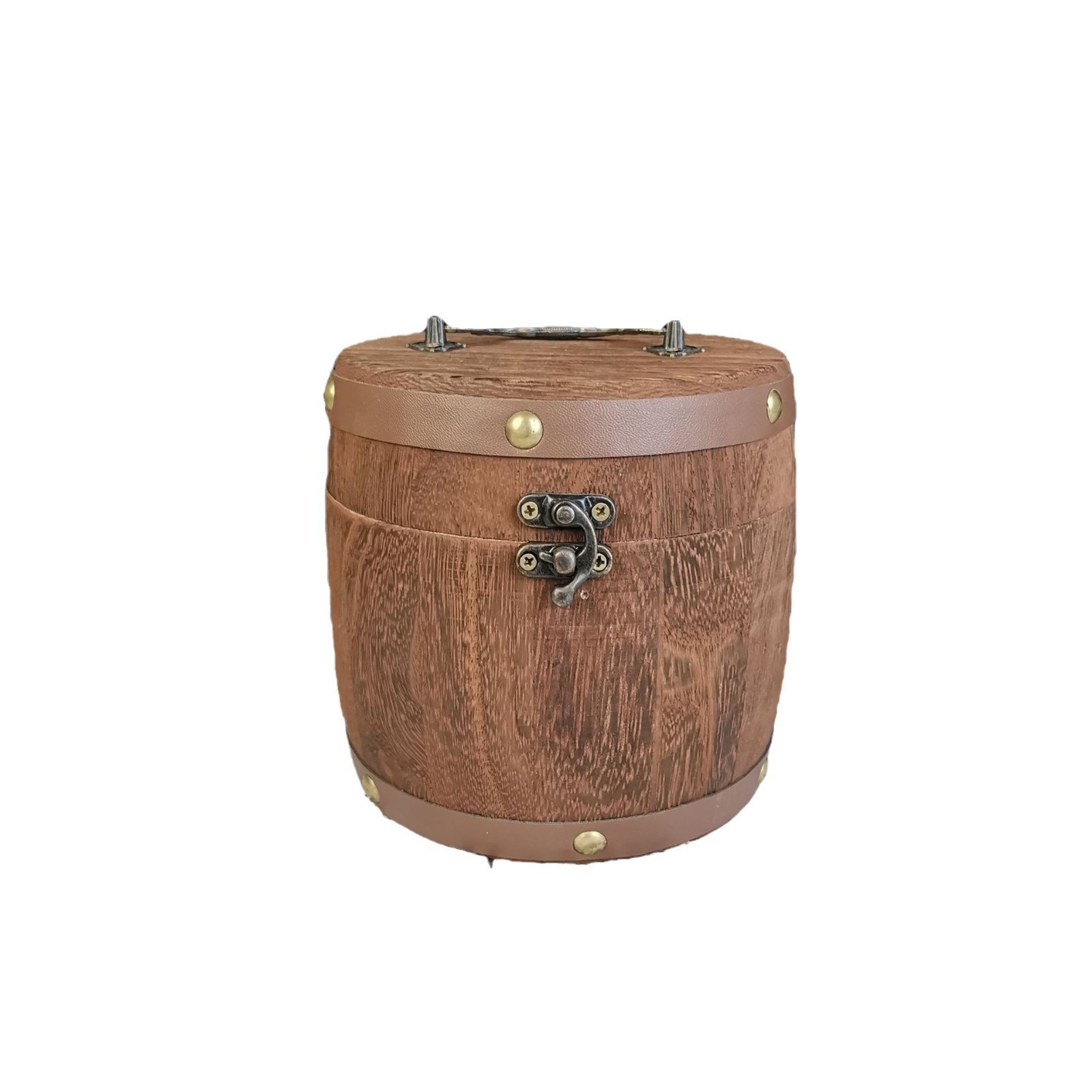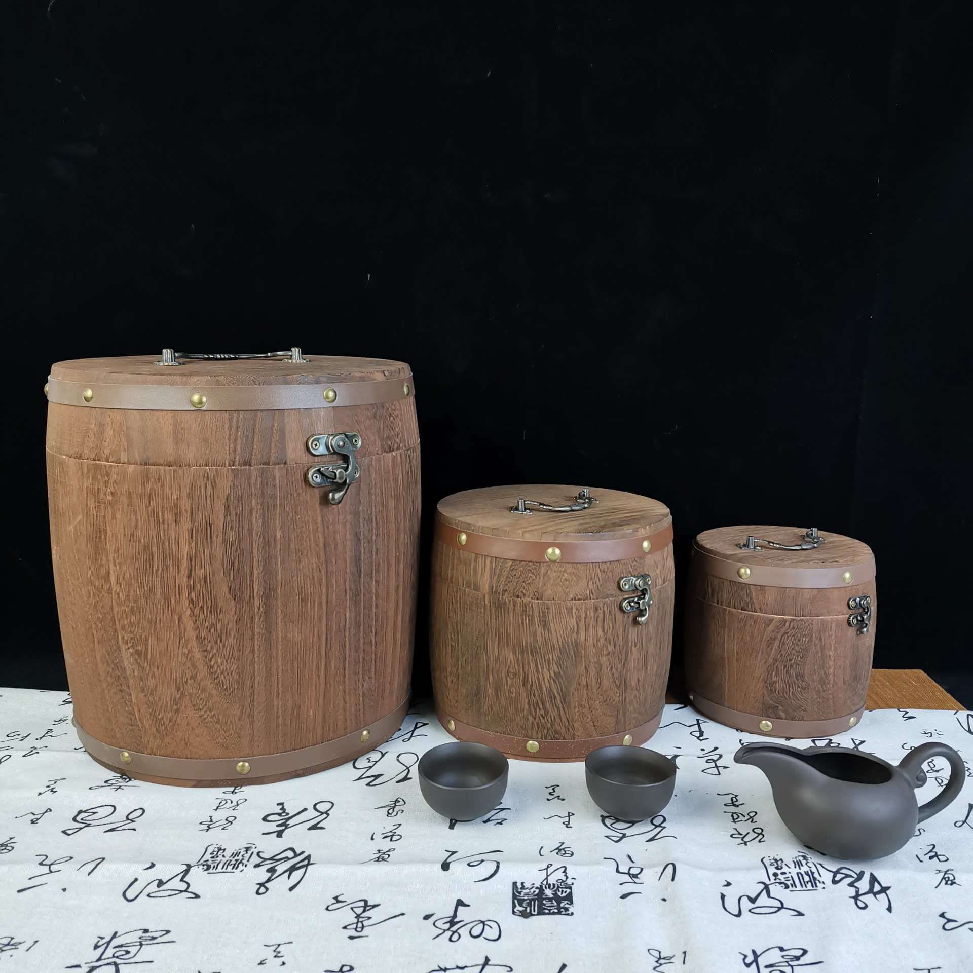 复古带锁炭烧木质茶叶桶家用圆形茶叶木桶可手提木制散茶叶储存桶