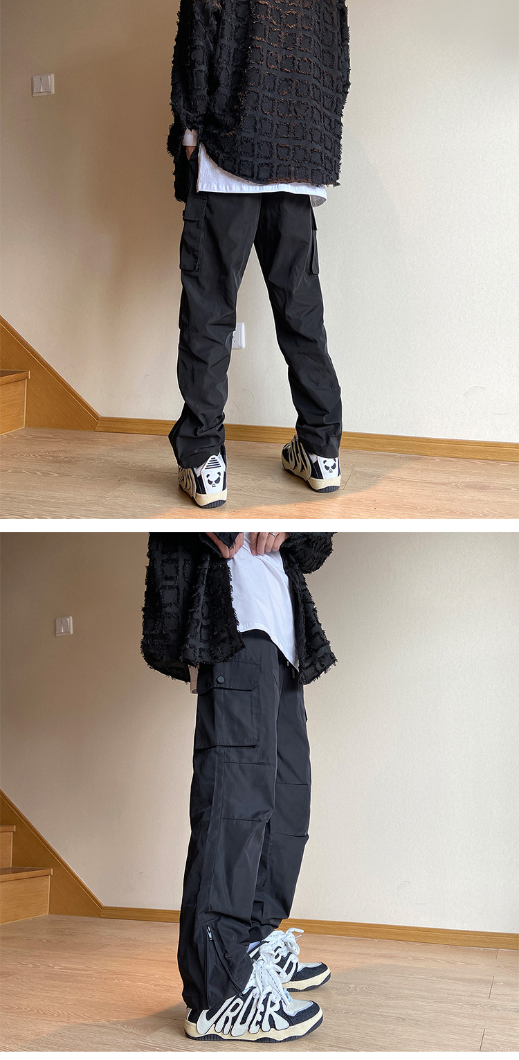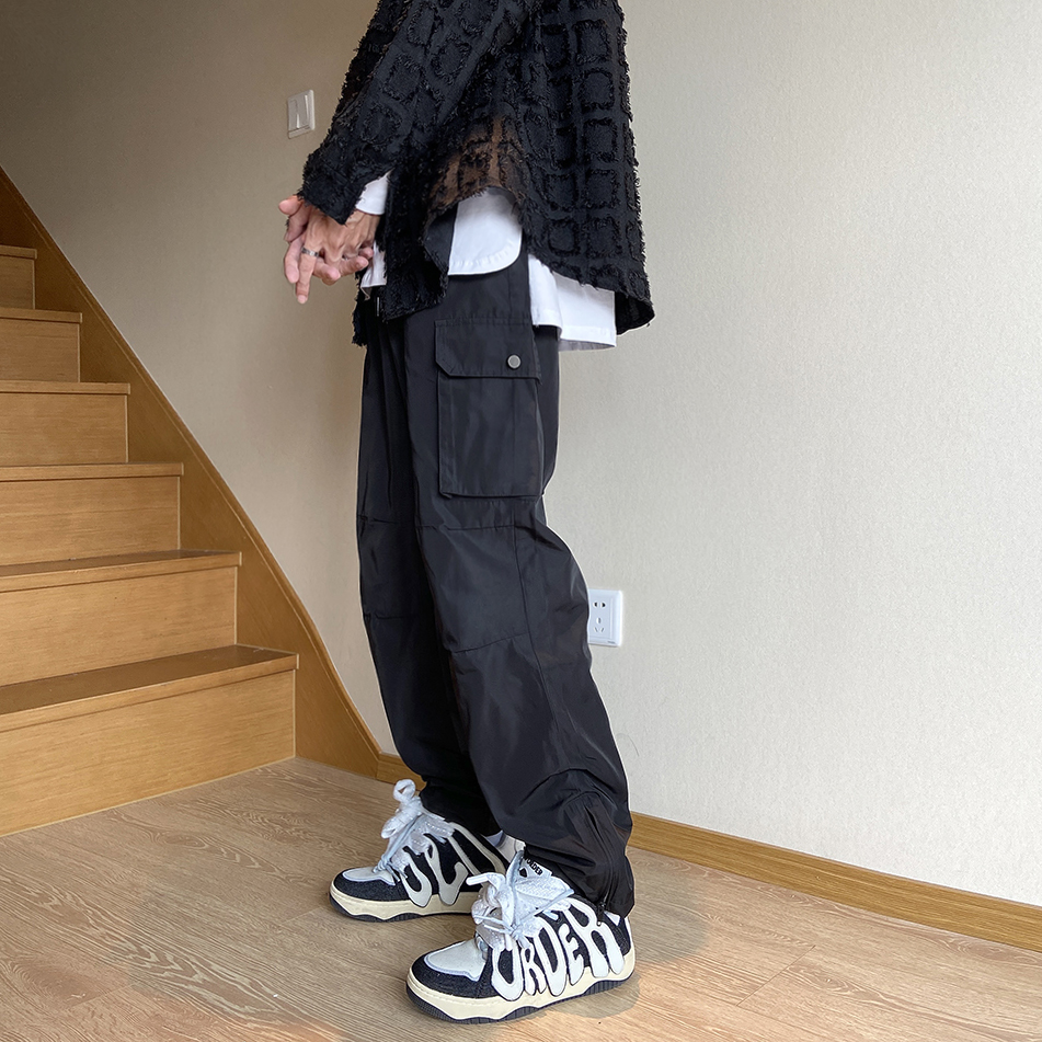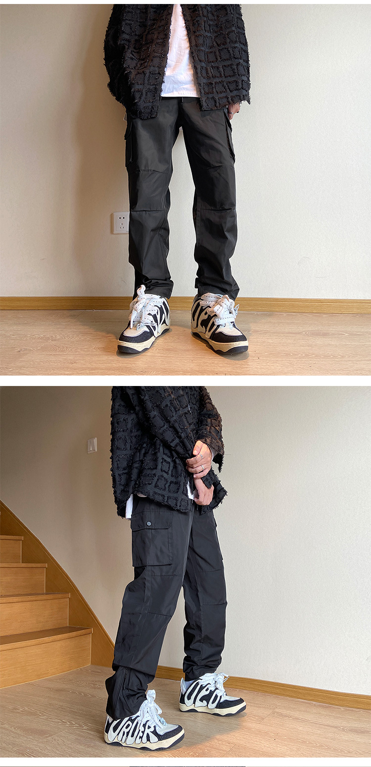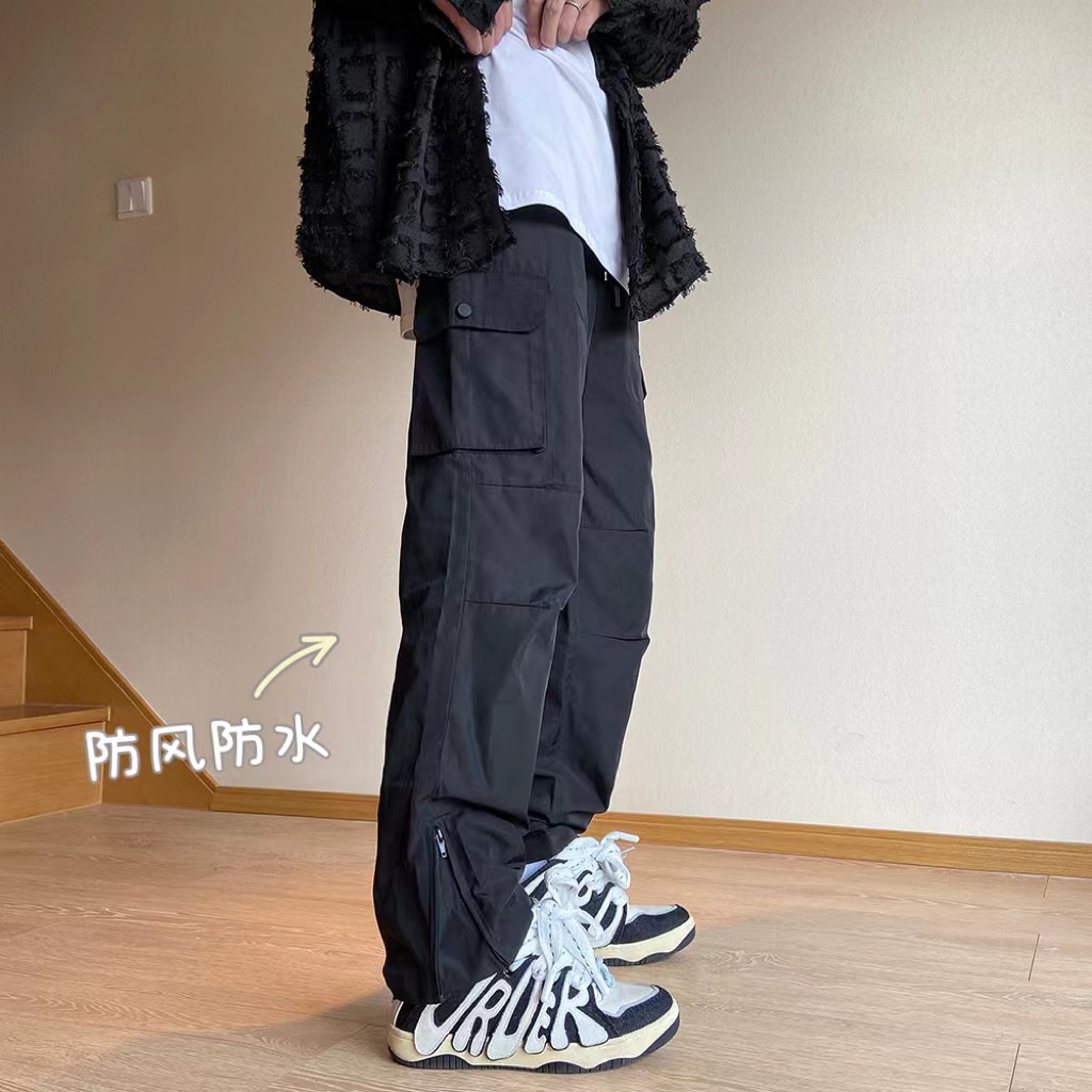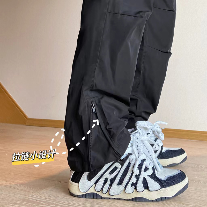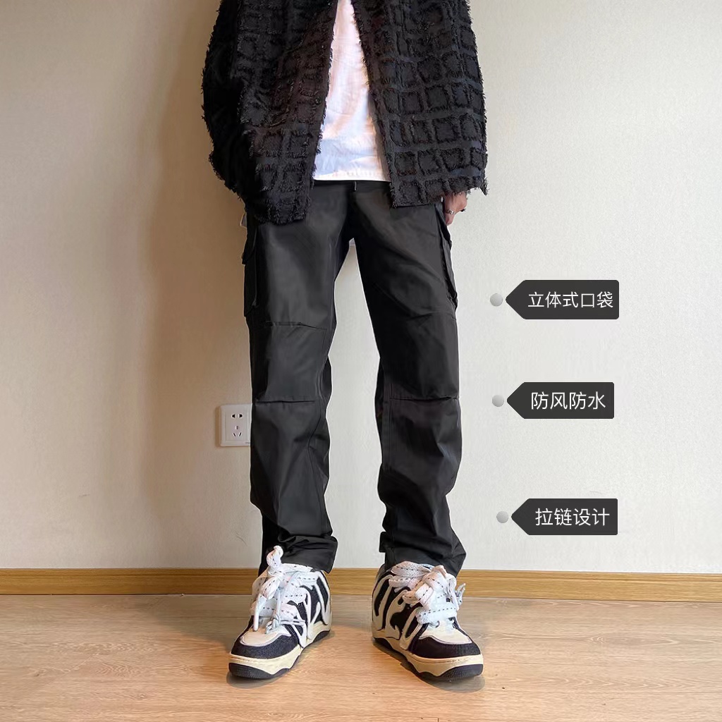 美式oversize褲子設計感軟殼機能衝鋒褲防風防水側邊拉鍊工裝褲潮