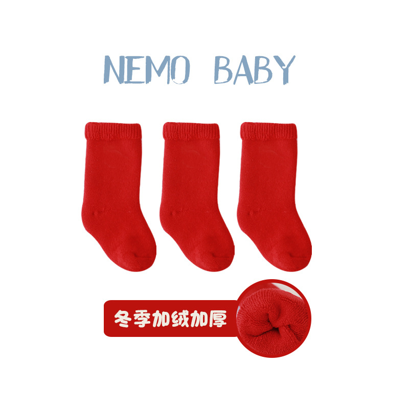 20秋冬新款婴儿袜毛圈加厚宝宝袜子松口本命年新年大红袜儿童袜子