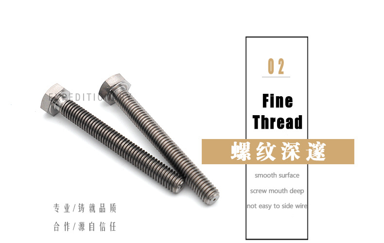 钛外六角产品严格按照DIN933标准生产,最小现货规格M2.5起均有现货供应。