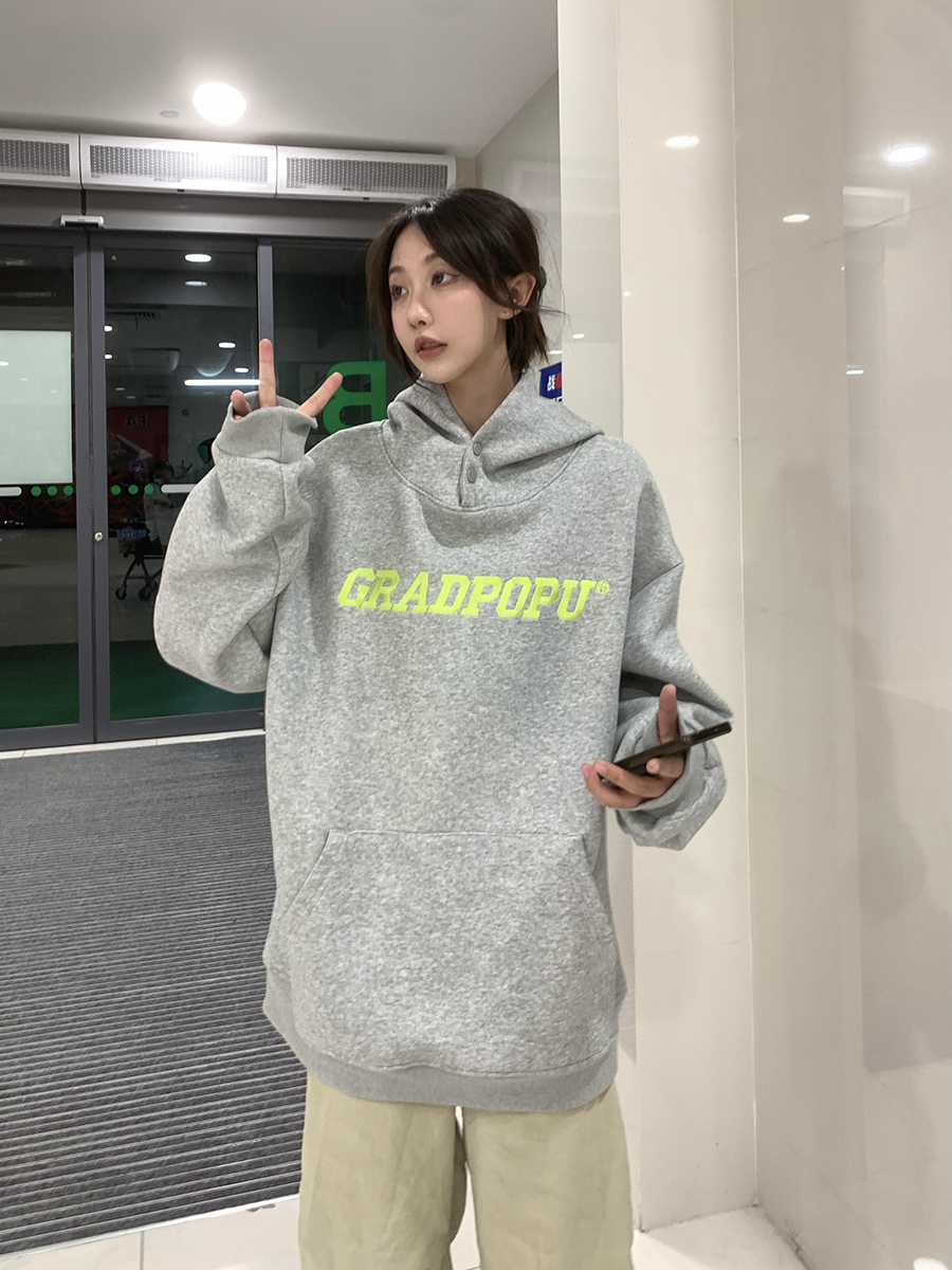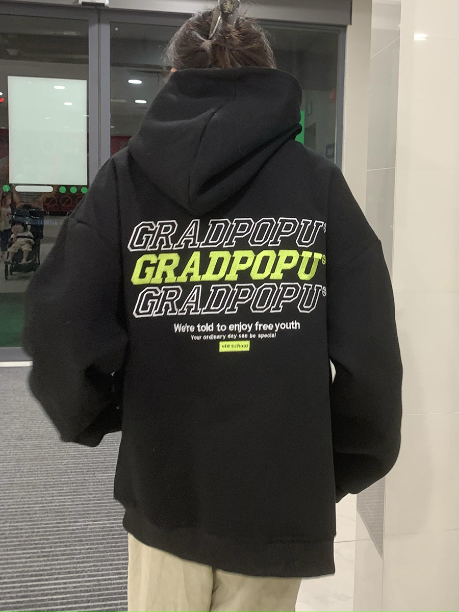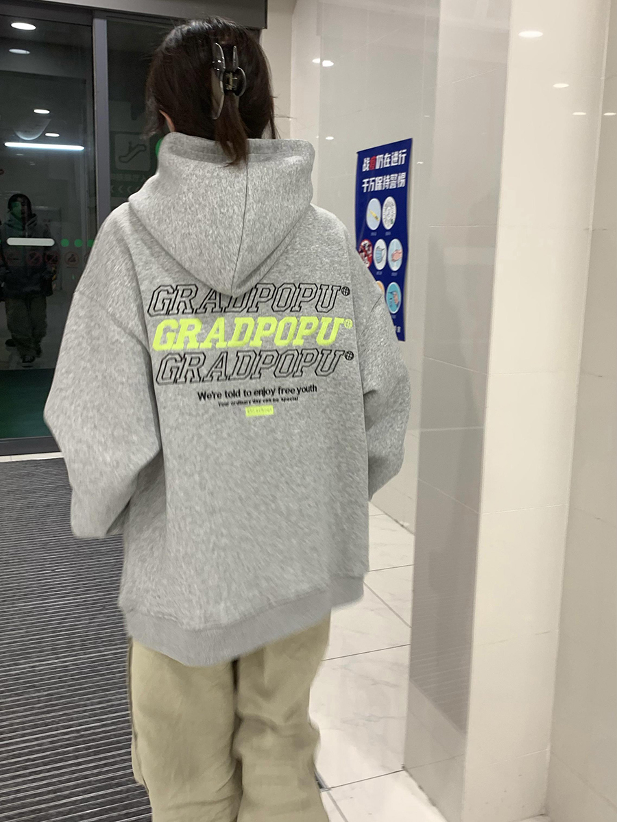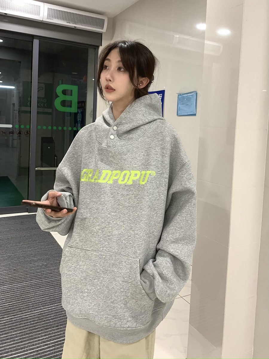 原創小眾設計薄款美式復古重磅oversize灰色厚棉T女春秋款連帽外套