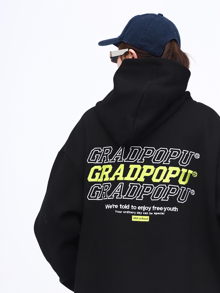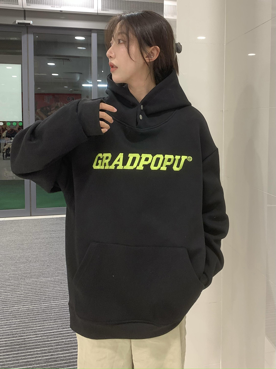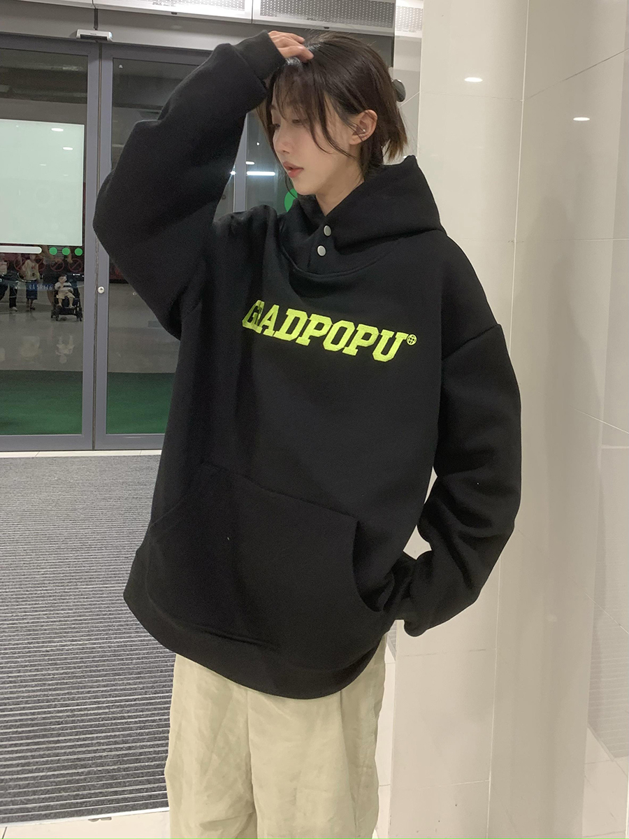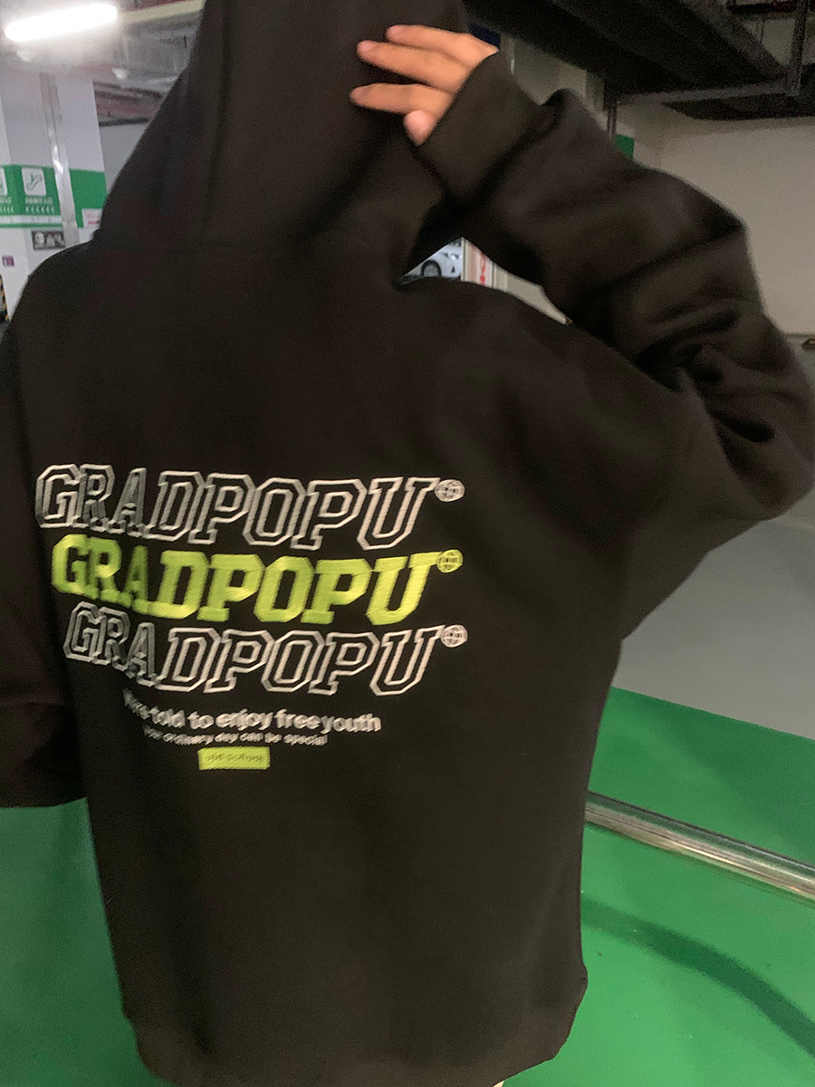原創小眾設計薄款美式復古重磅oversize灰色厚棉T女春秋款連帽外套
