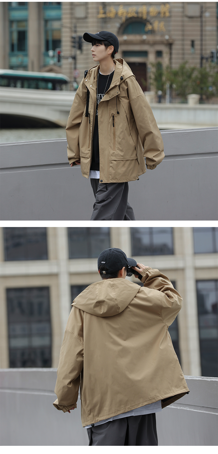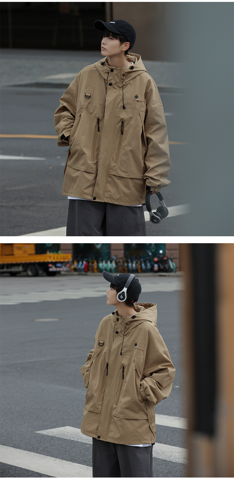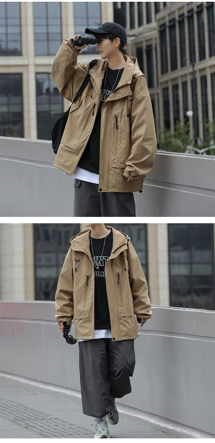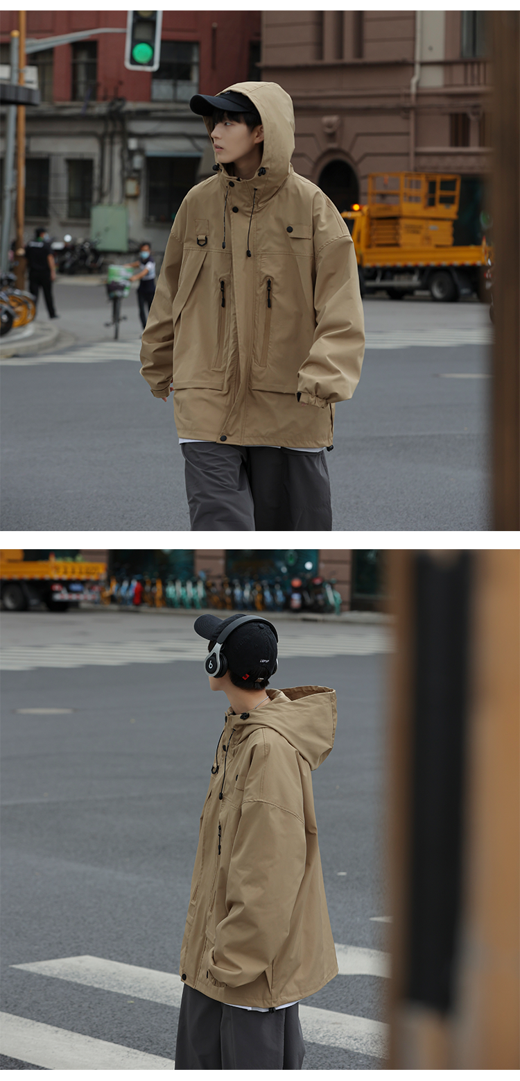 vintage衝鋒衣夾克美式復古oversize卡其色日系工裝外套ins潮牌男