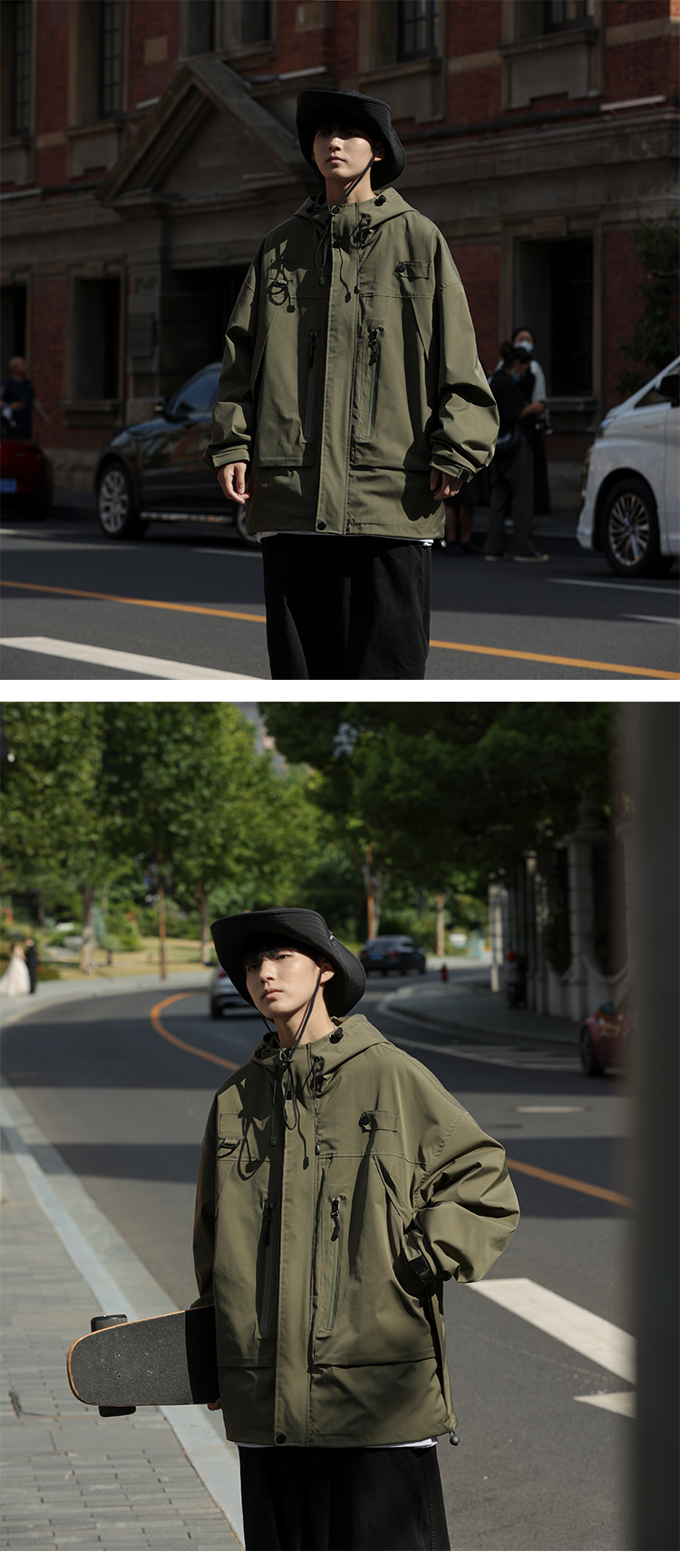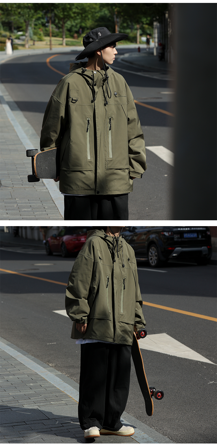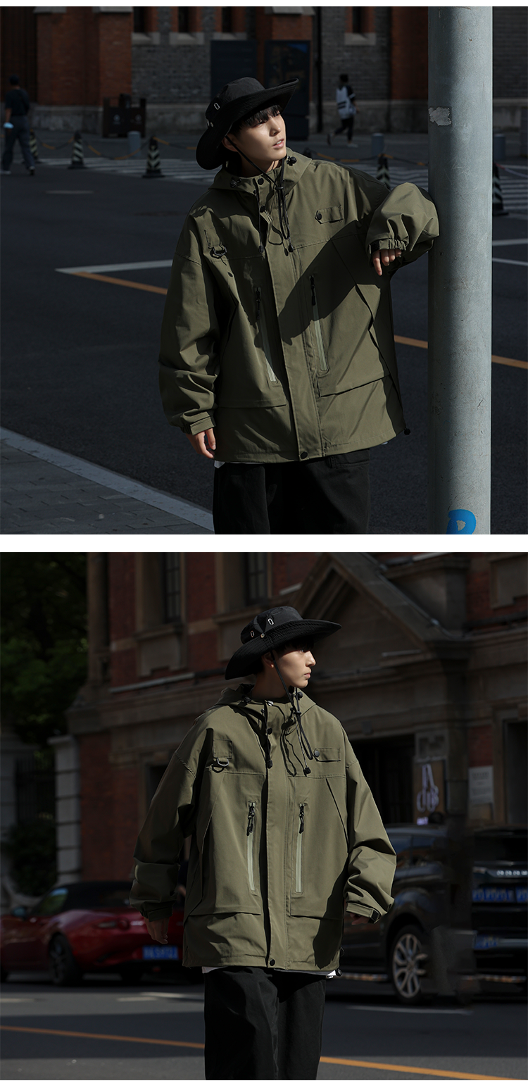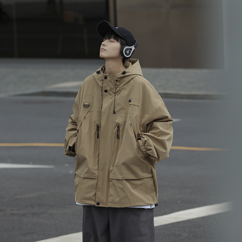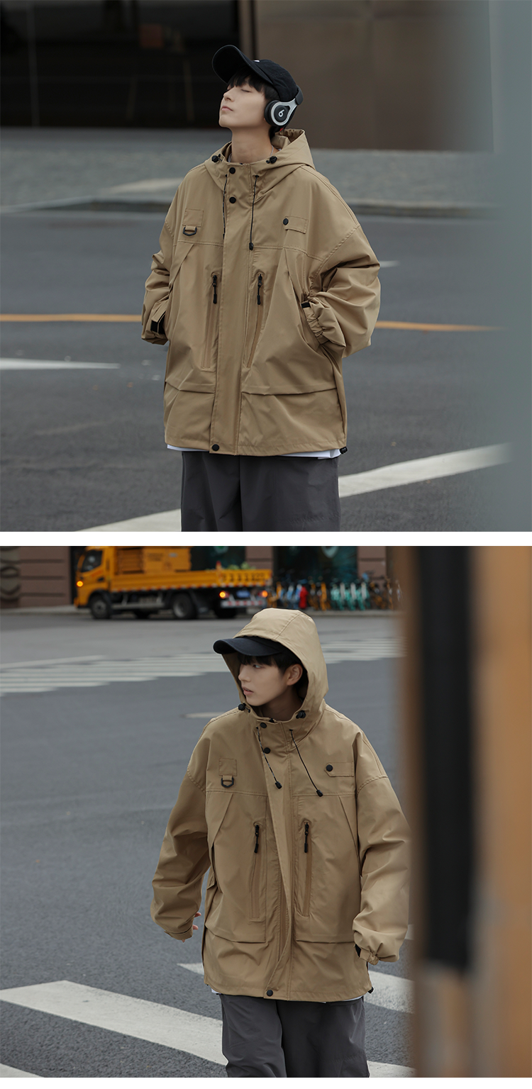 vintage衝鋒衣夾克美式復古oversize卡其色日系工裝外套ins潮牌男