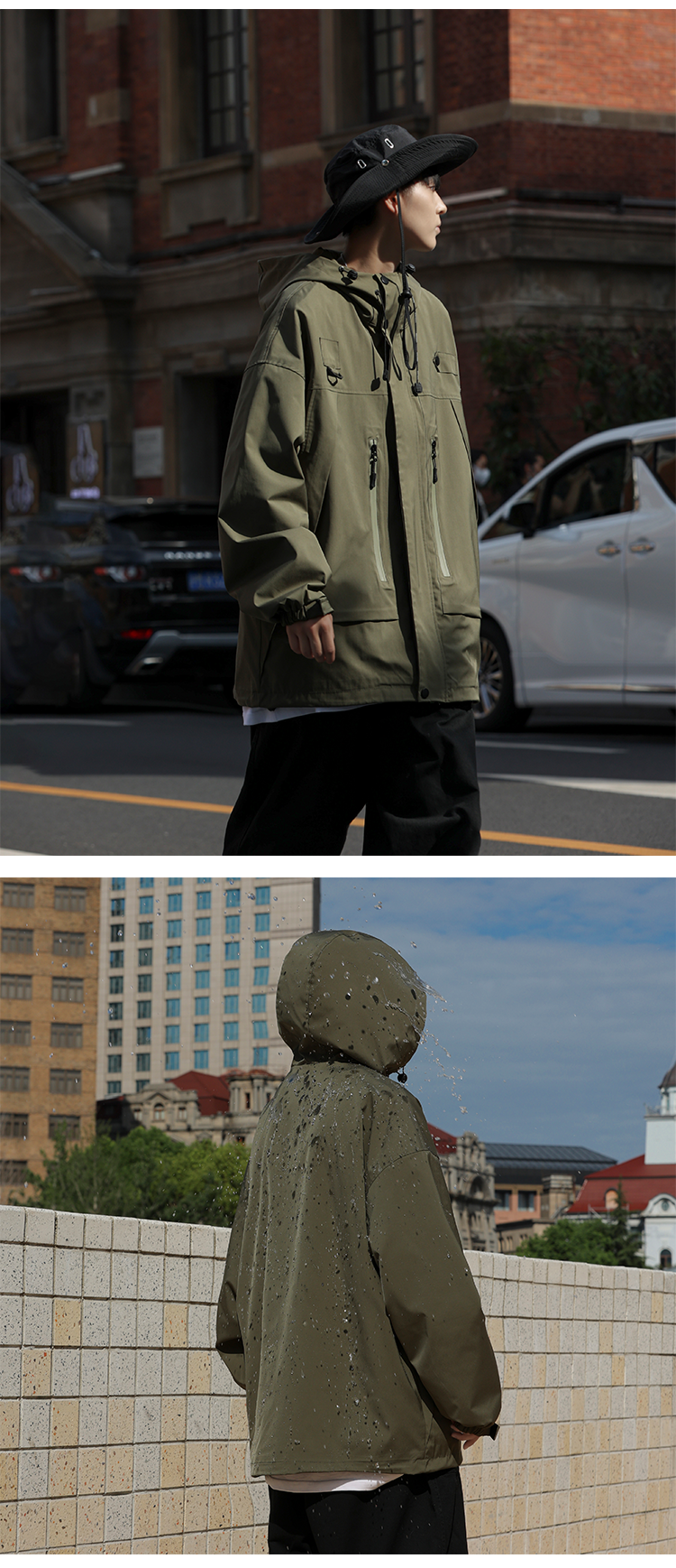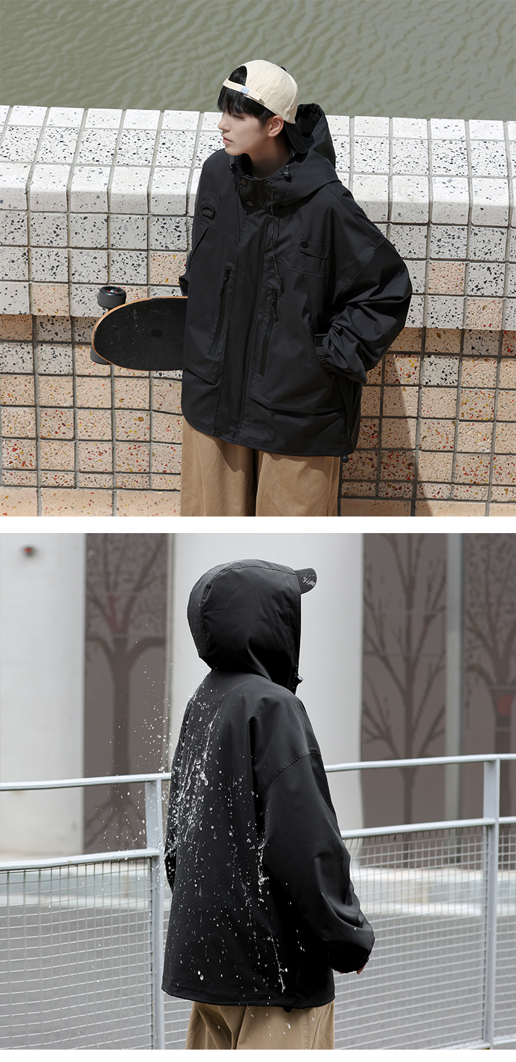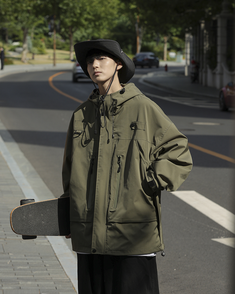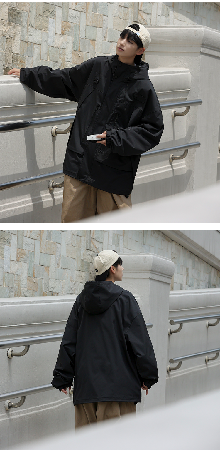 vintage衝鋒衣夾克美式復古oversize卡其色日系工裝外套ins潮牌男