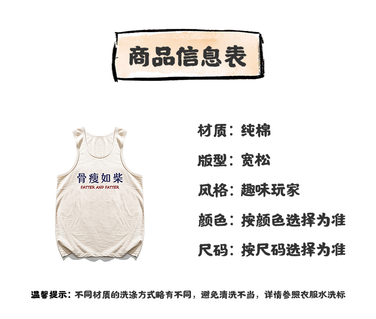 國潮復古7080年代懷舊情懷骨瘦如柴創意搞笑純棉運動健身背心男